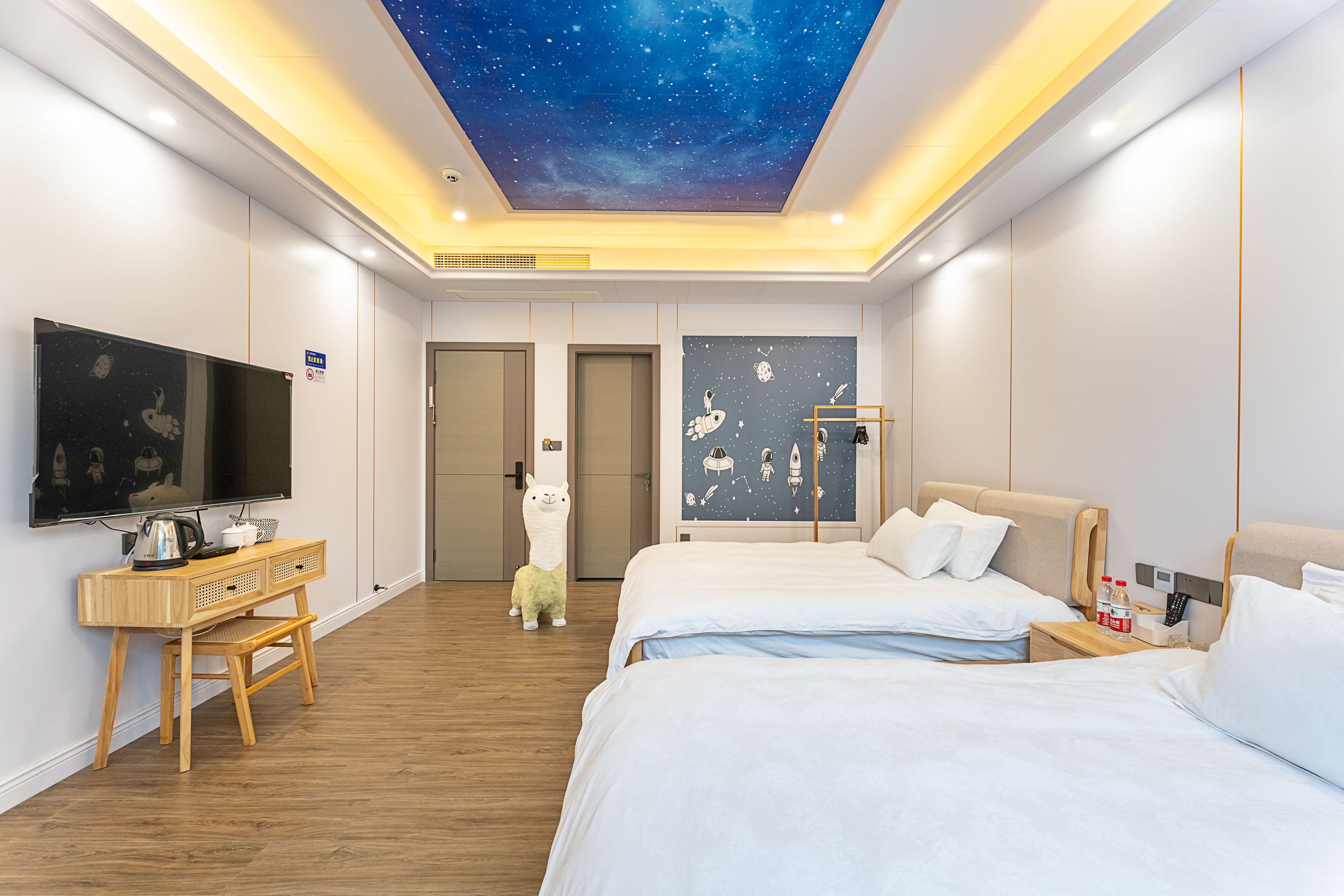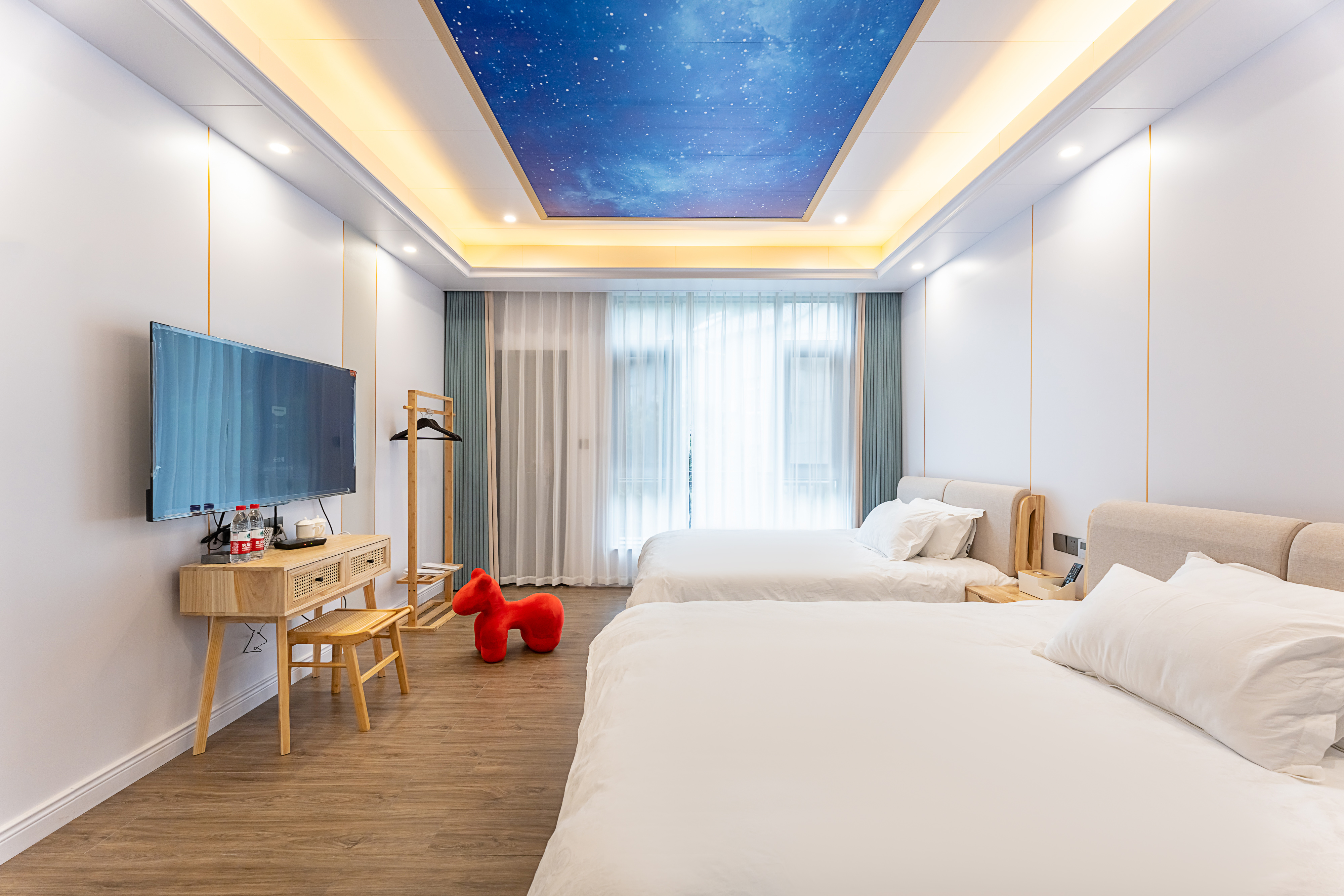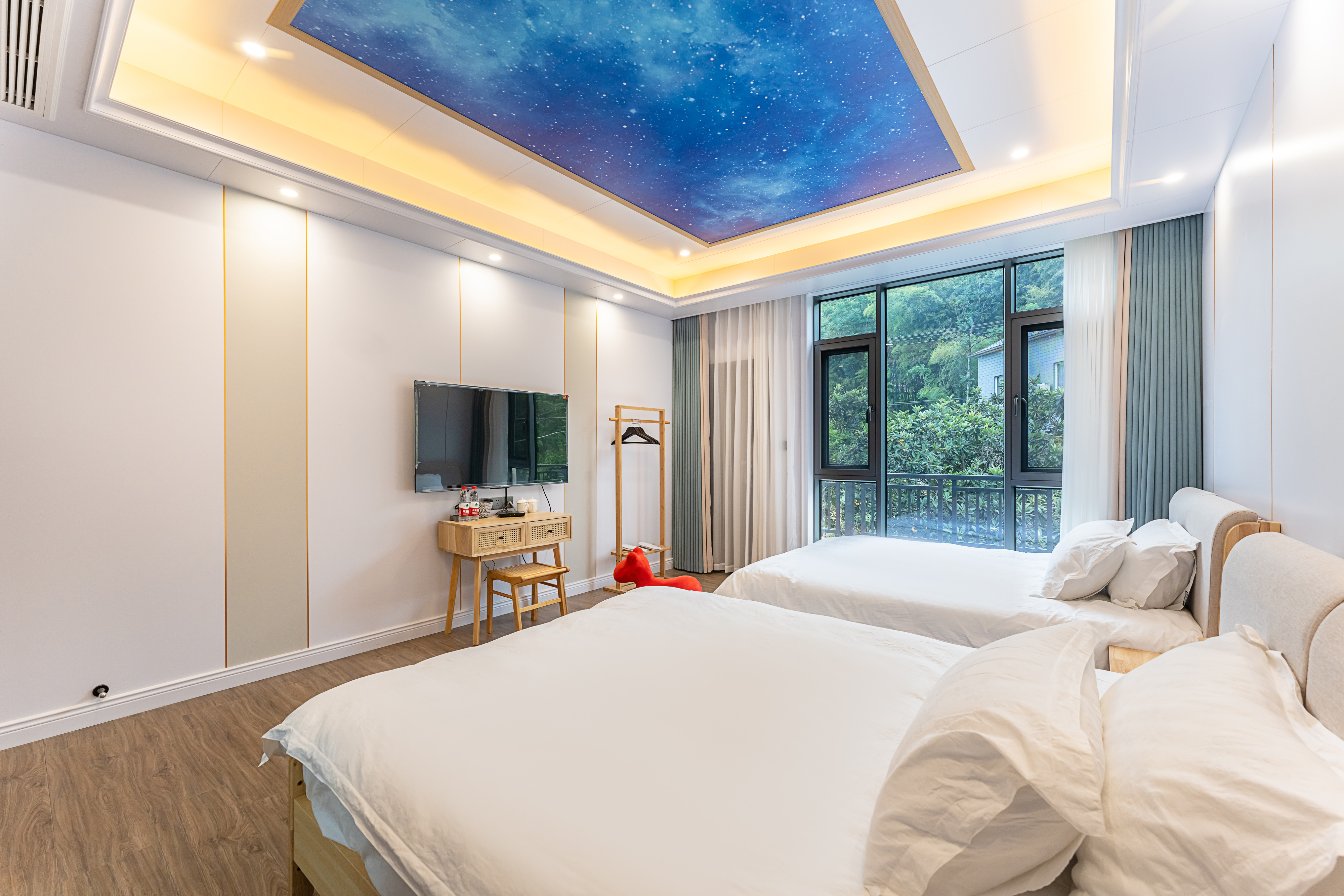 豪华大露台落地窗星空双床房