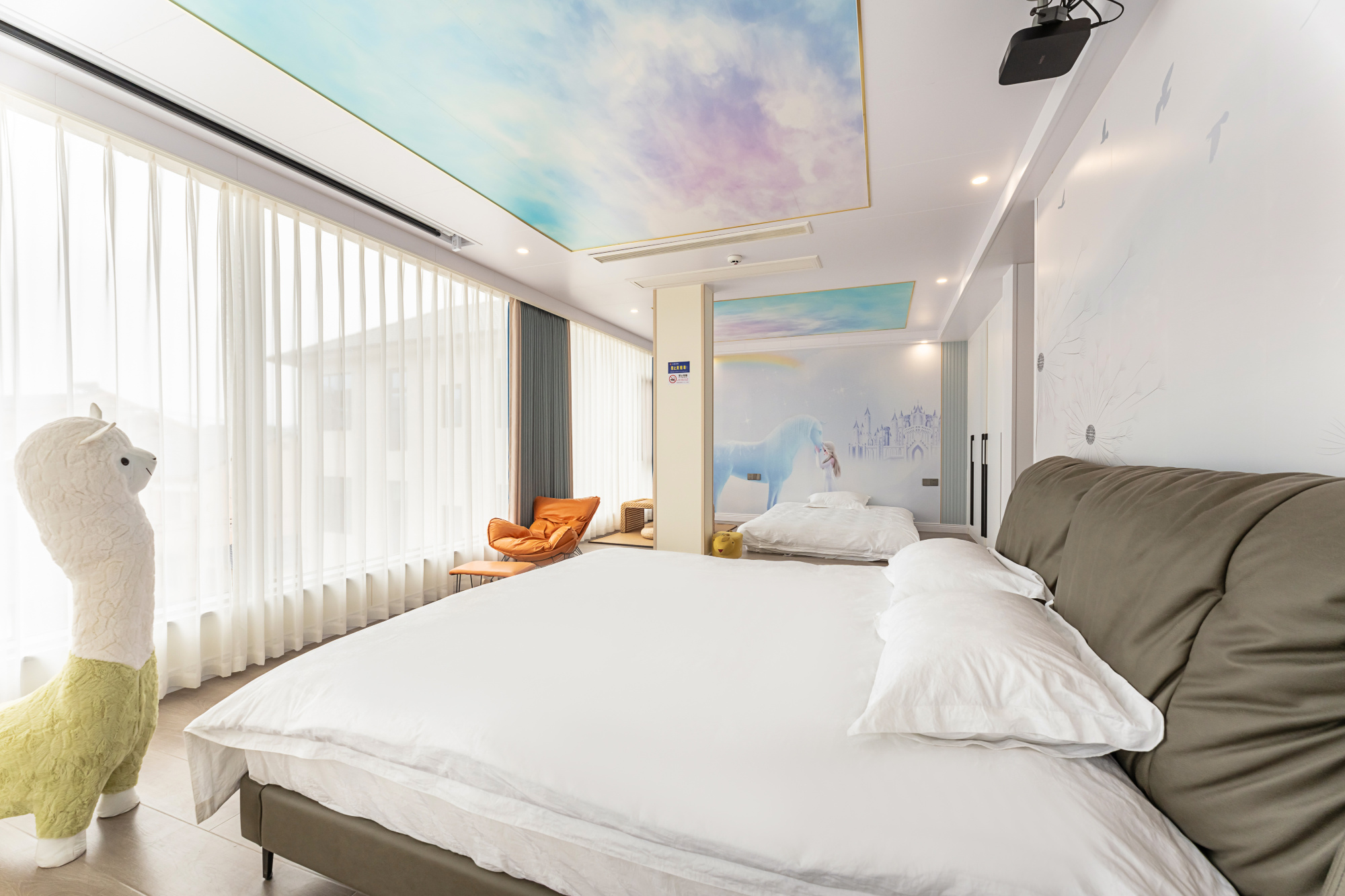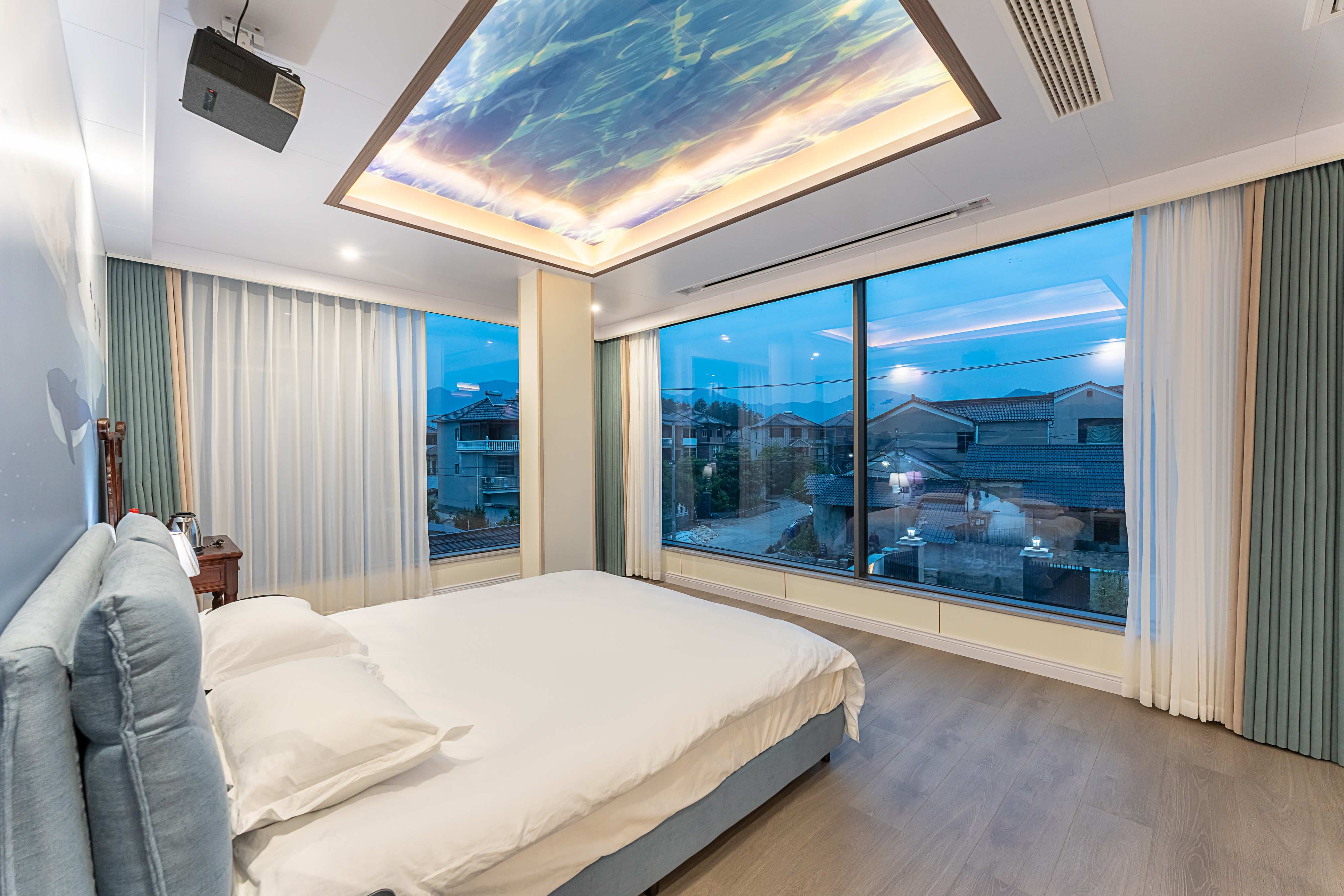 蓝色海洋?亲子房(全落地窗+巨幕投影+庭院景观)