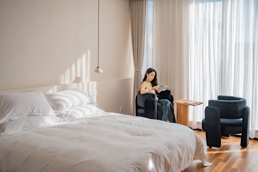 【素野201】夜的序曲纯白亲子房|180°望山静心|全屋地暖|网红沙发|畅享影音|