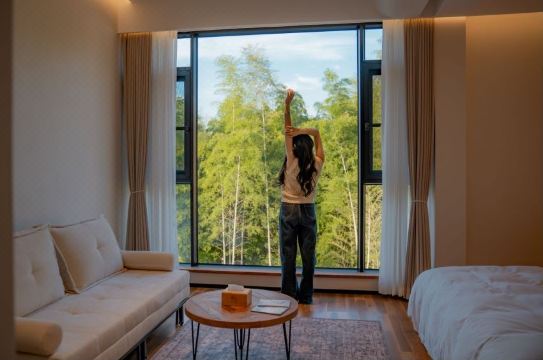 【素野203】竹影婆娑中古大床房|180°星空山景|全屋地暖|中古躺椅|舒适好眠