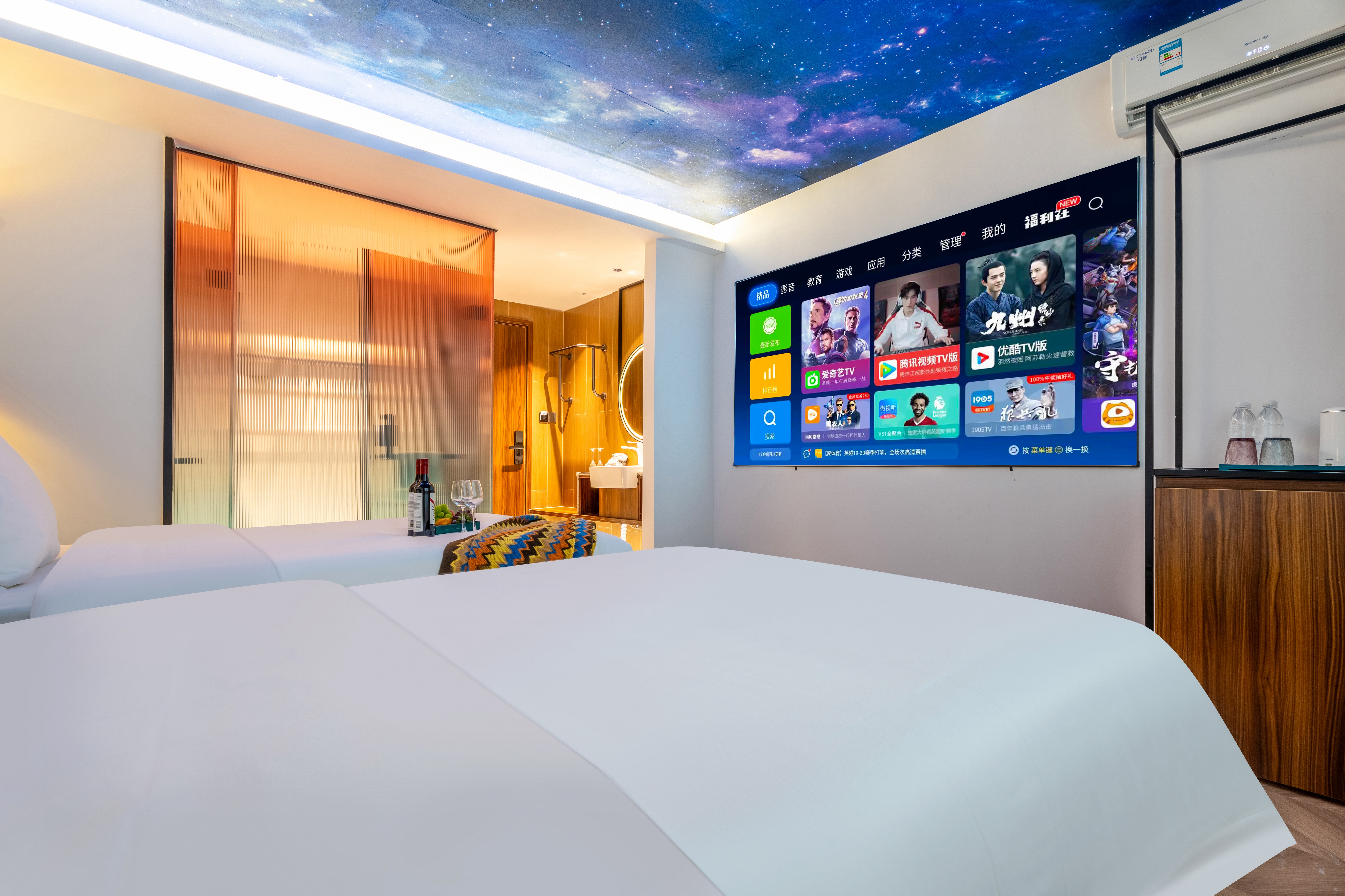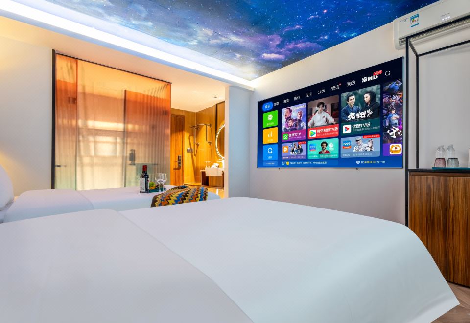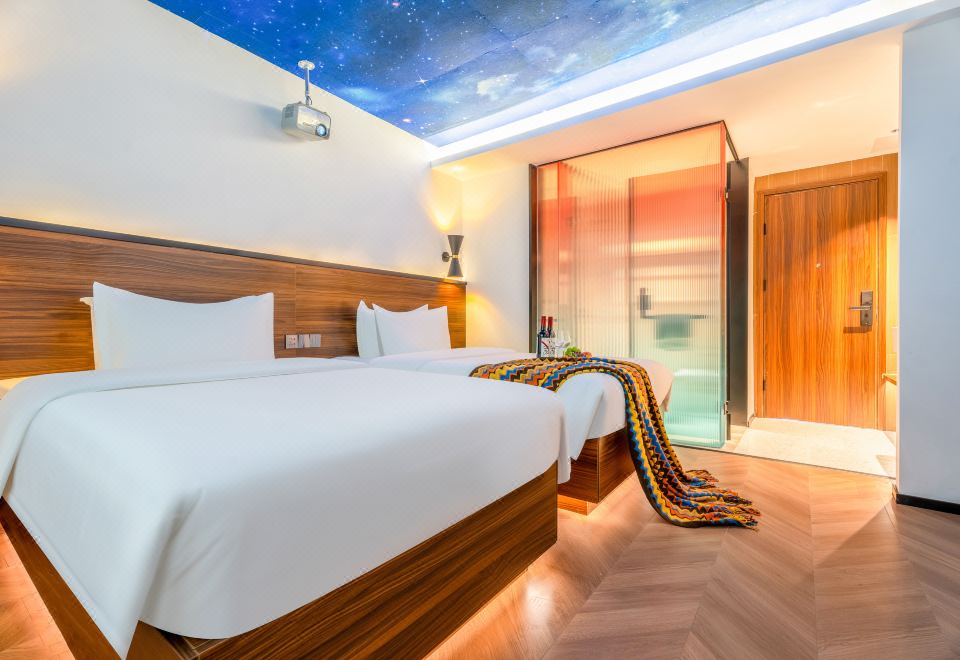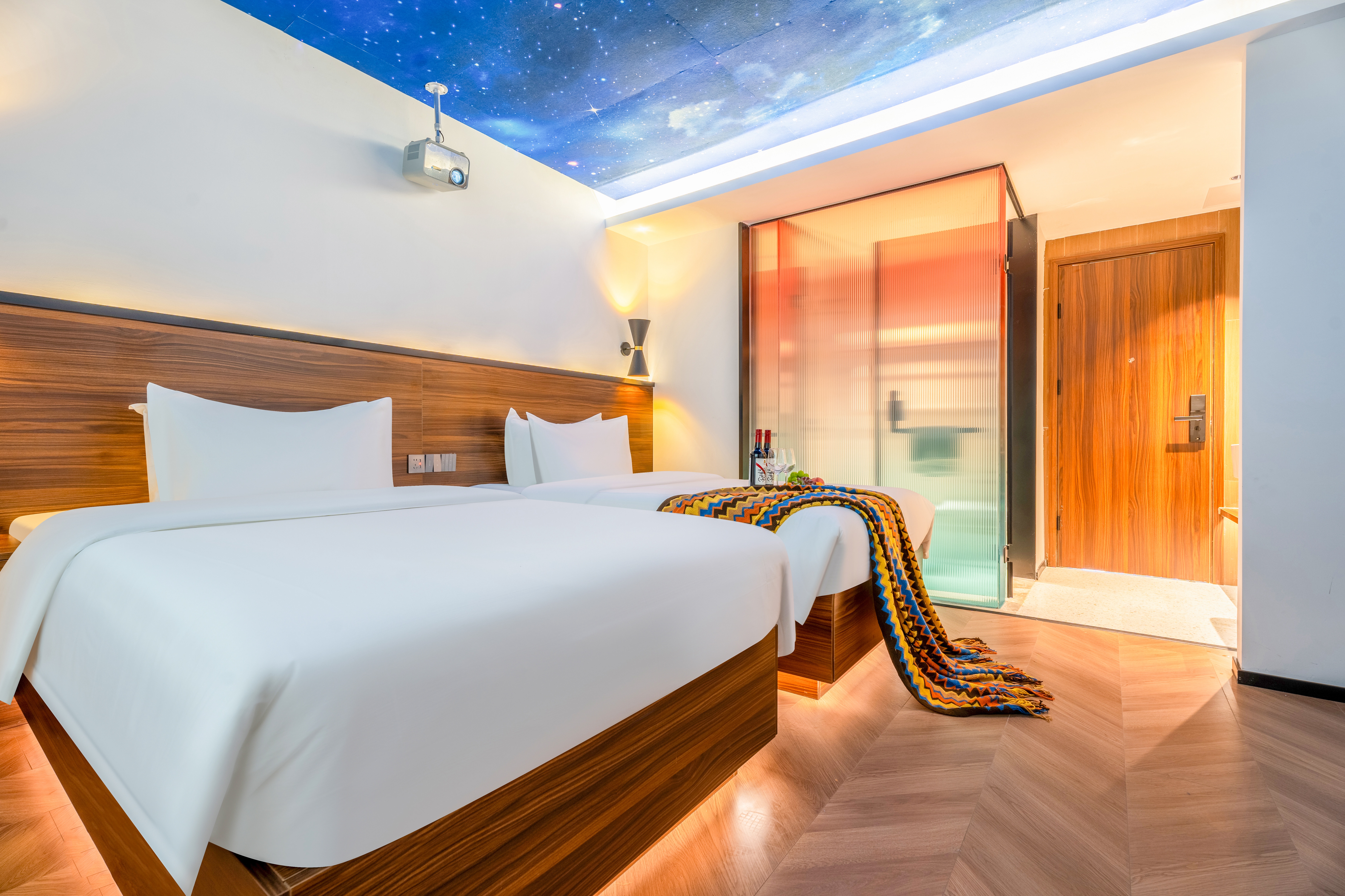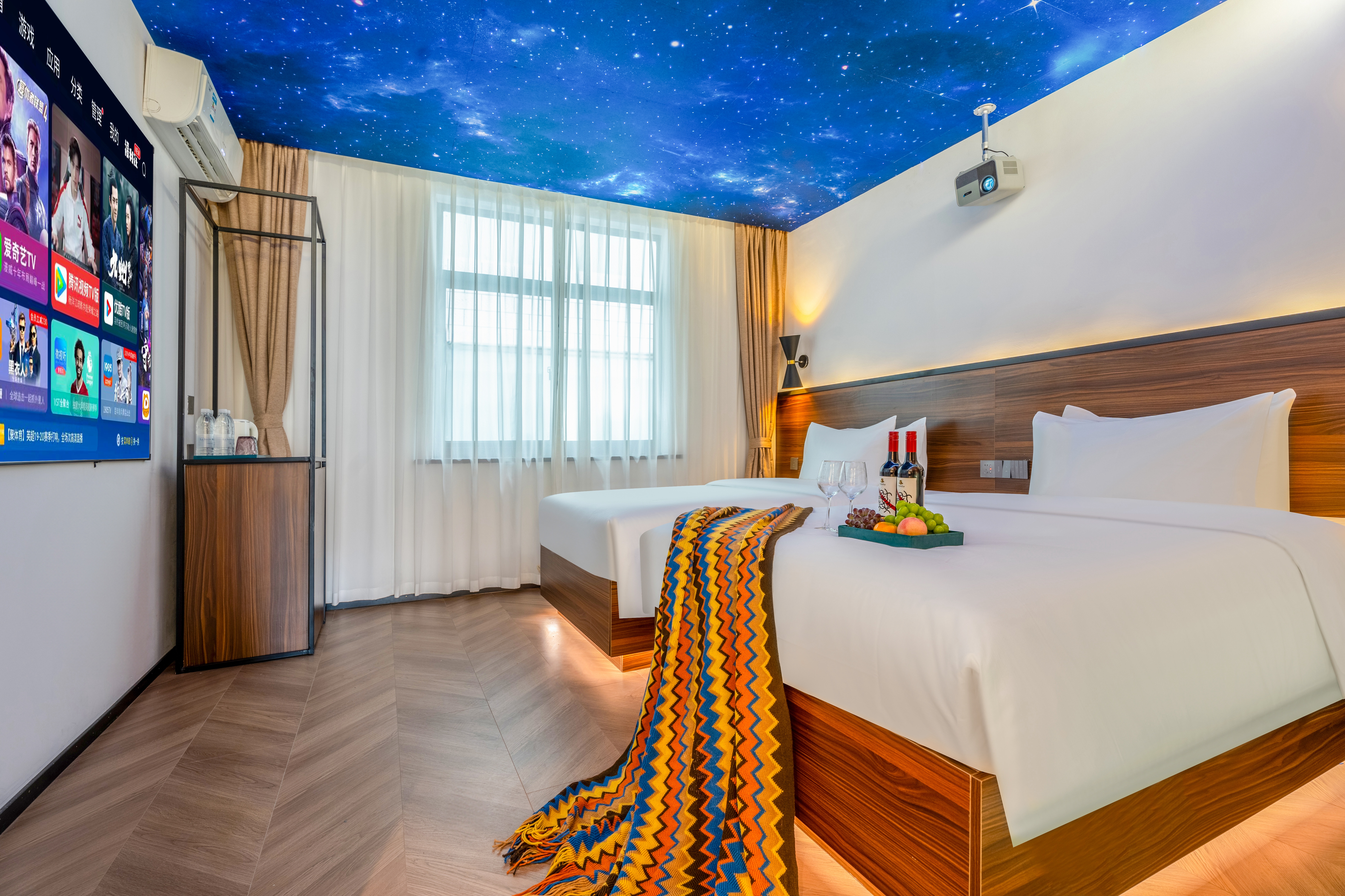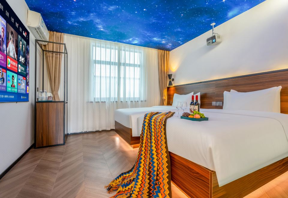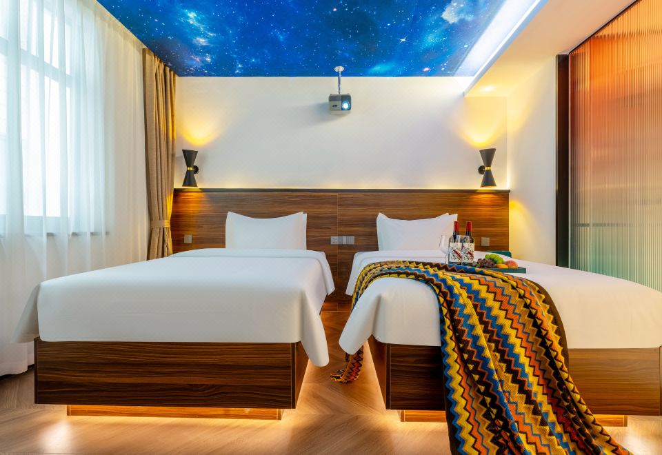 星空影音双床房(100寸幕布投影+乳胶床垫+智能马桶)