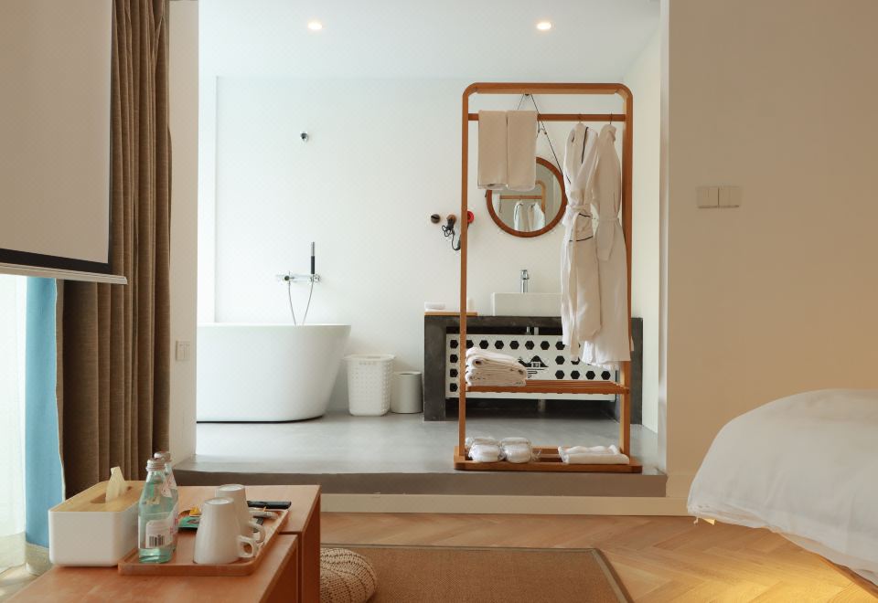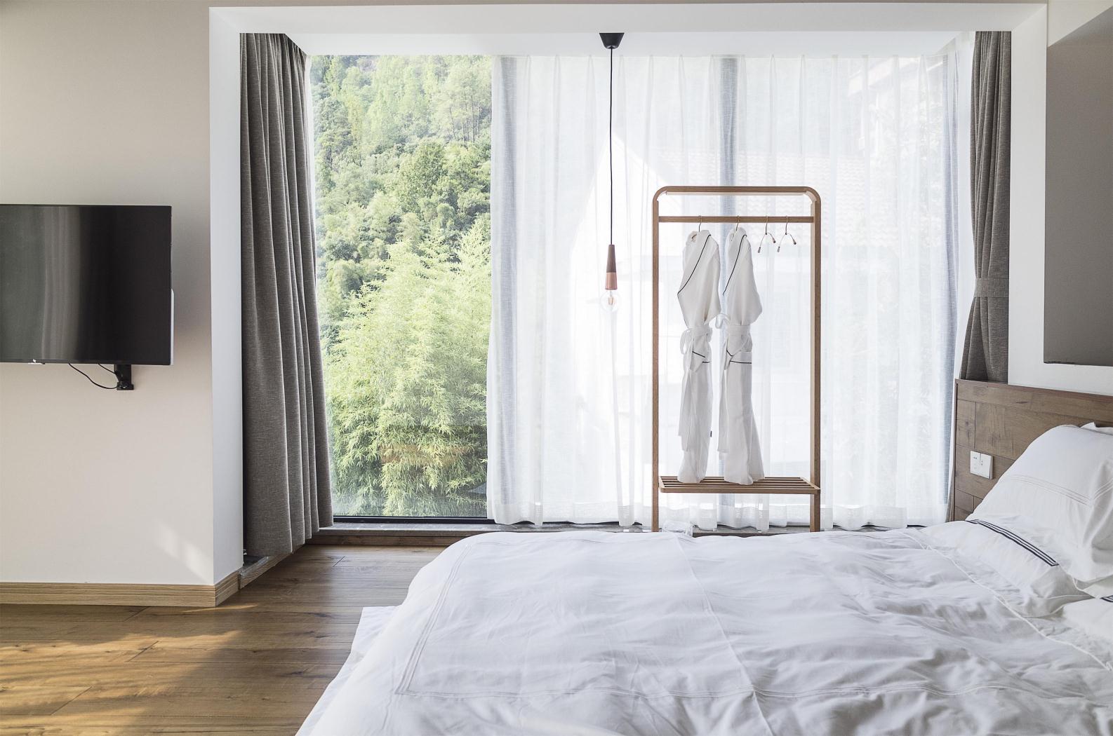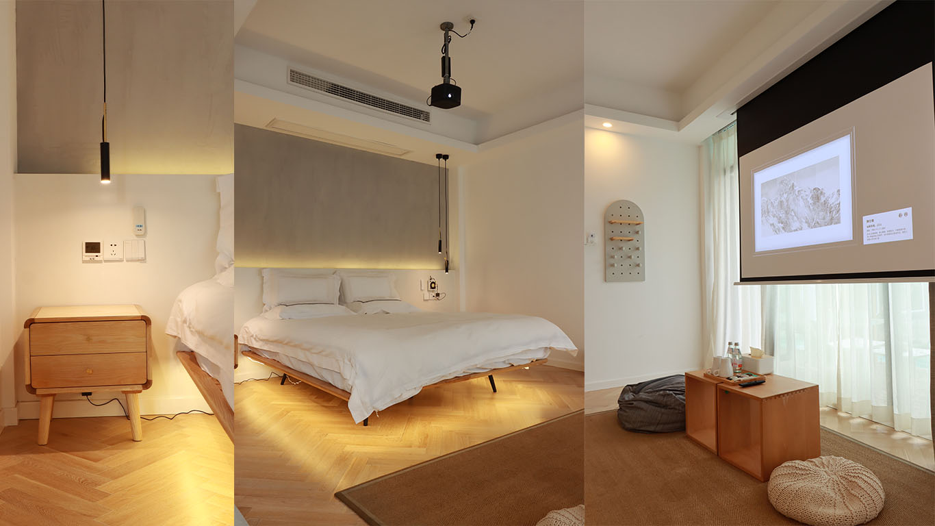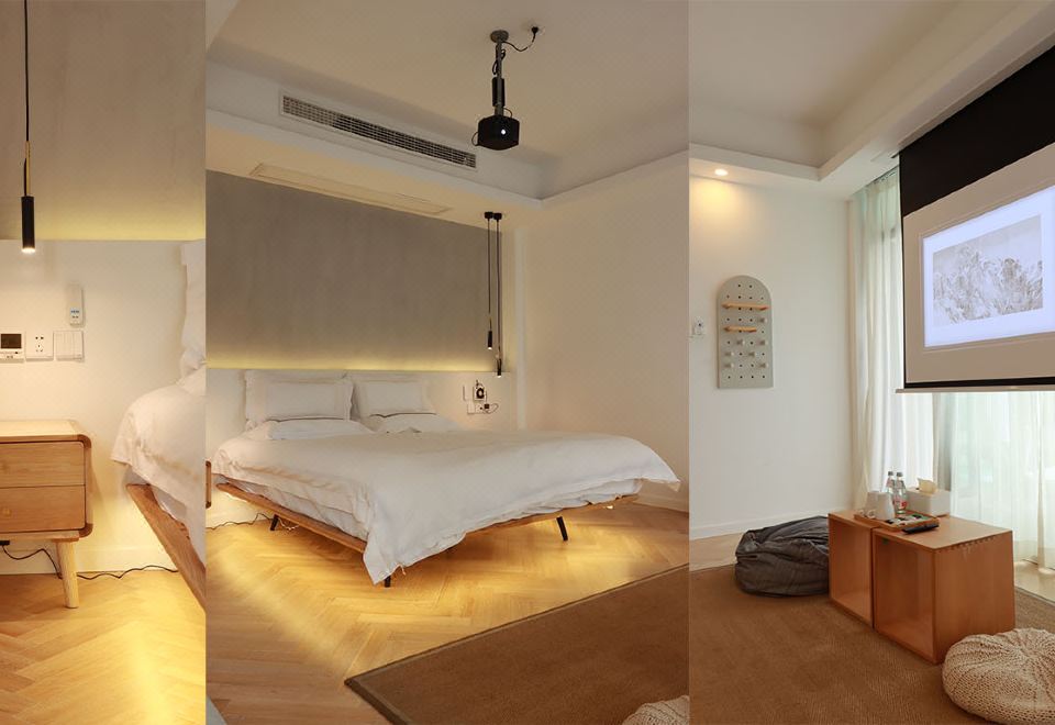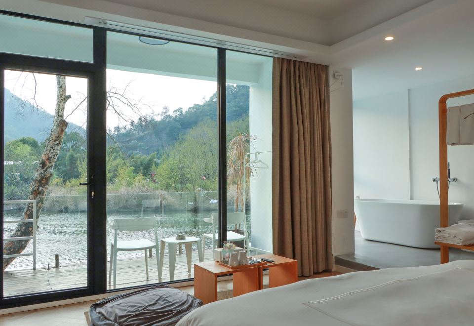 邻栖·地暖大床房〖一窗山水+阳台+极米巨幕投影+浴缸〗