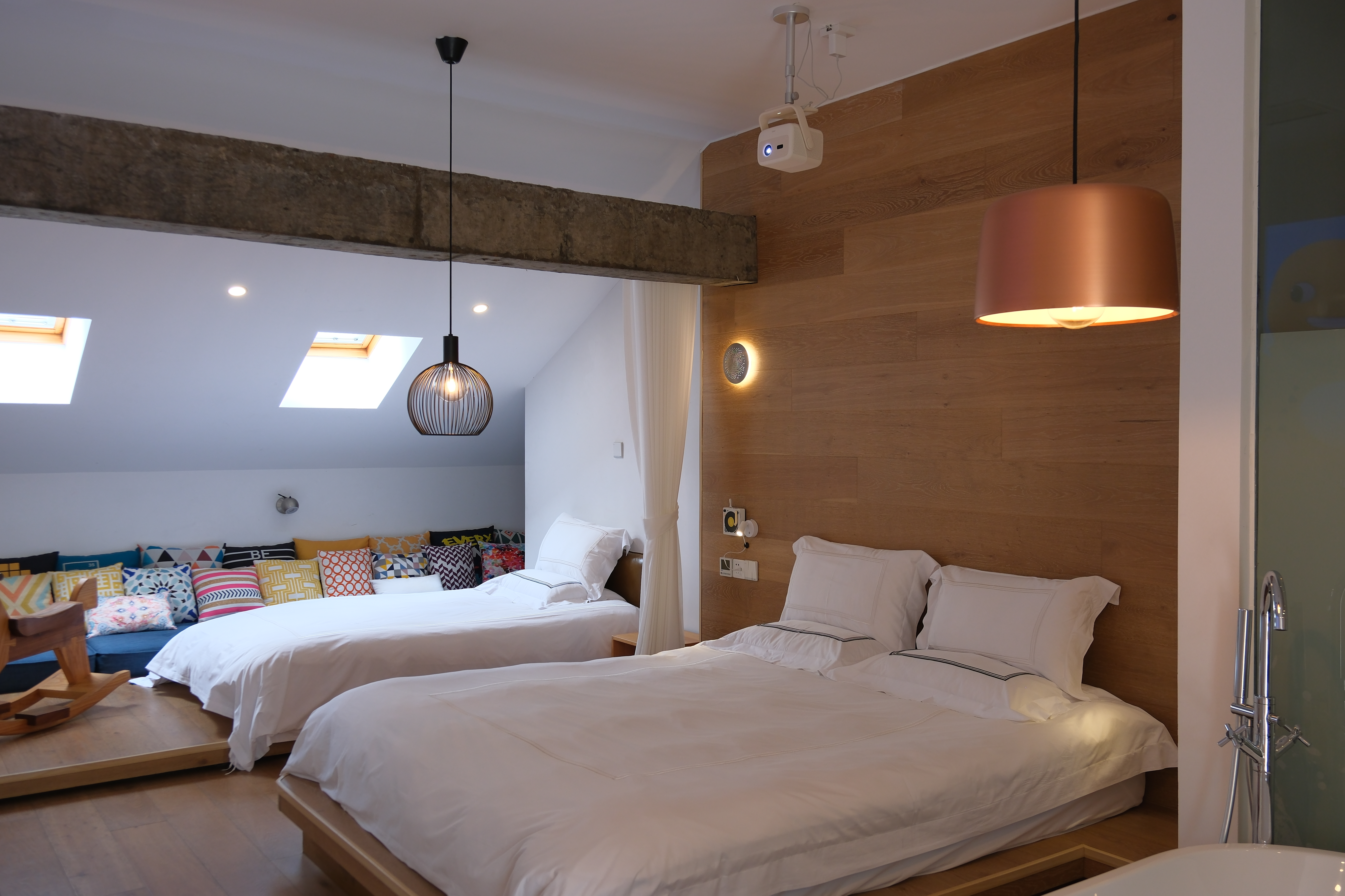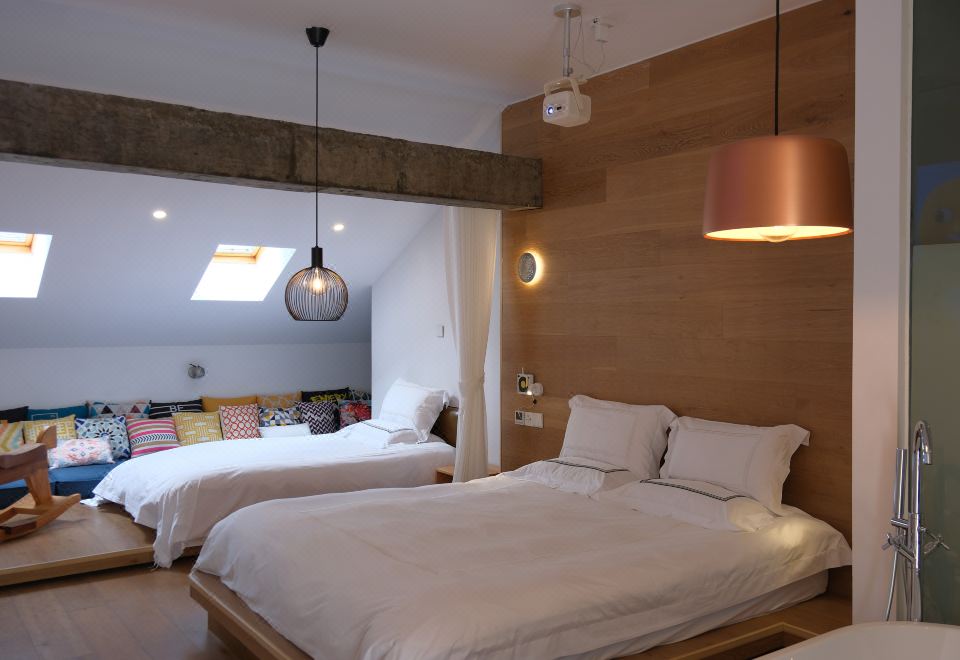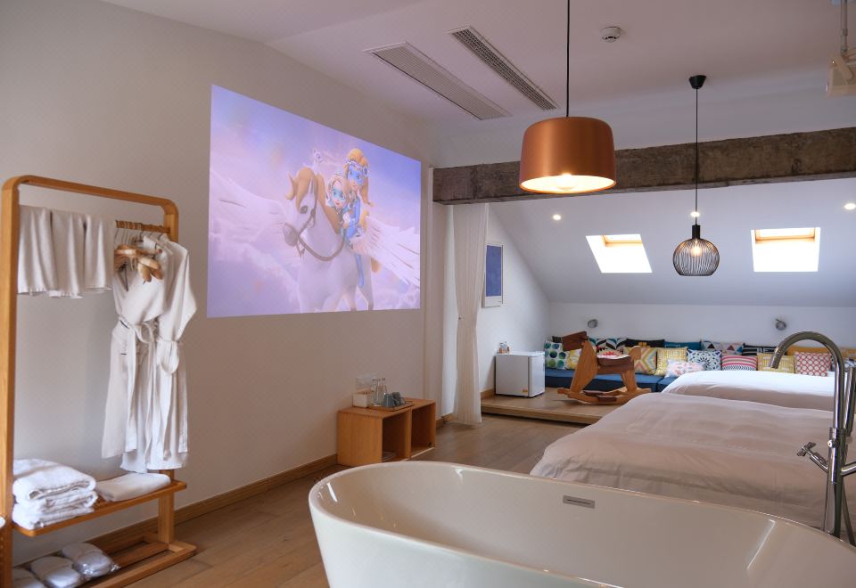 隐芦·地暖亲子三人房〖露台+天窗+坚果巨幕投影+浴缸〗