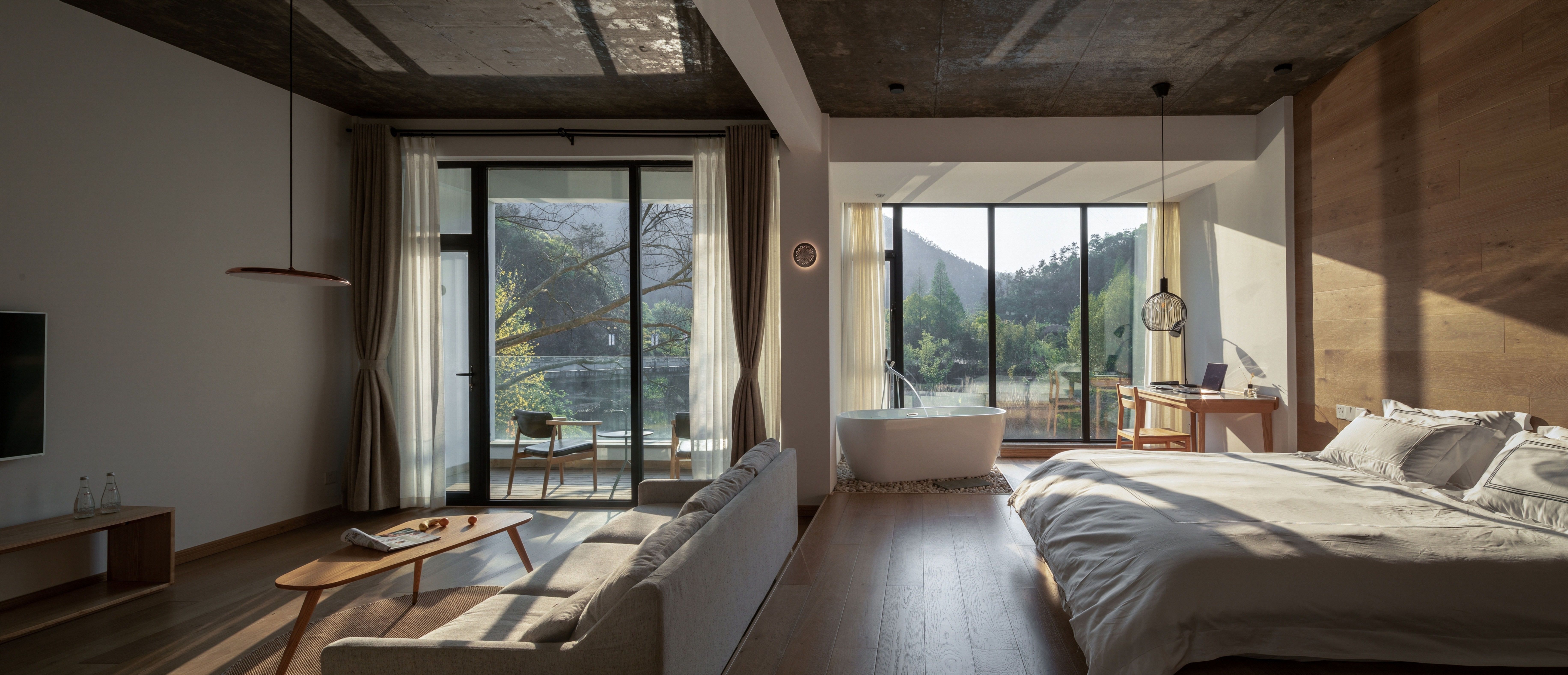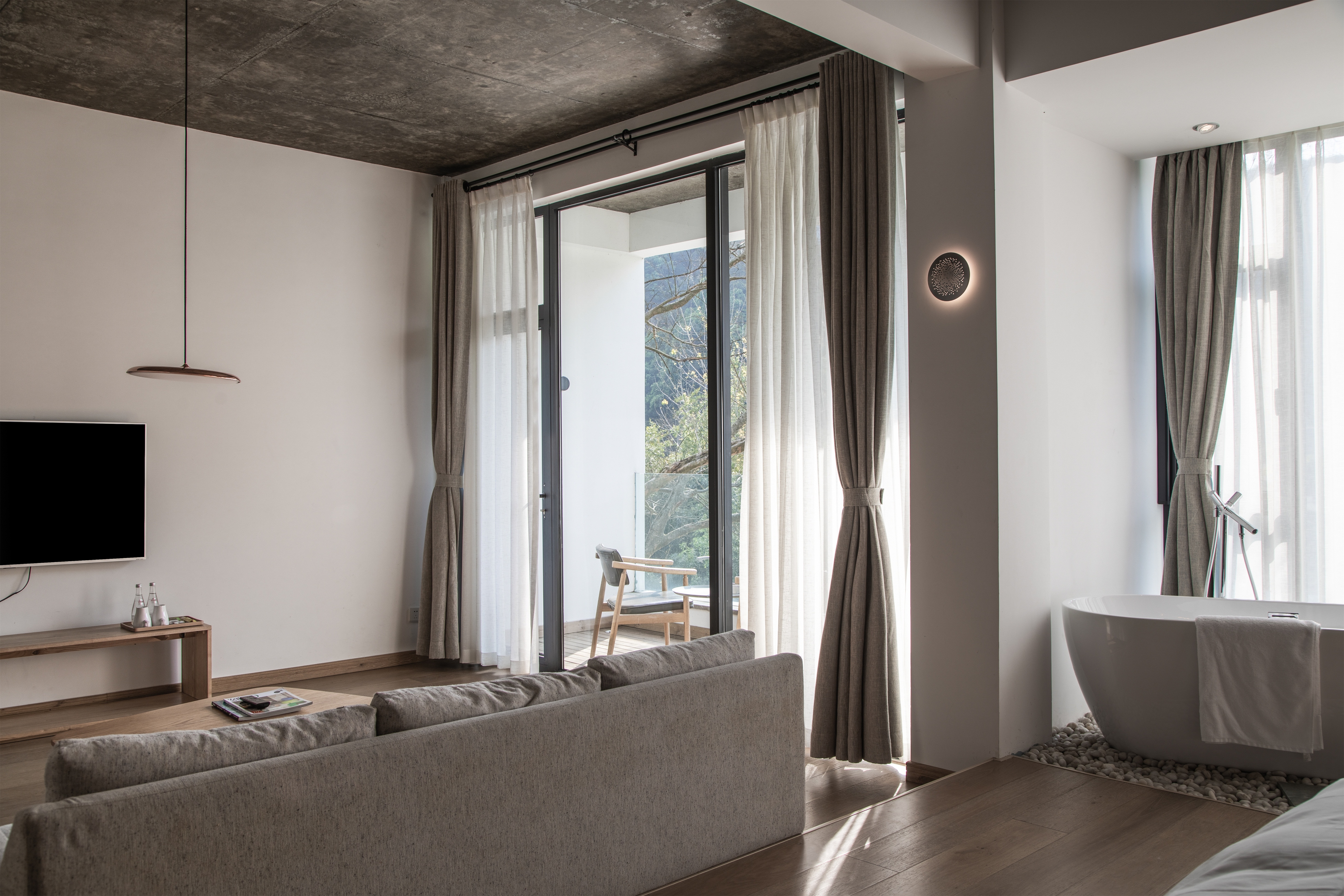 行舍·地暖三人房〖一窗山水+阳台+极米巨幕投影+浴缸〗