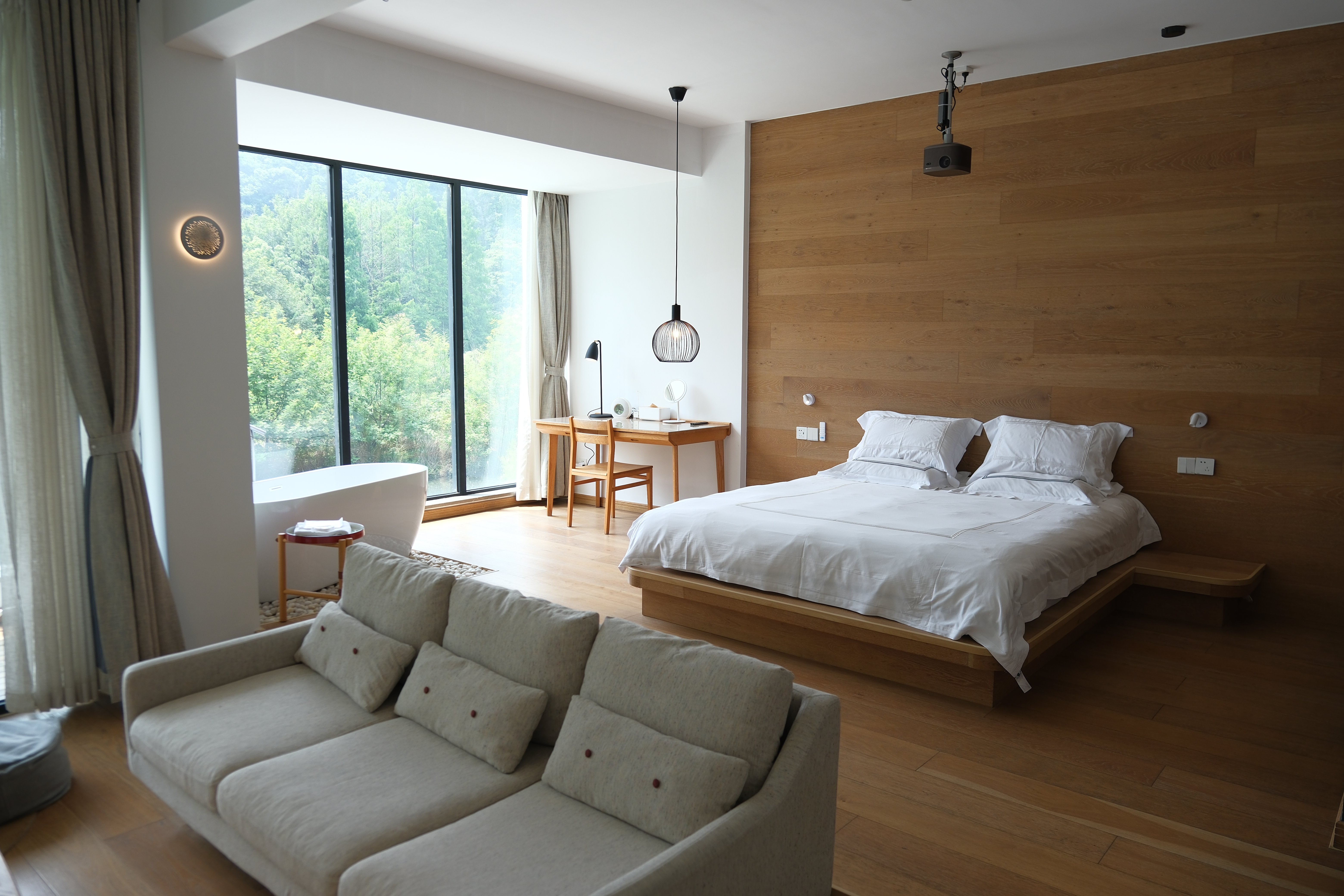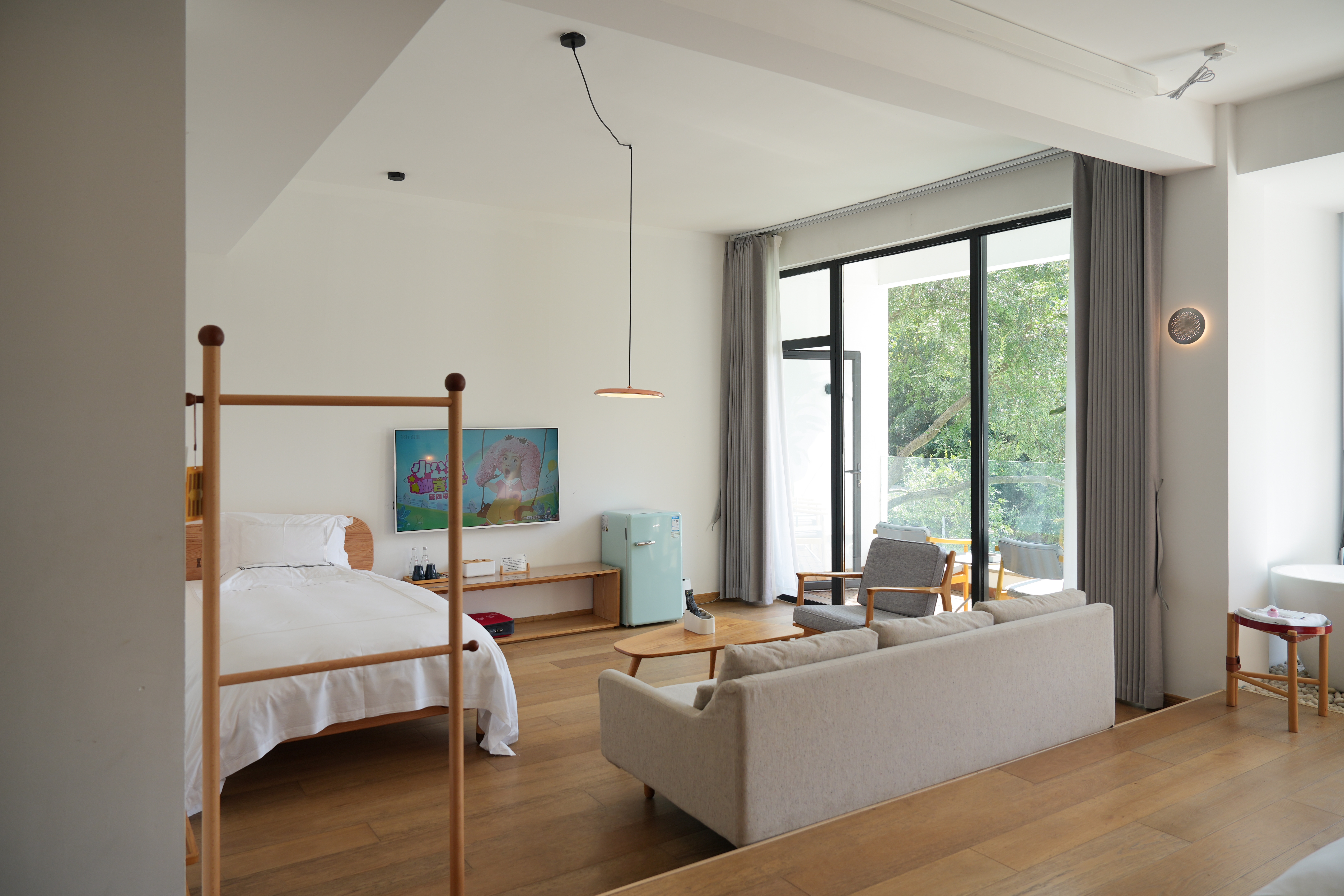行舍·地暖三人房〖一窗山水+阳台+极米巨幕投影+浴缸〗