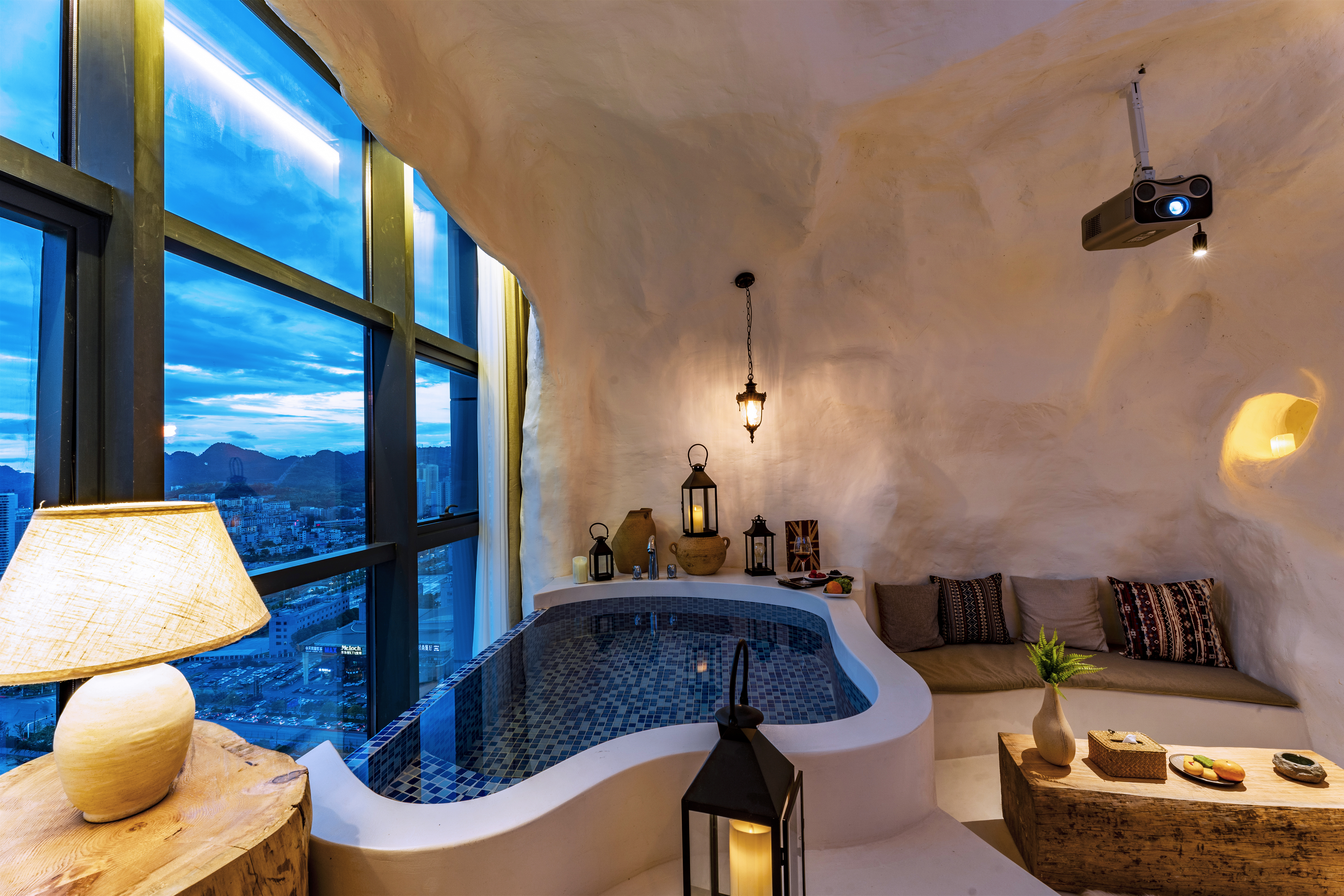洞穴|无边汤池景观大床房【巨幕投影+极光TV+泡池】