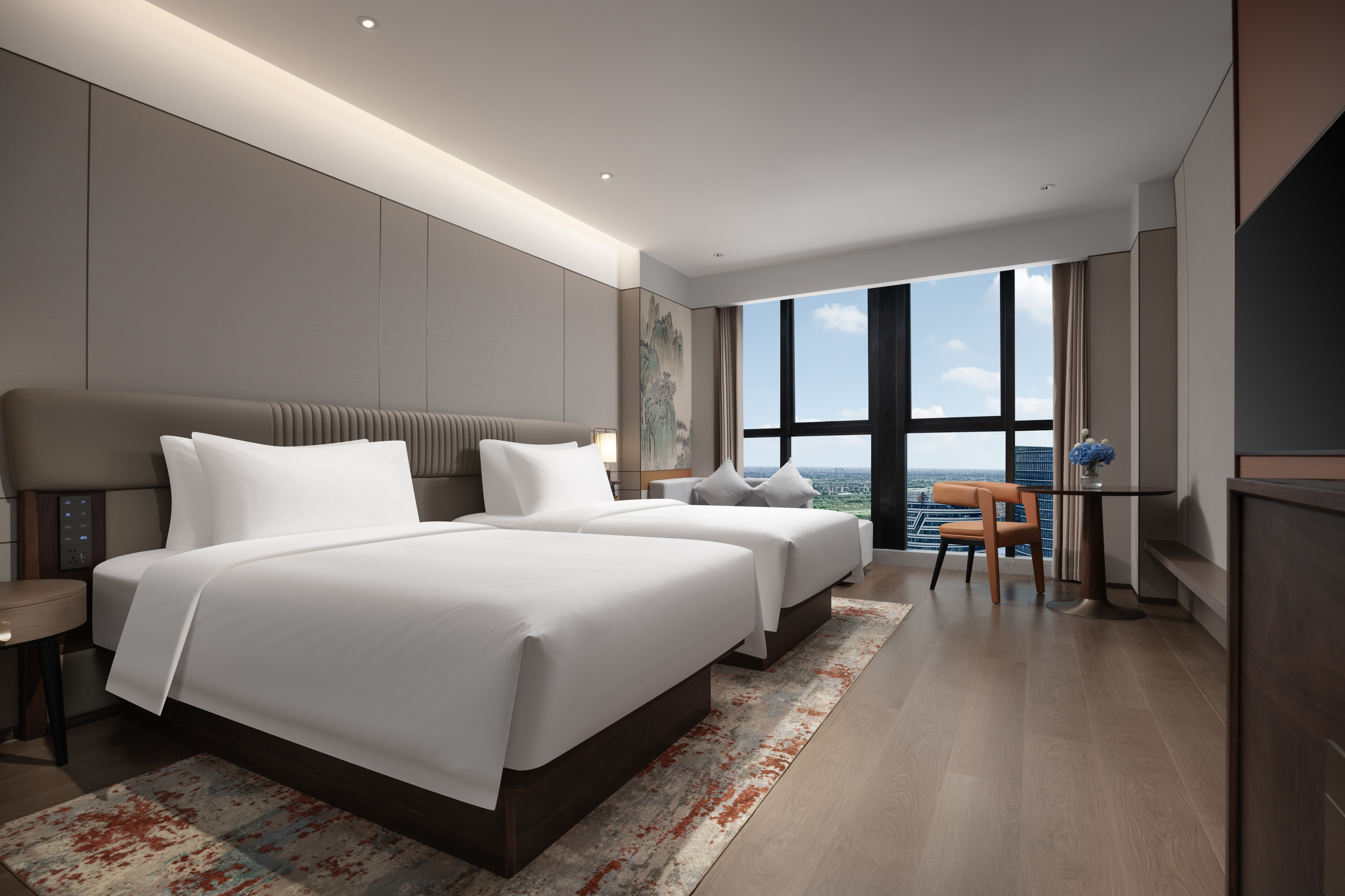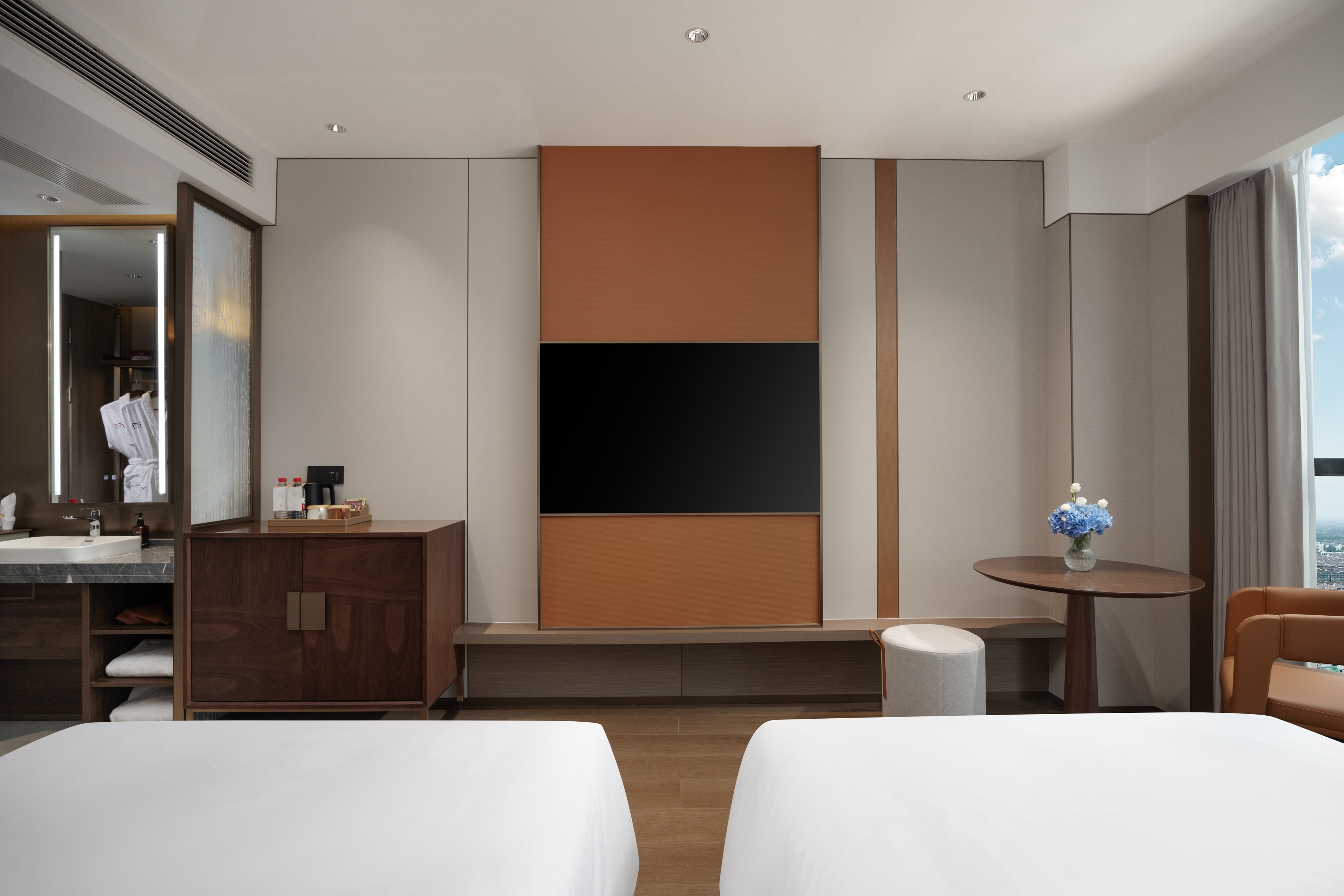 Mingcheng Superior Twin Room (Mini Fridge, Smart Toilet, Upper Floor Floor-to-Ceiling Window)