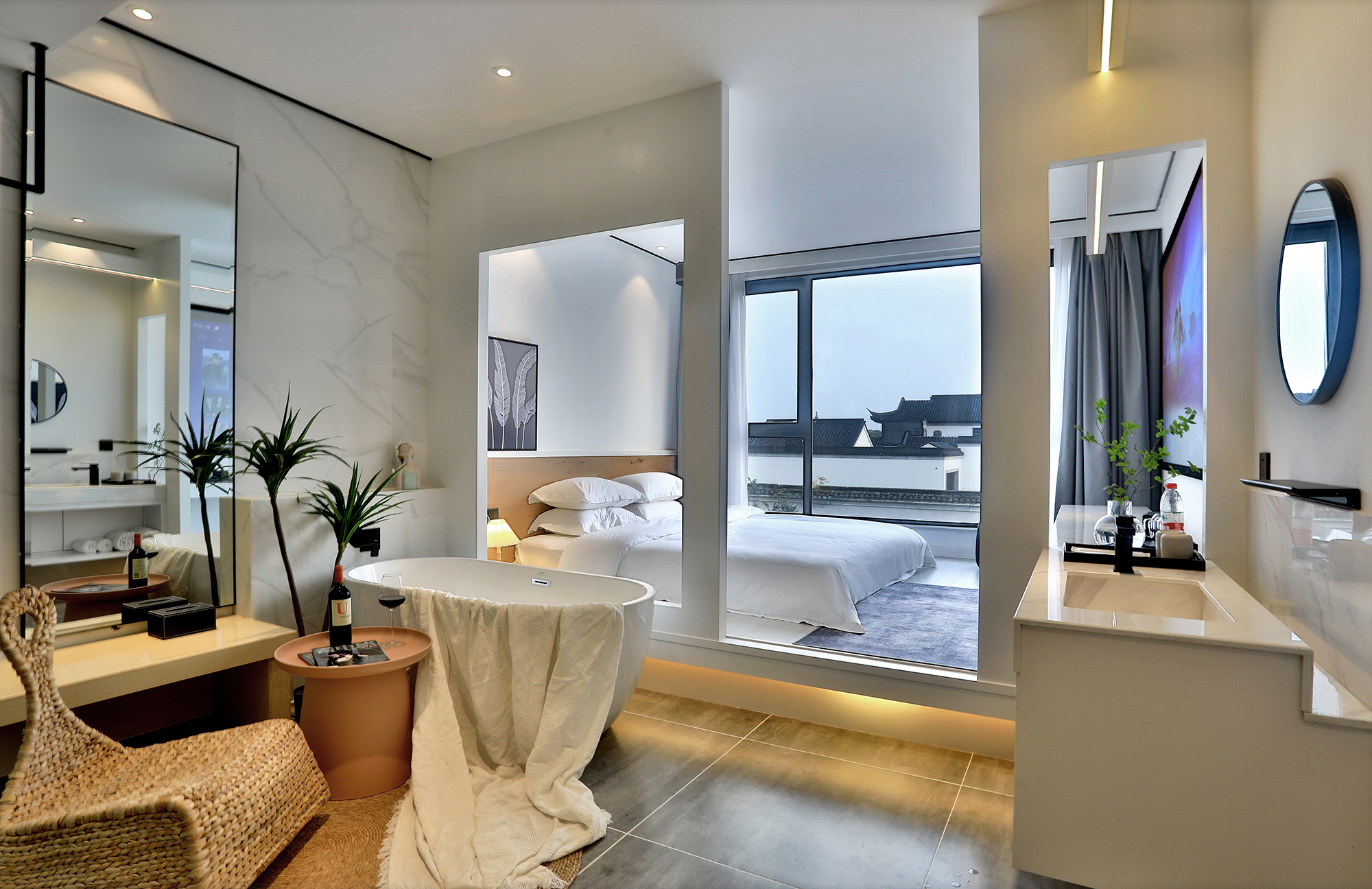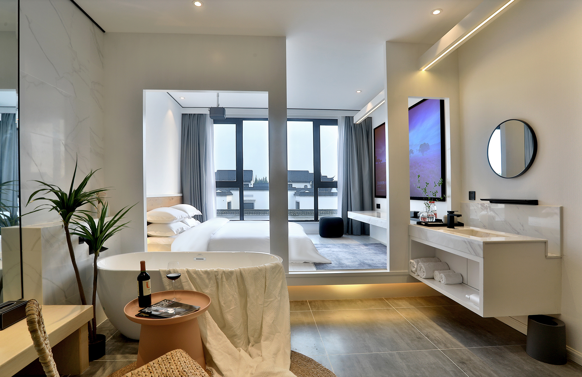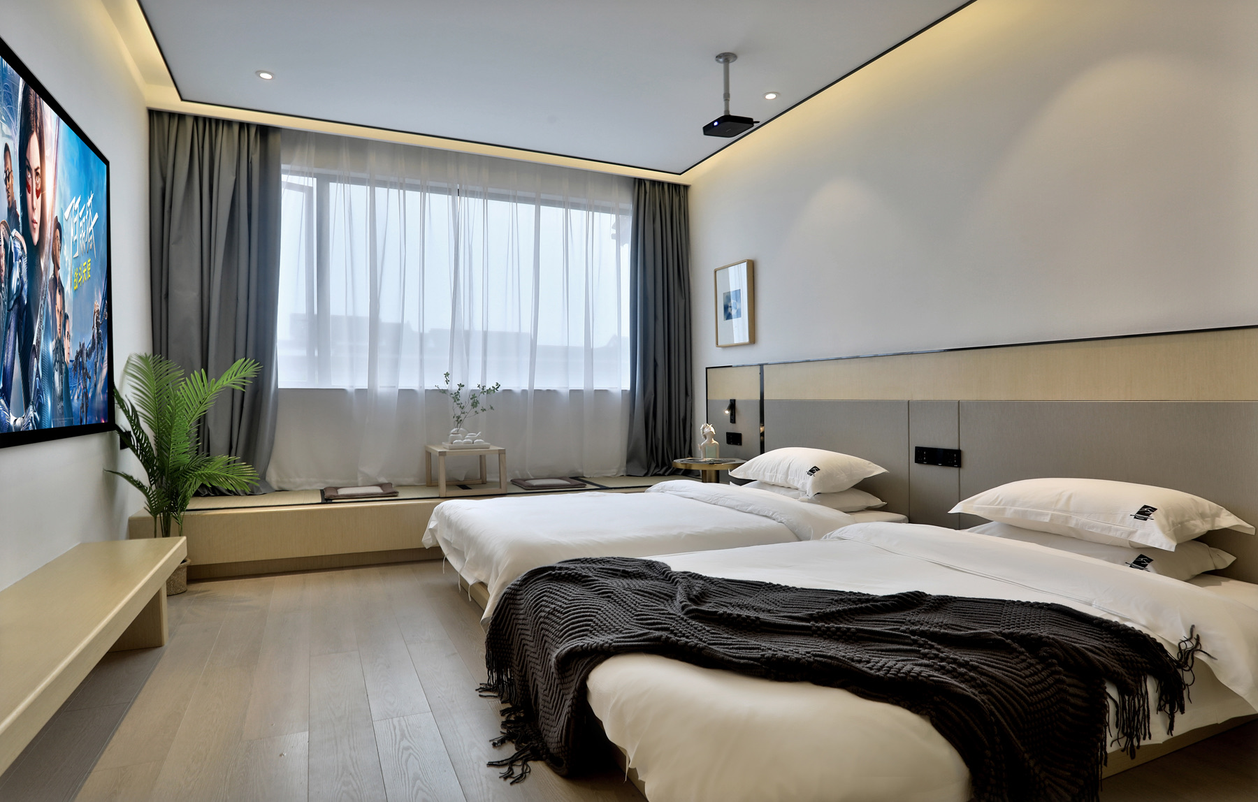 Ziyue Building B100-Inch Audio-Visual Landscape View Double Bed Room
