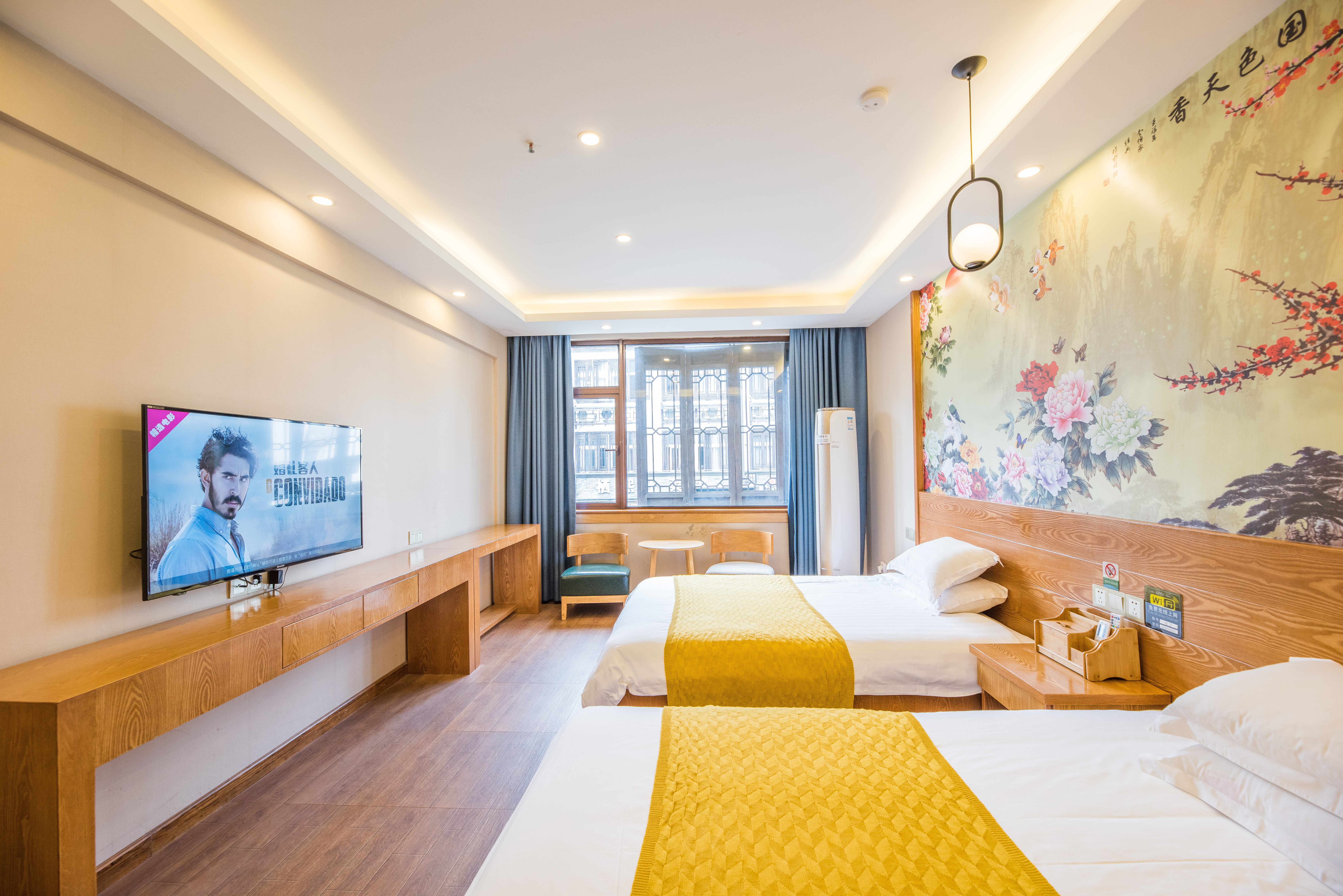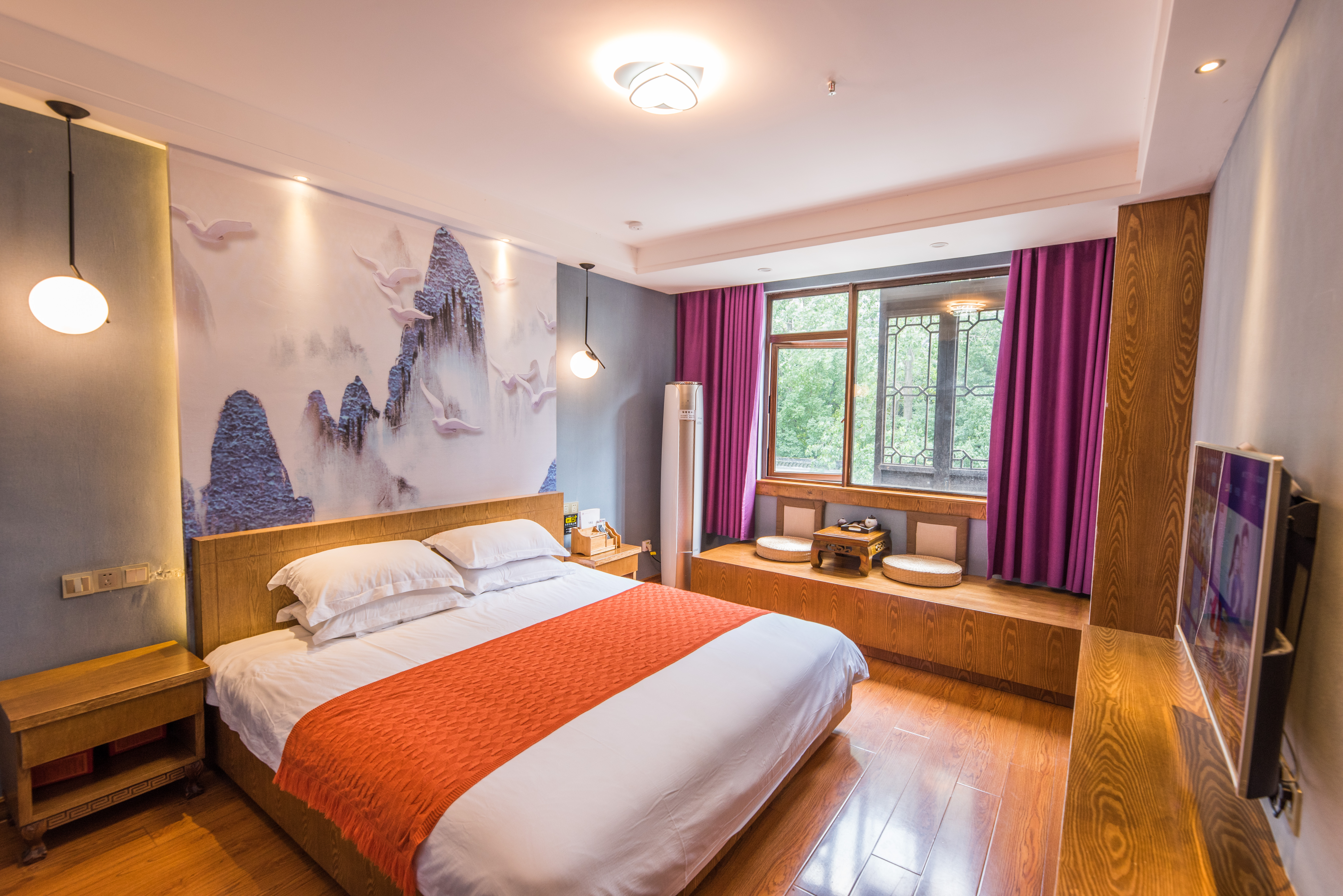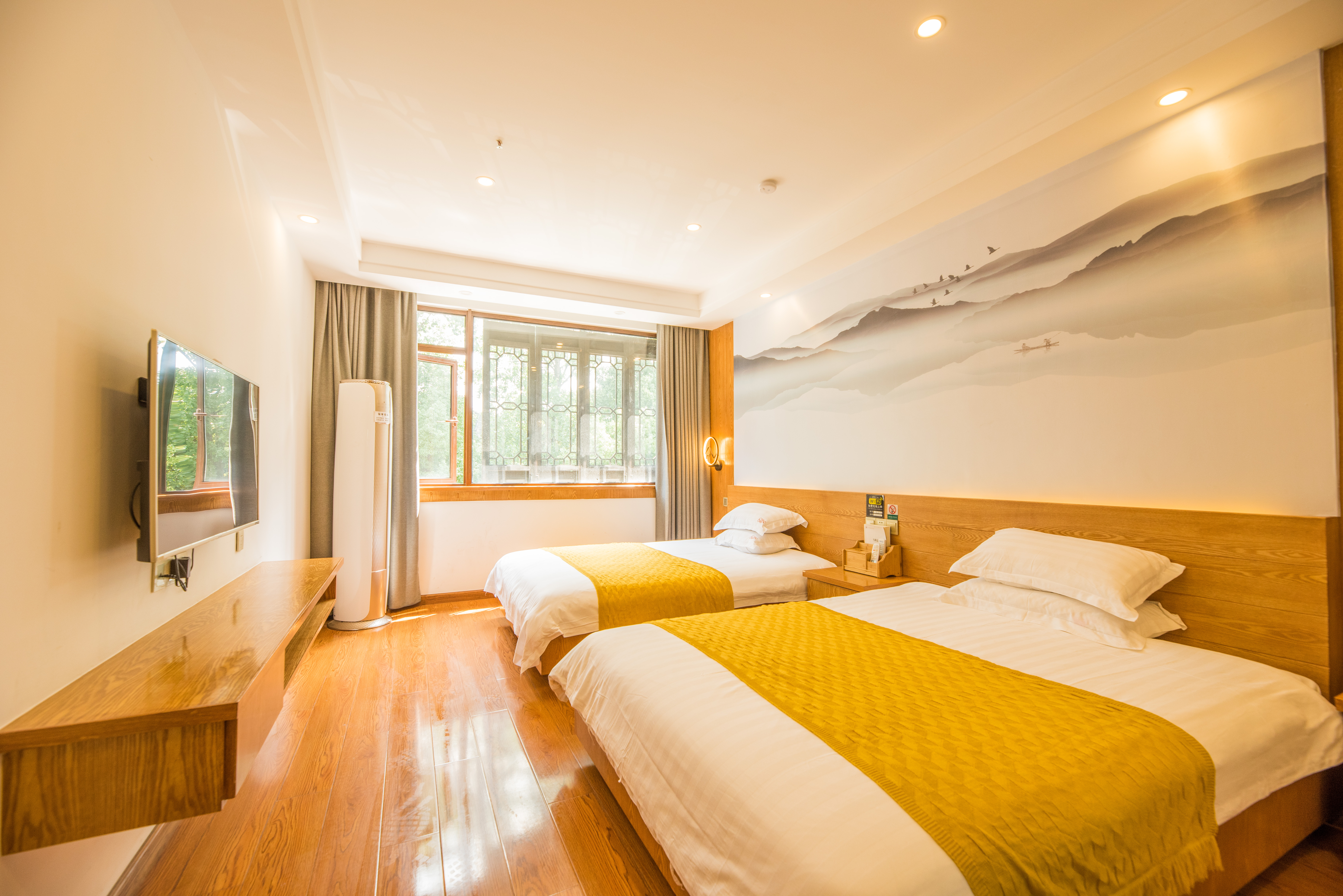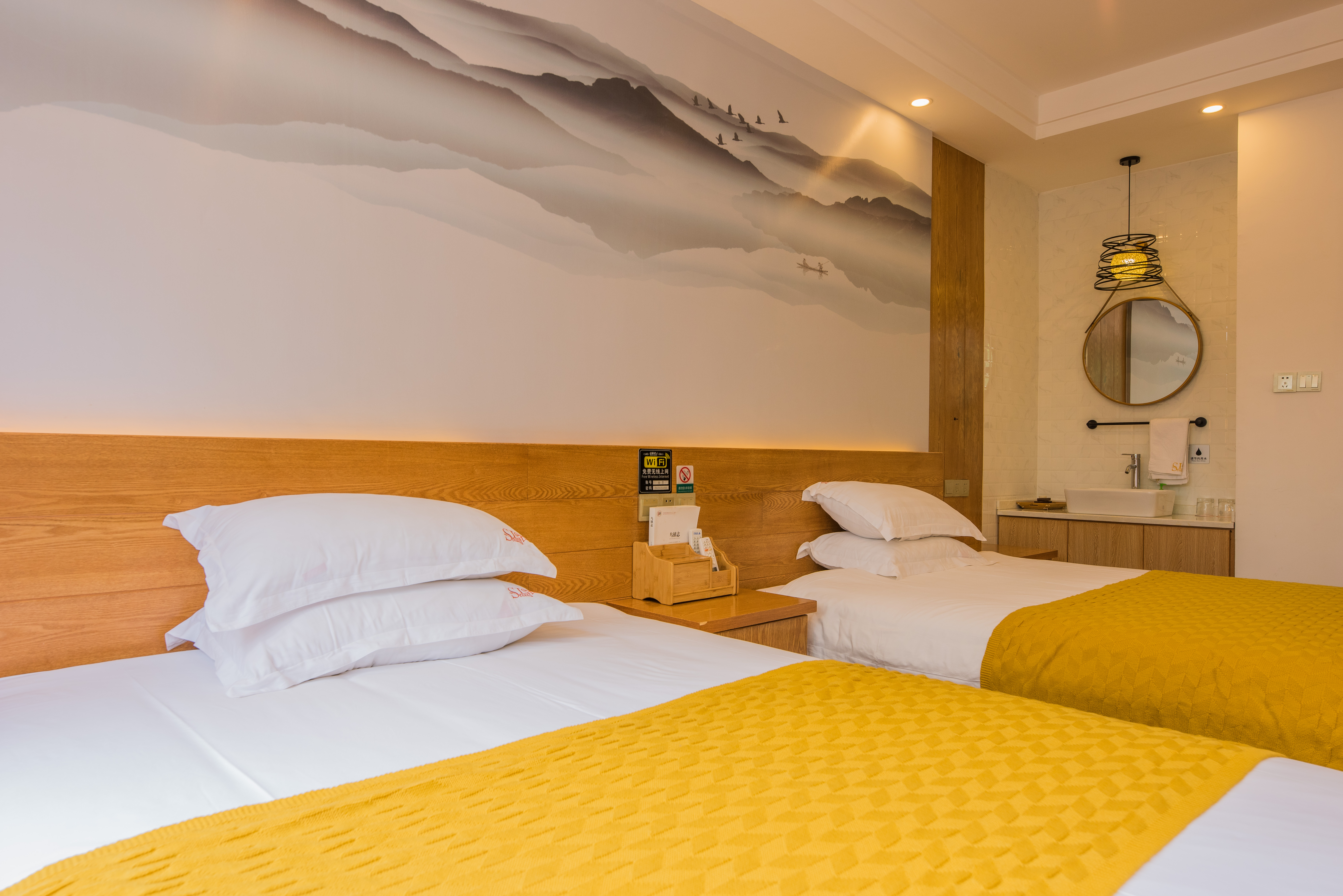 Sunbursl Mo Xiang Twin Room With Chinese Painting, Wet-Dry Separation, Comforting Zero Pressure Mattress, Independent Lounge Chair, And Soft Cotton Products