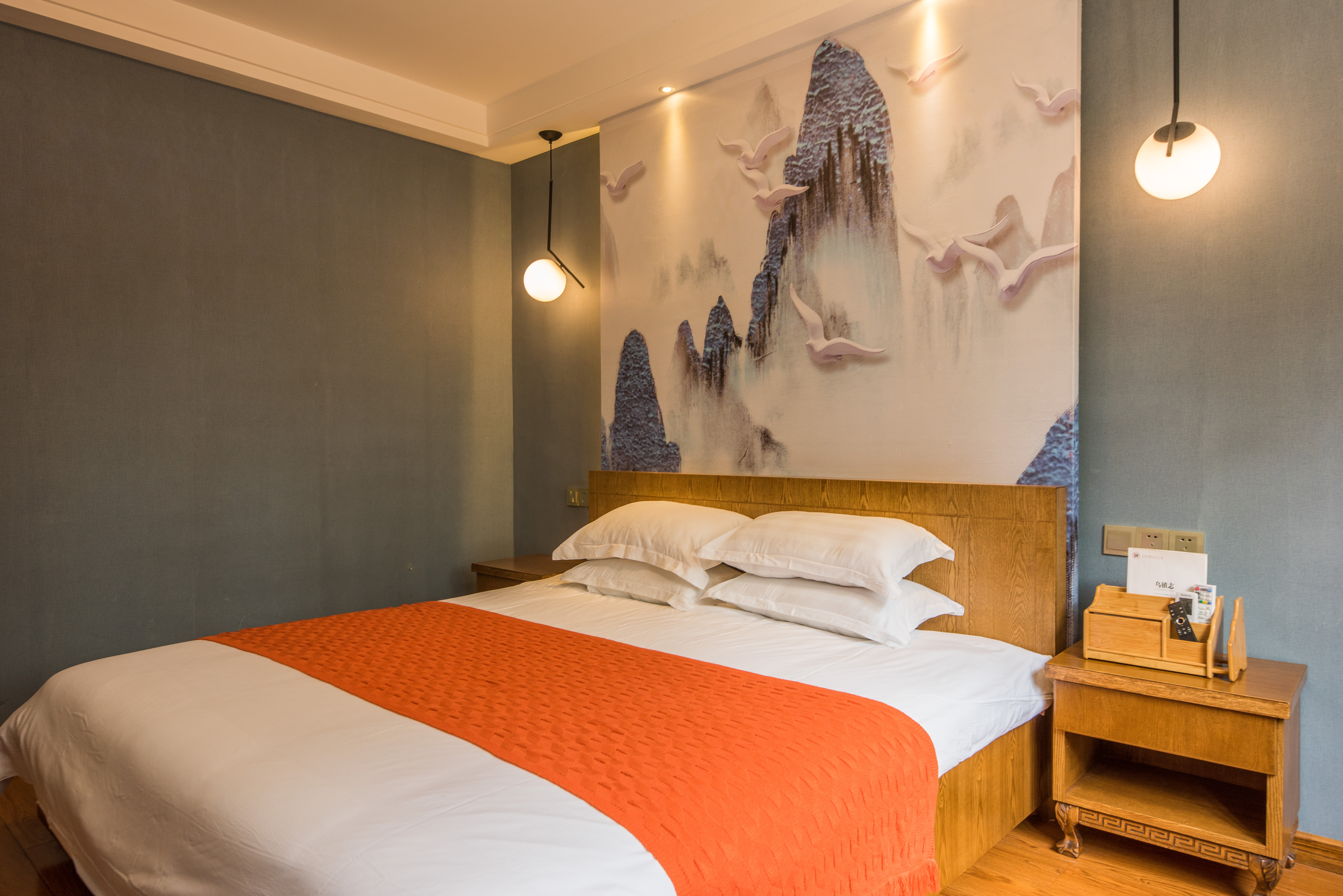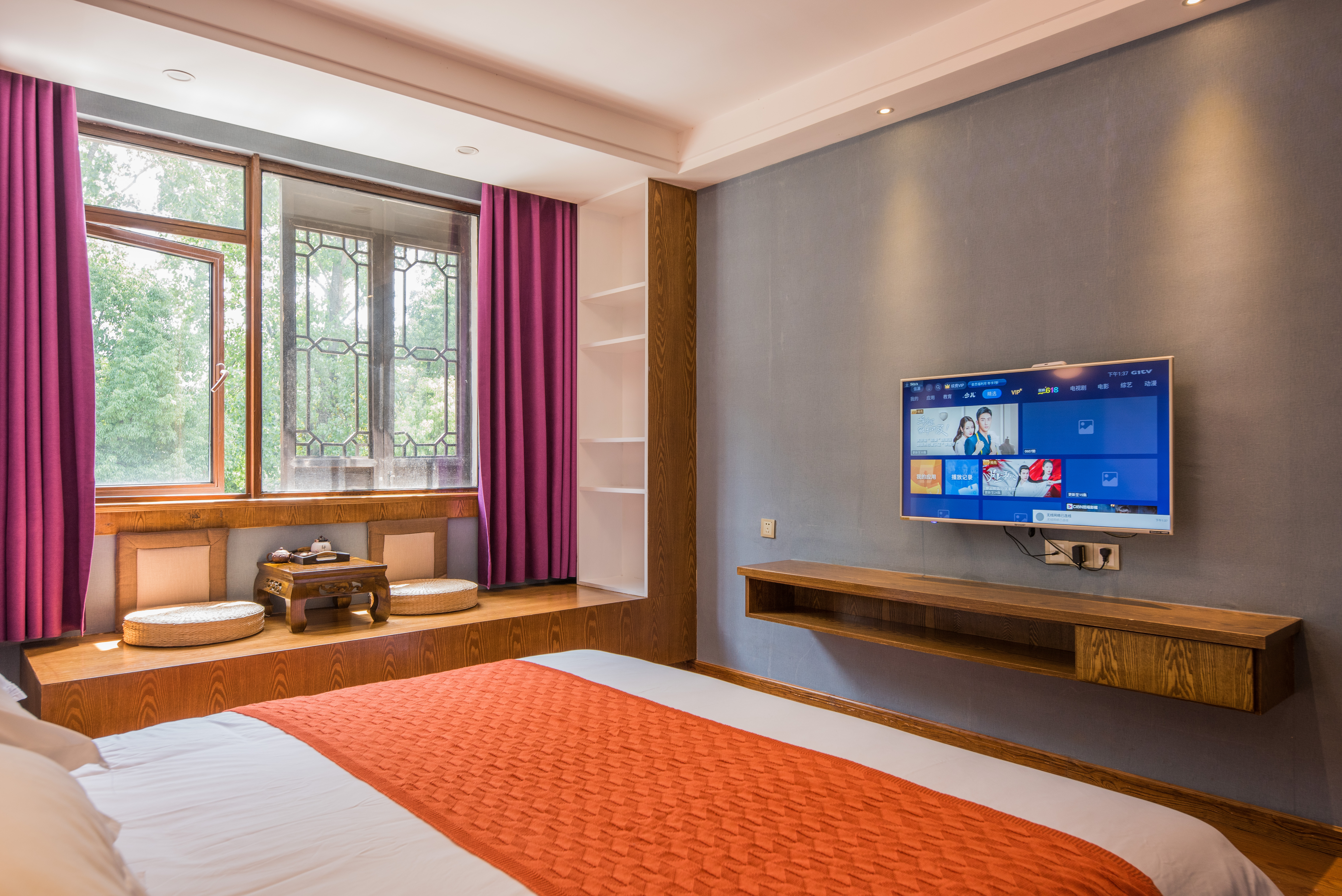 Purely Song Ya Double Bed Room With Tea Table Rest Area, Deep Sleep Quality, And Jiangnan Water Town Ambiance