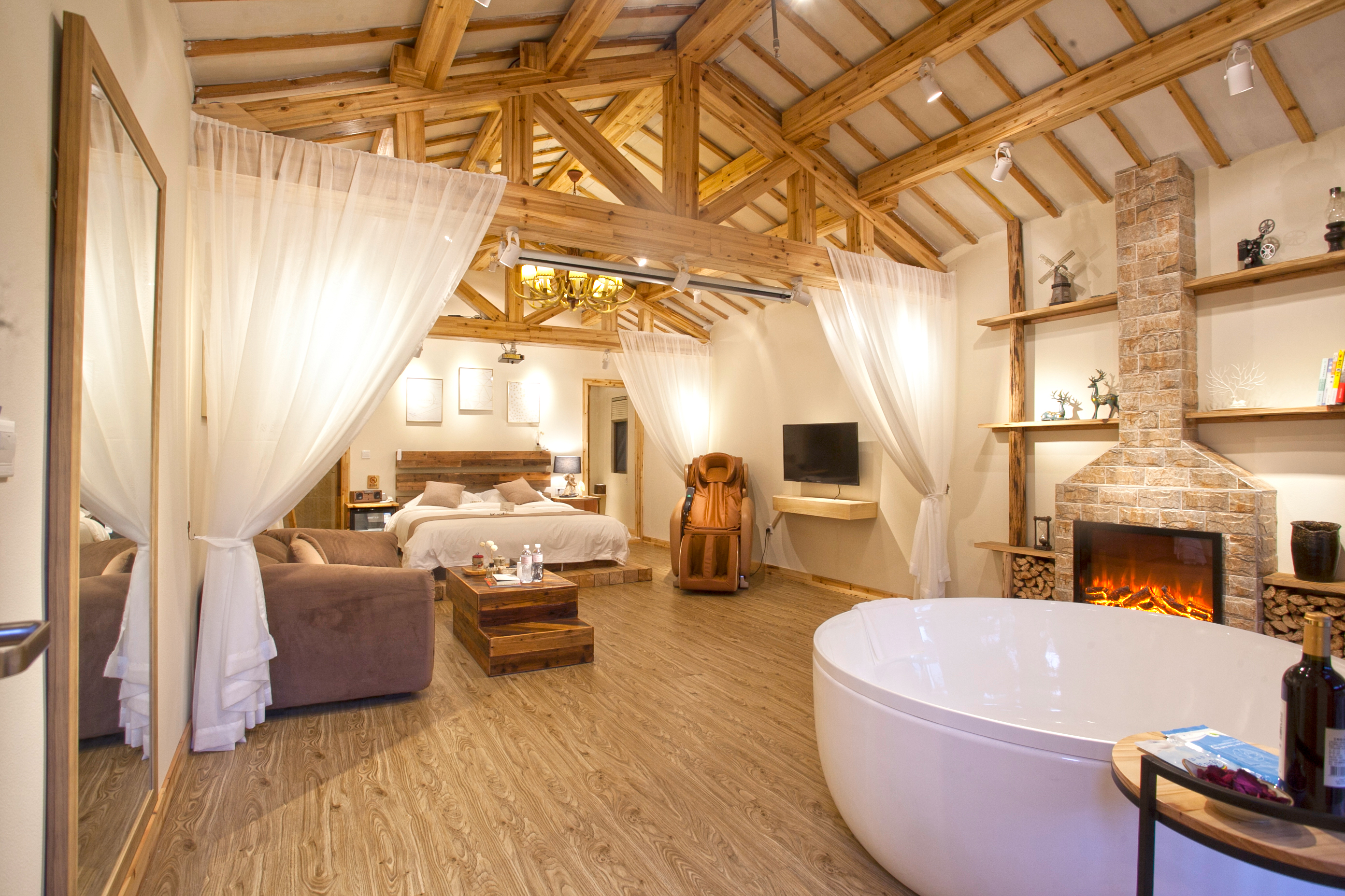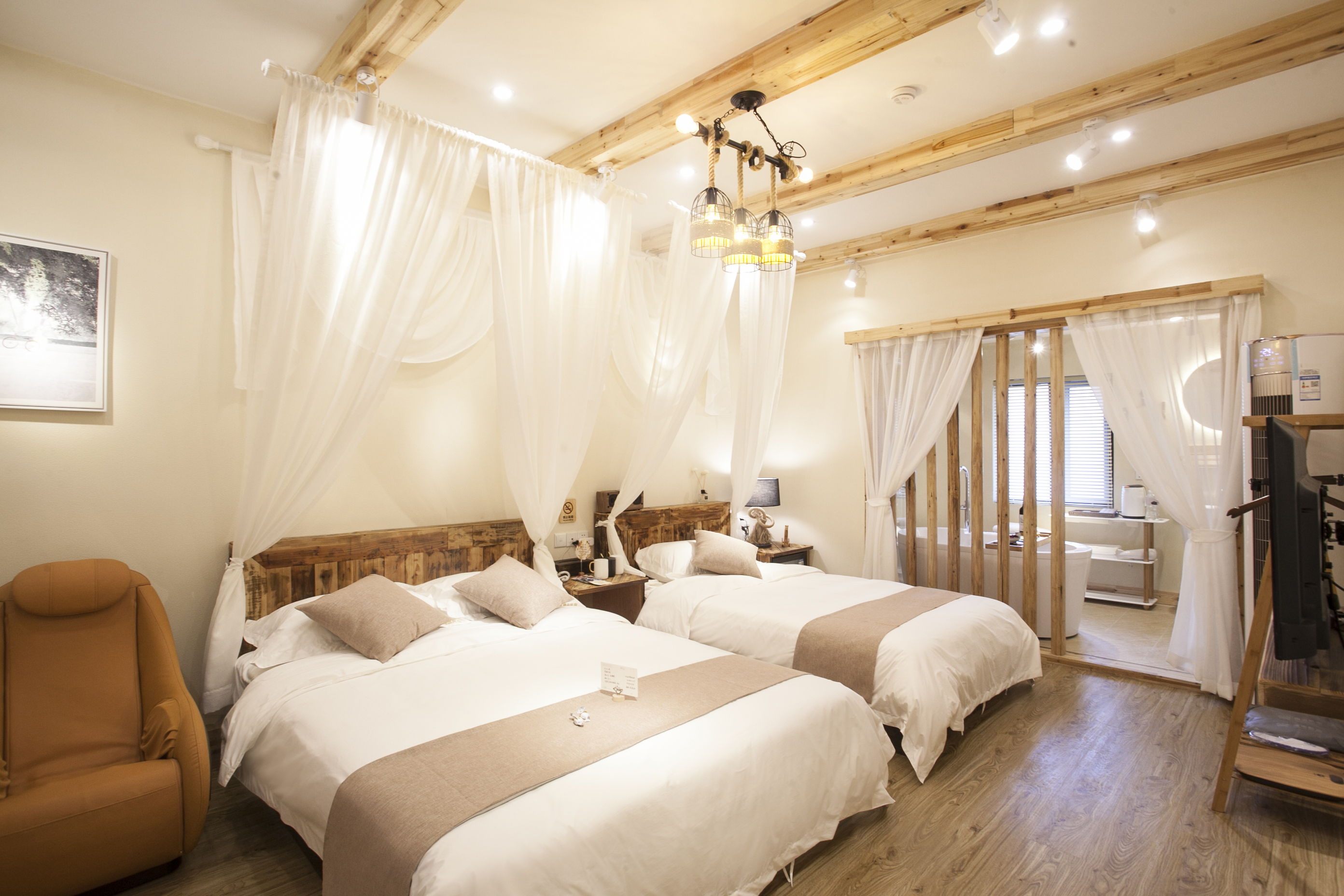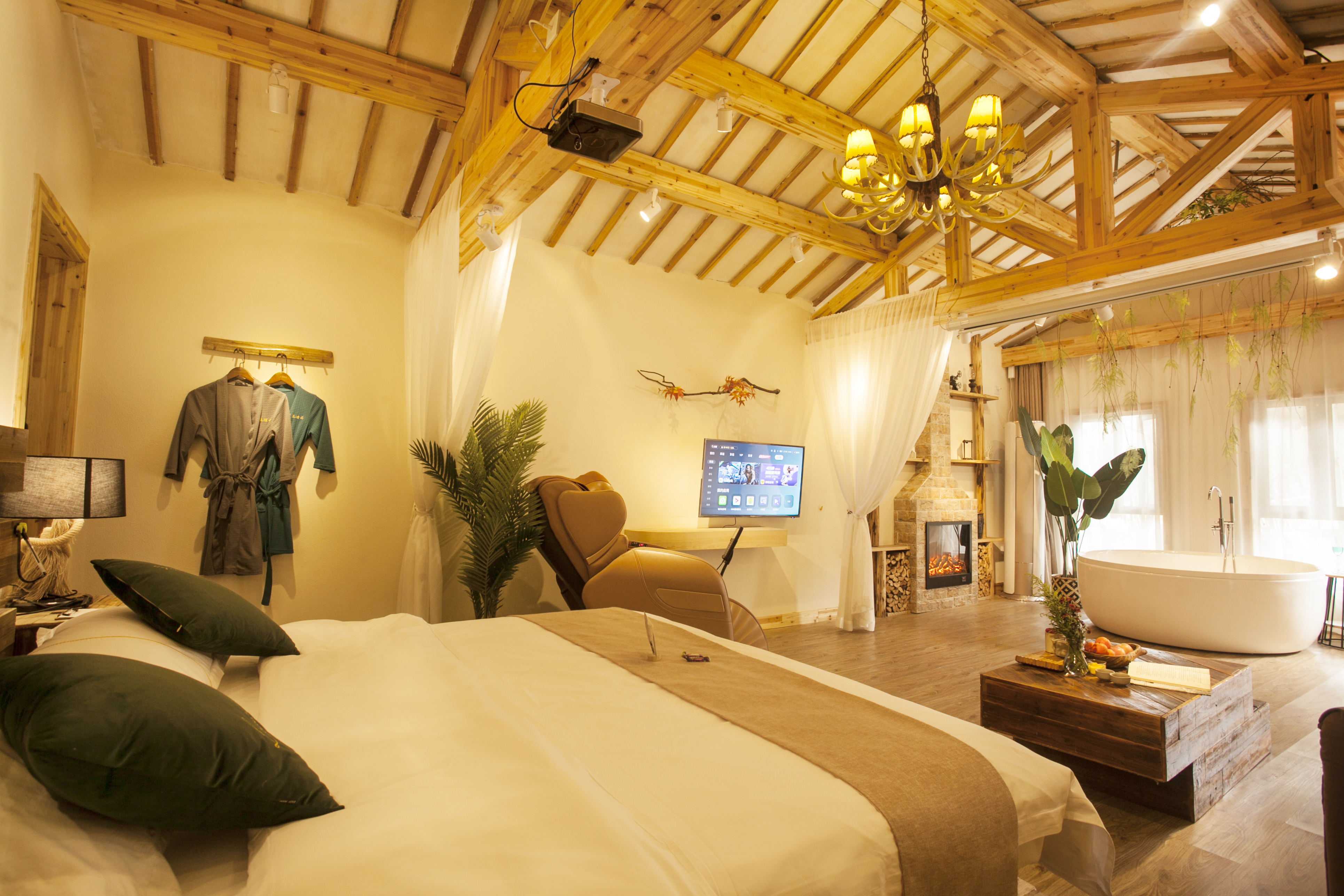 Zimu Detached Double Bed Room (Tub, Massage Chair, Projector, Fridge, Smart Toilet, Courtyard)