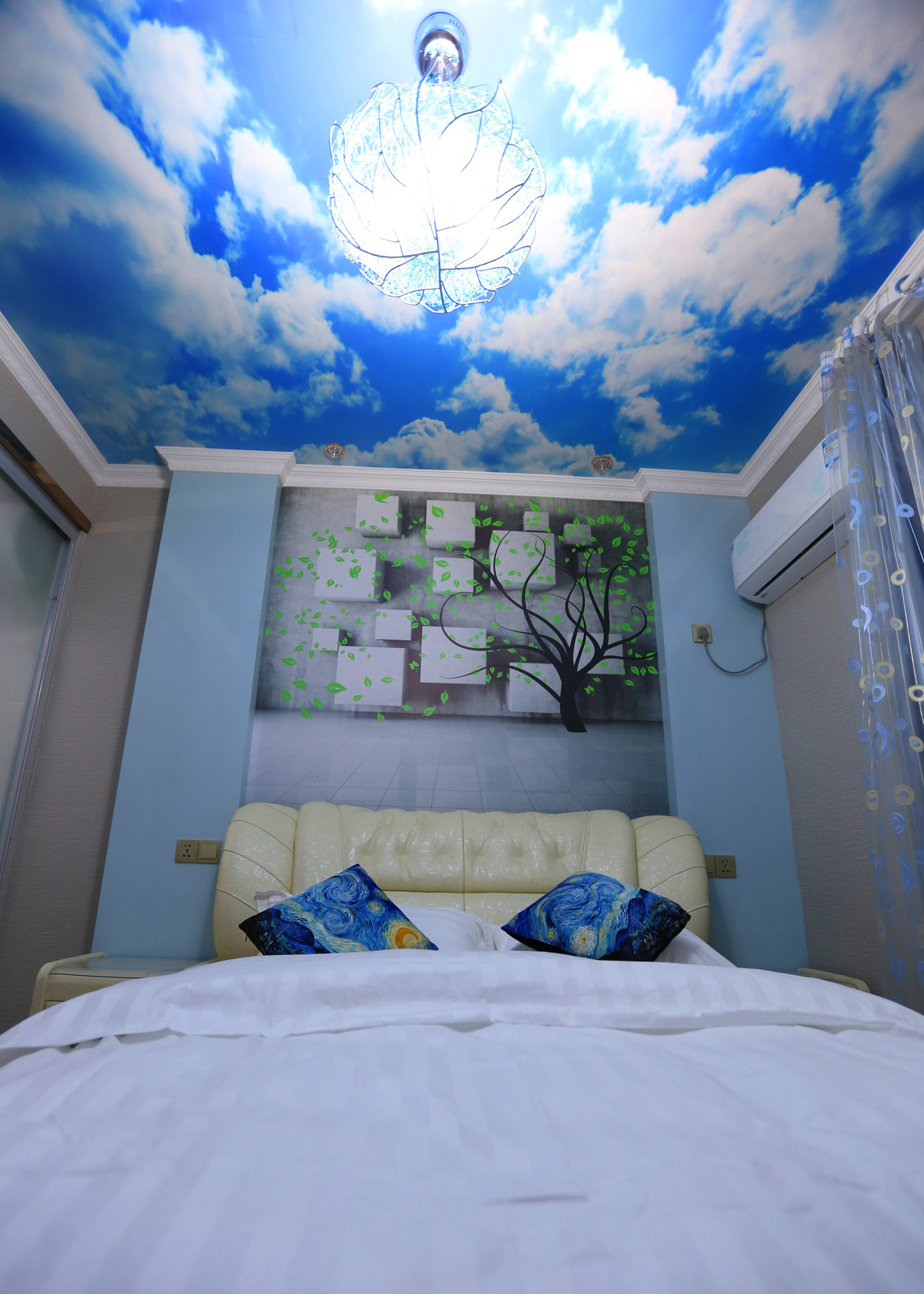 Blue Sky White Clouds Comfort Double Bed Room