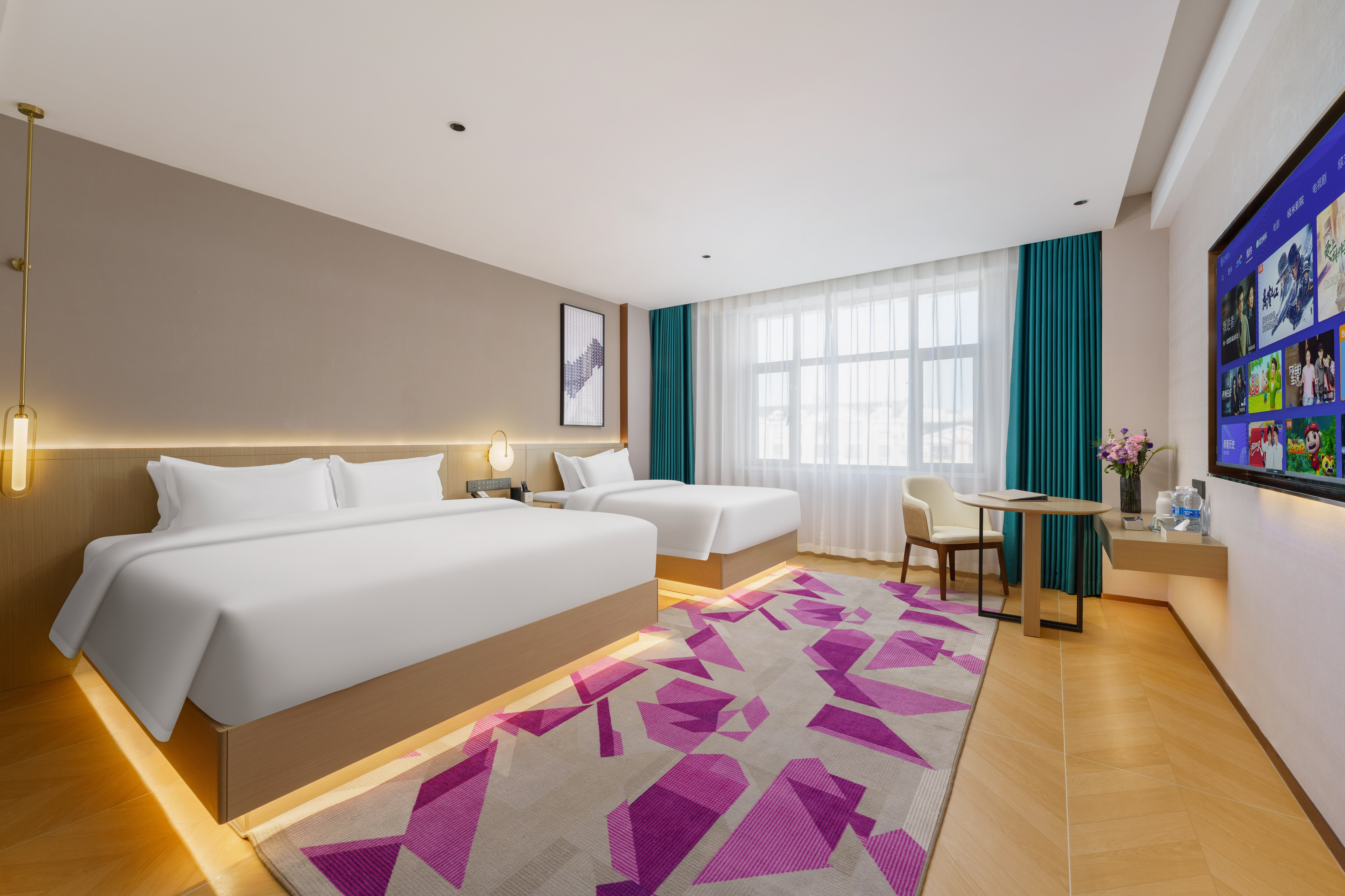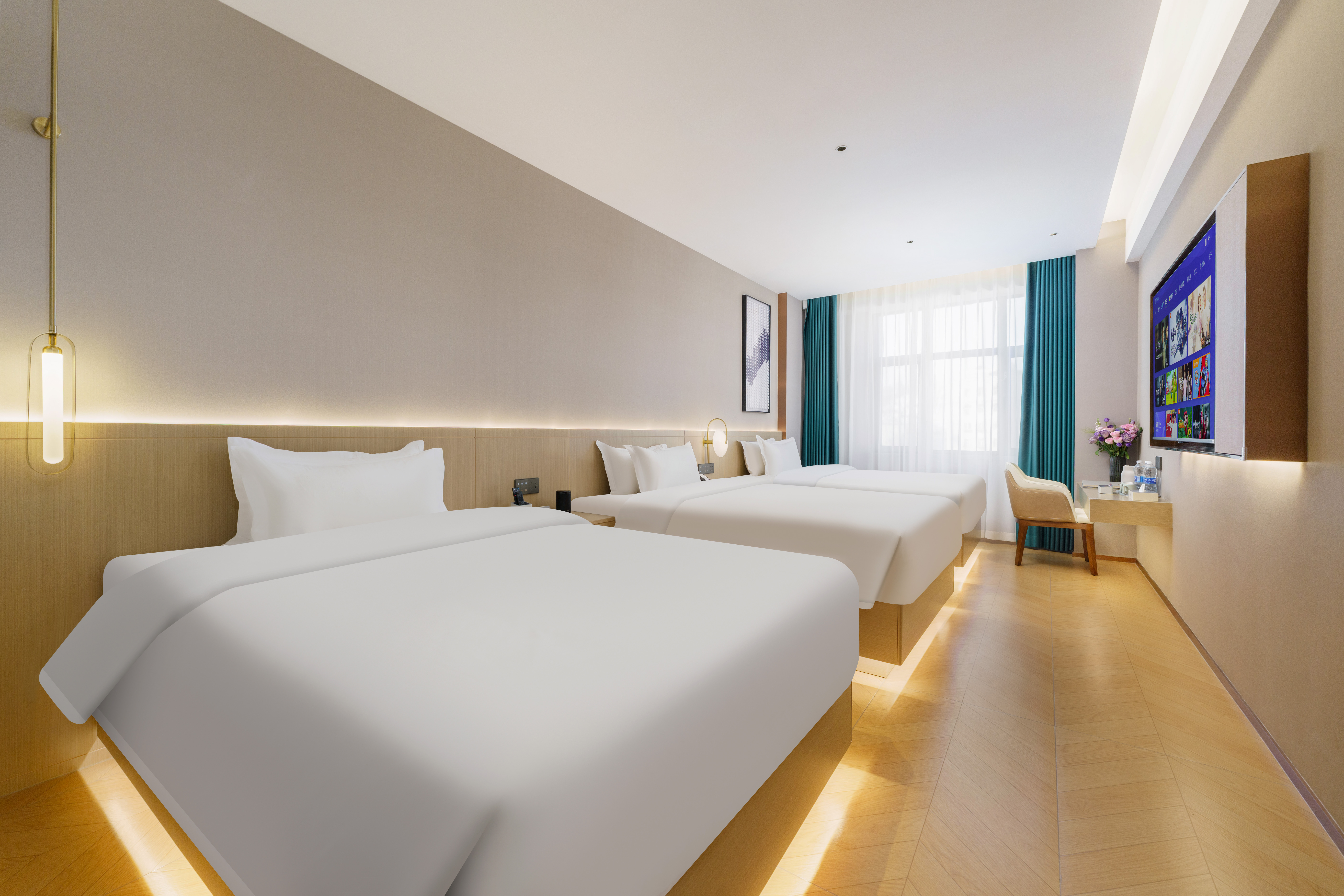 尊享三人間+智能客控+金馬王深度睡眠床墊+城市景觀