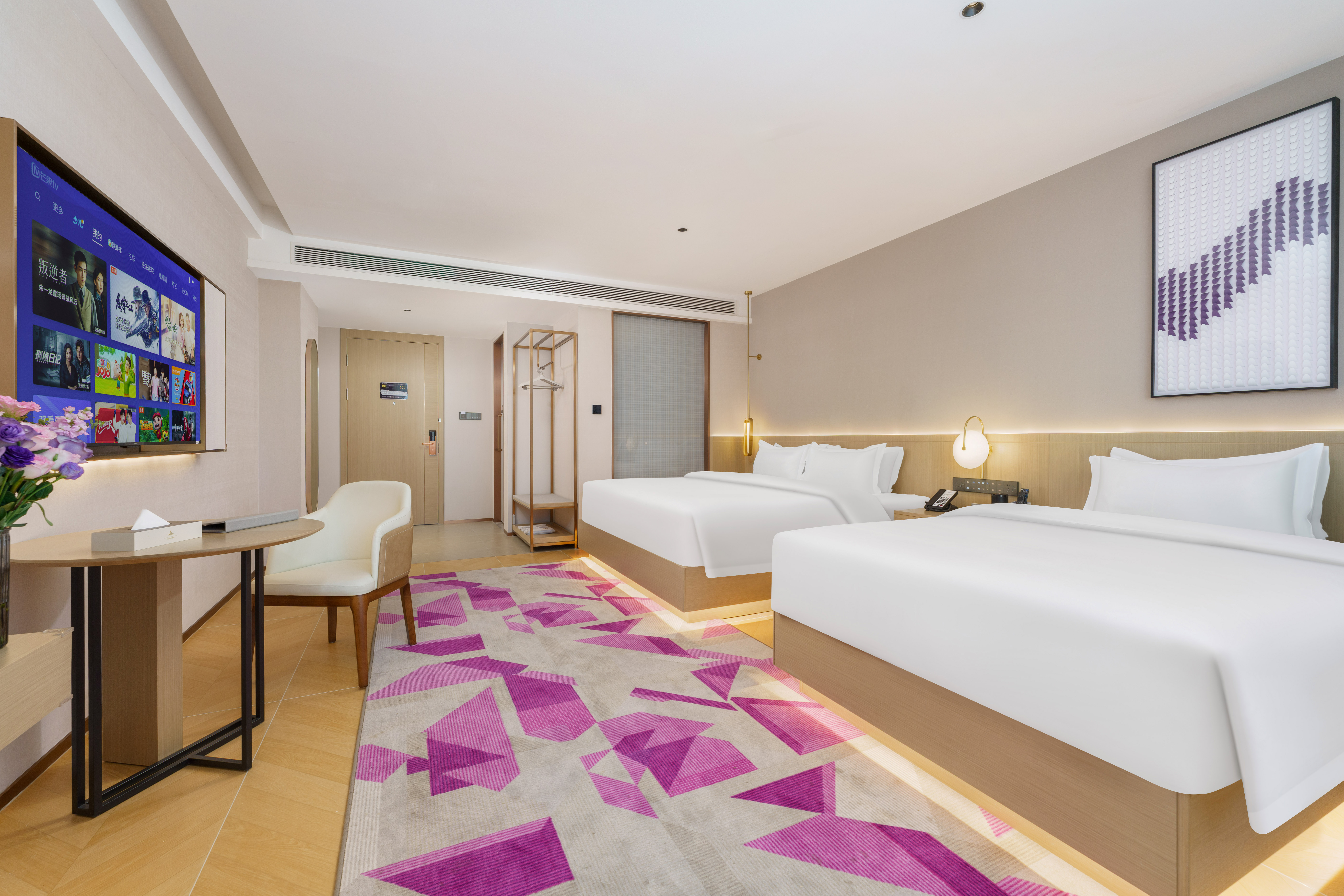 尊享雙床房+智能客控+金馬王深度睡眠床墊+城市景觀