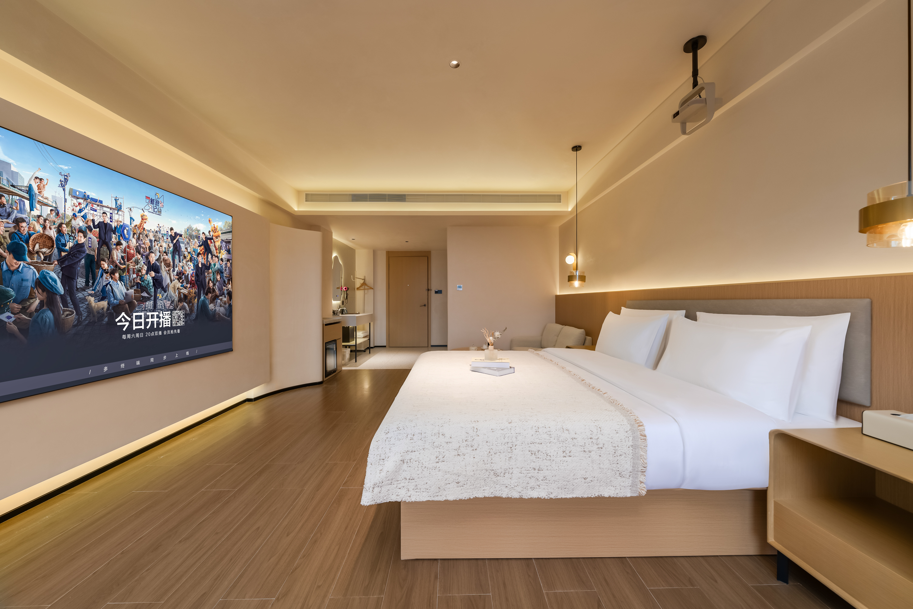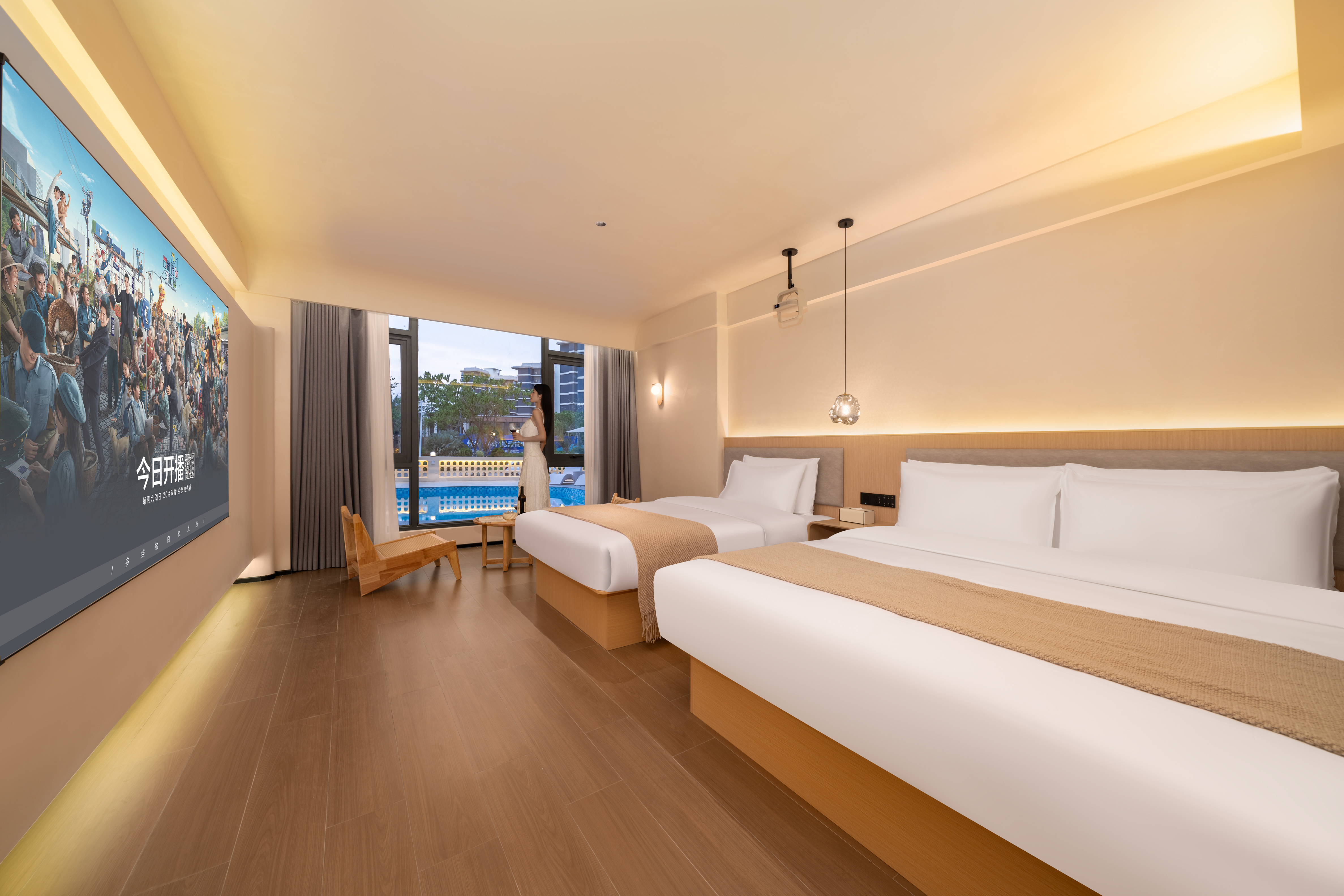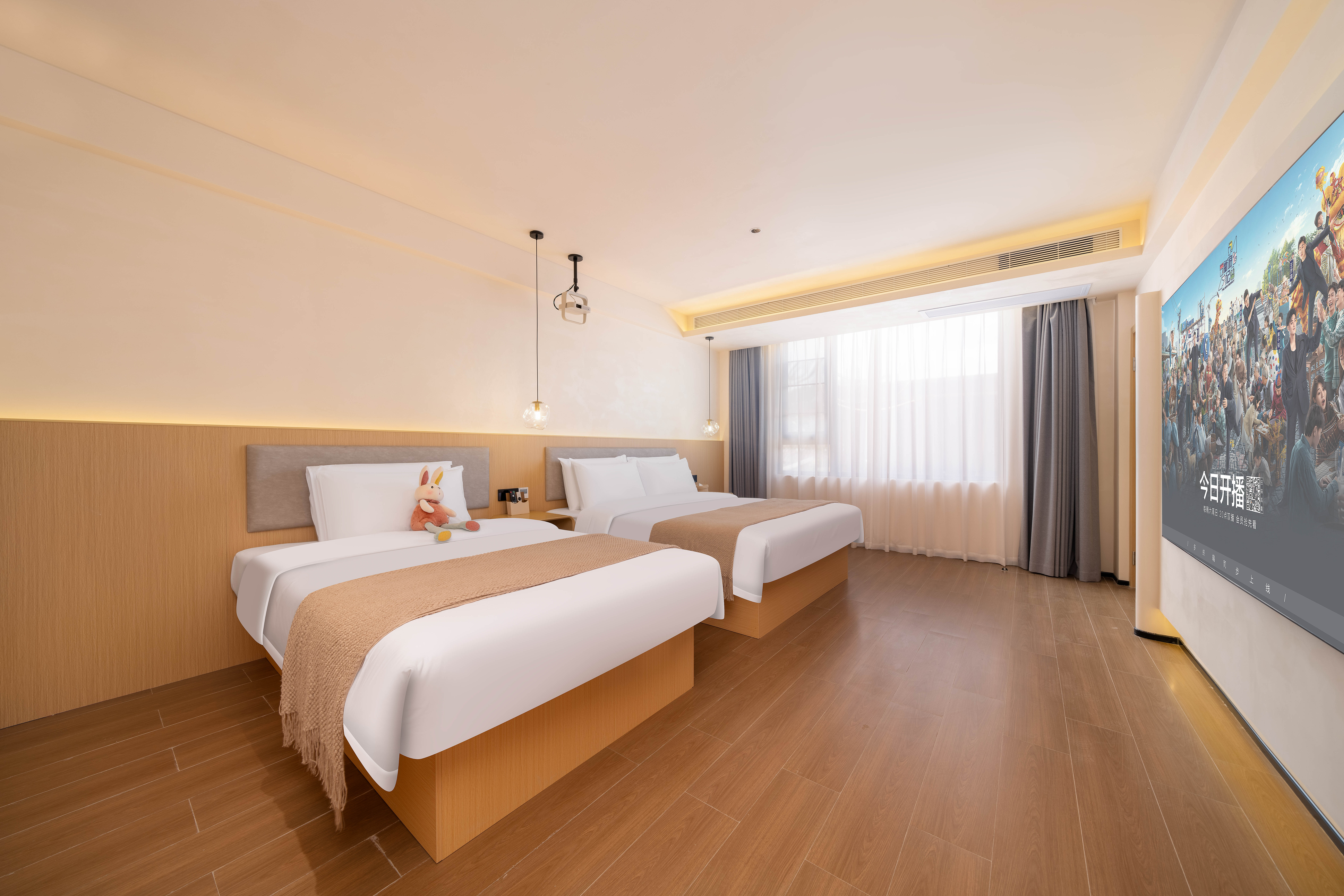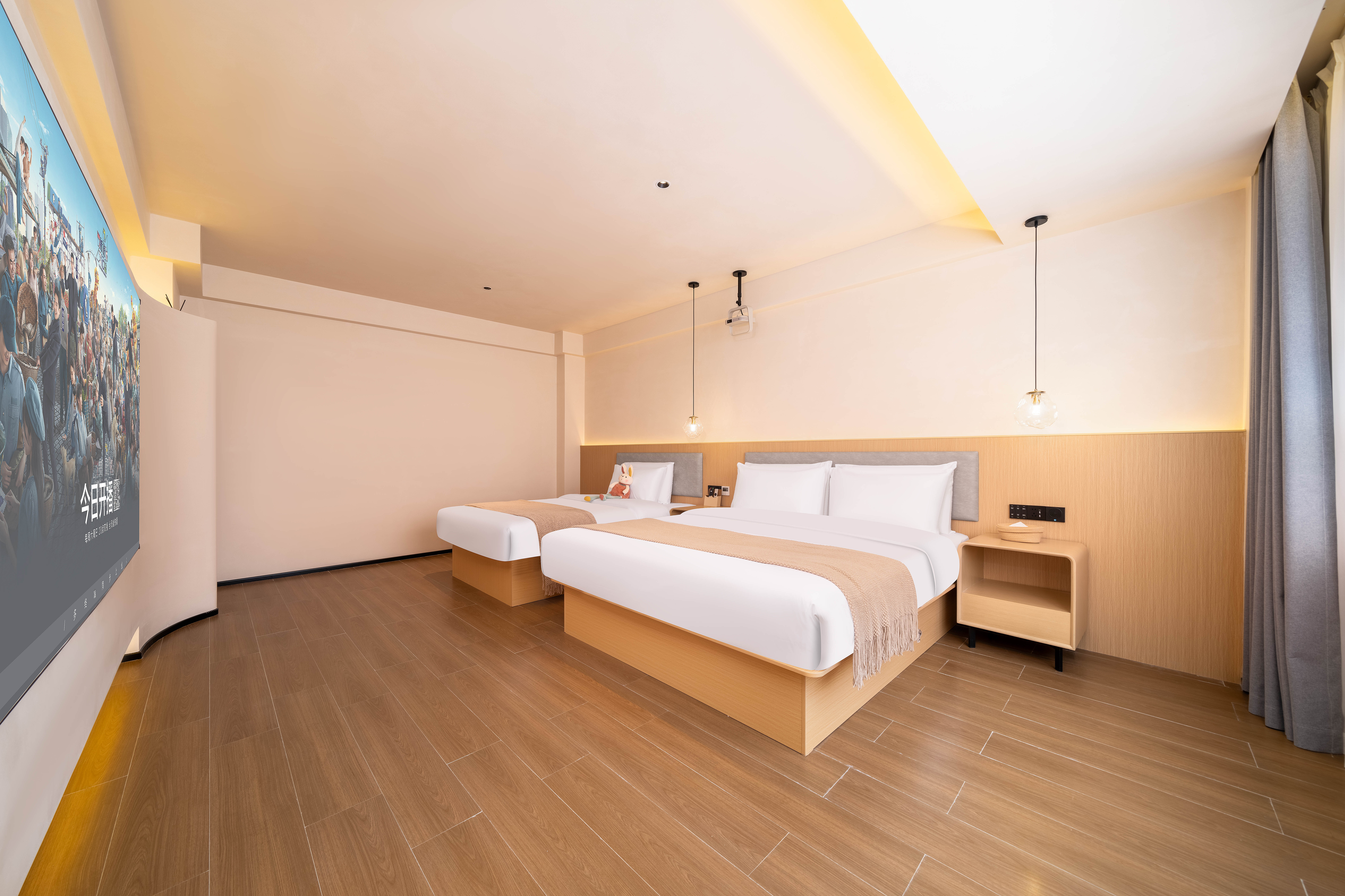 AI漁燈·180°禪意親子雙床房[智能影院-夢百合零壓床]