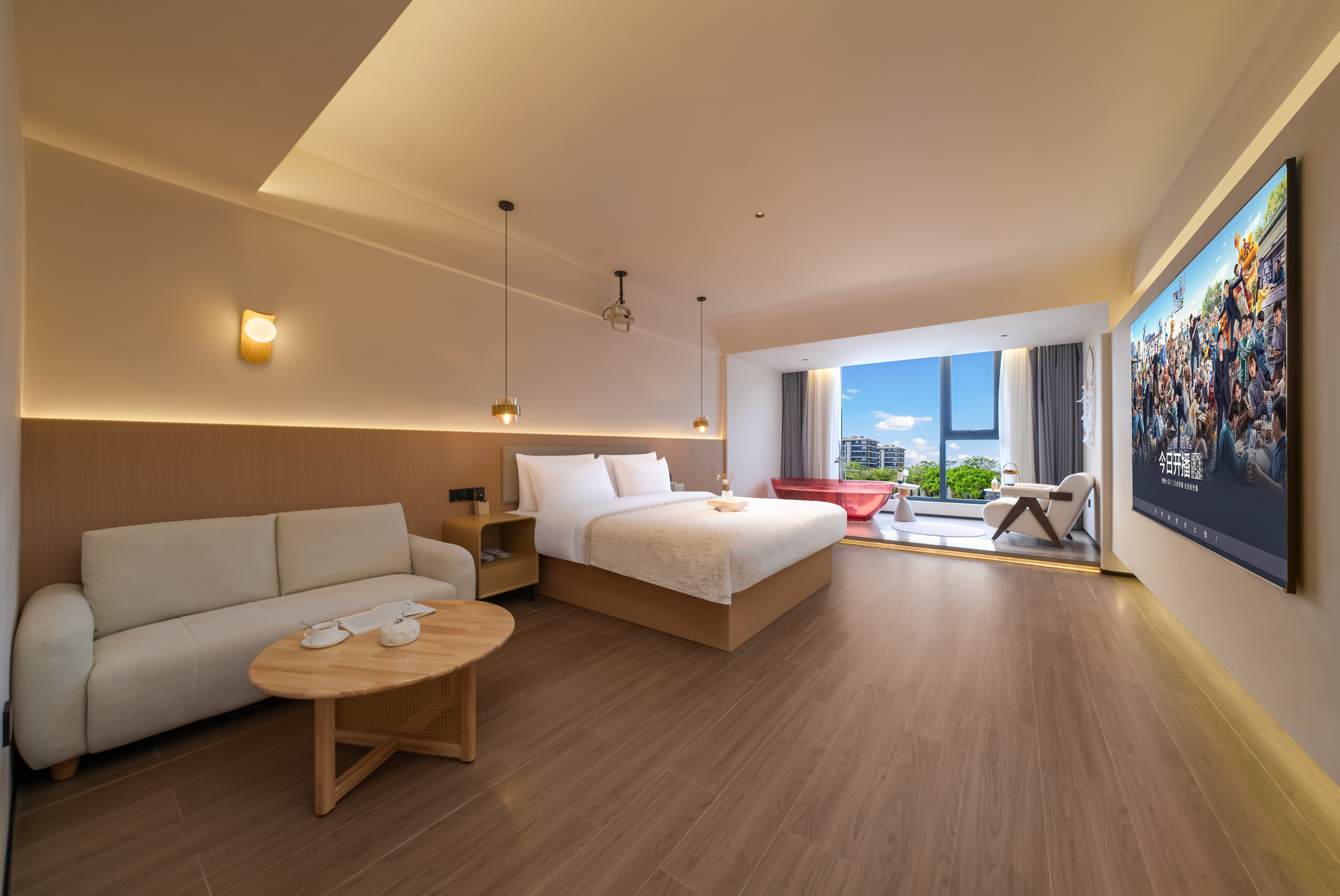 AI伴島·180°泡泡浴缸大床房[落地景觀-氛圍泡泡浴缸]