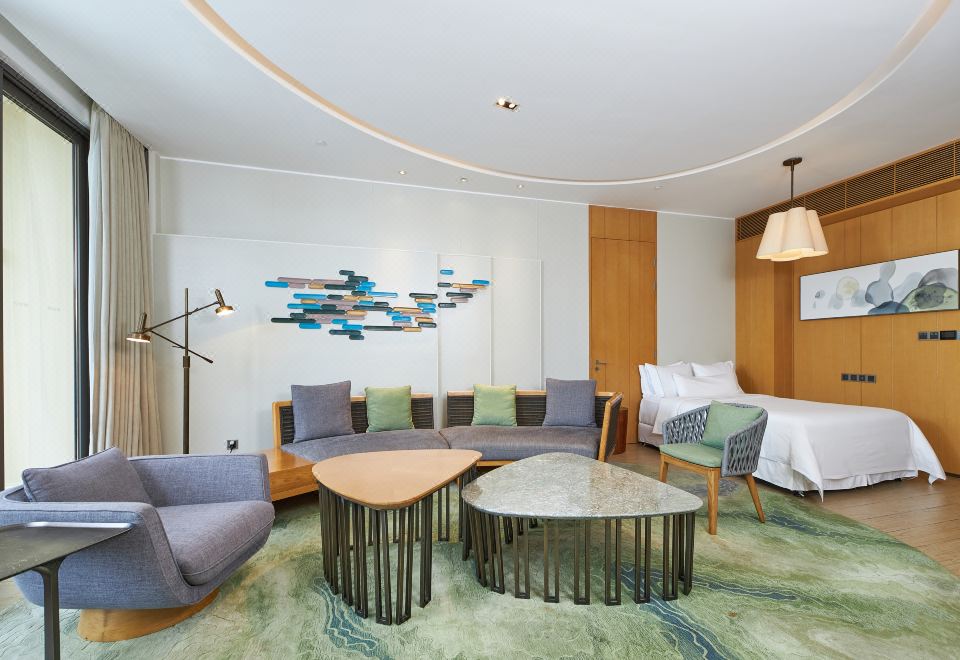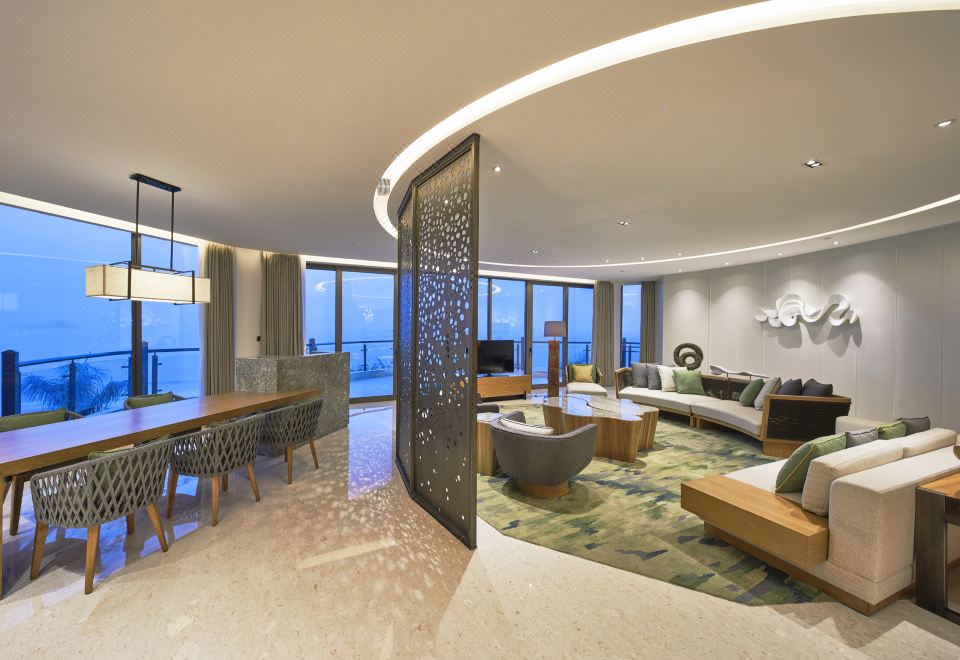 豪华园景家庭双卧套房|下沉式客厅