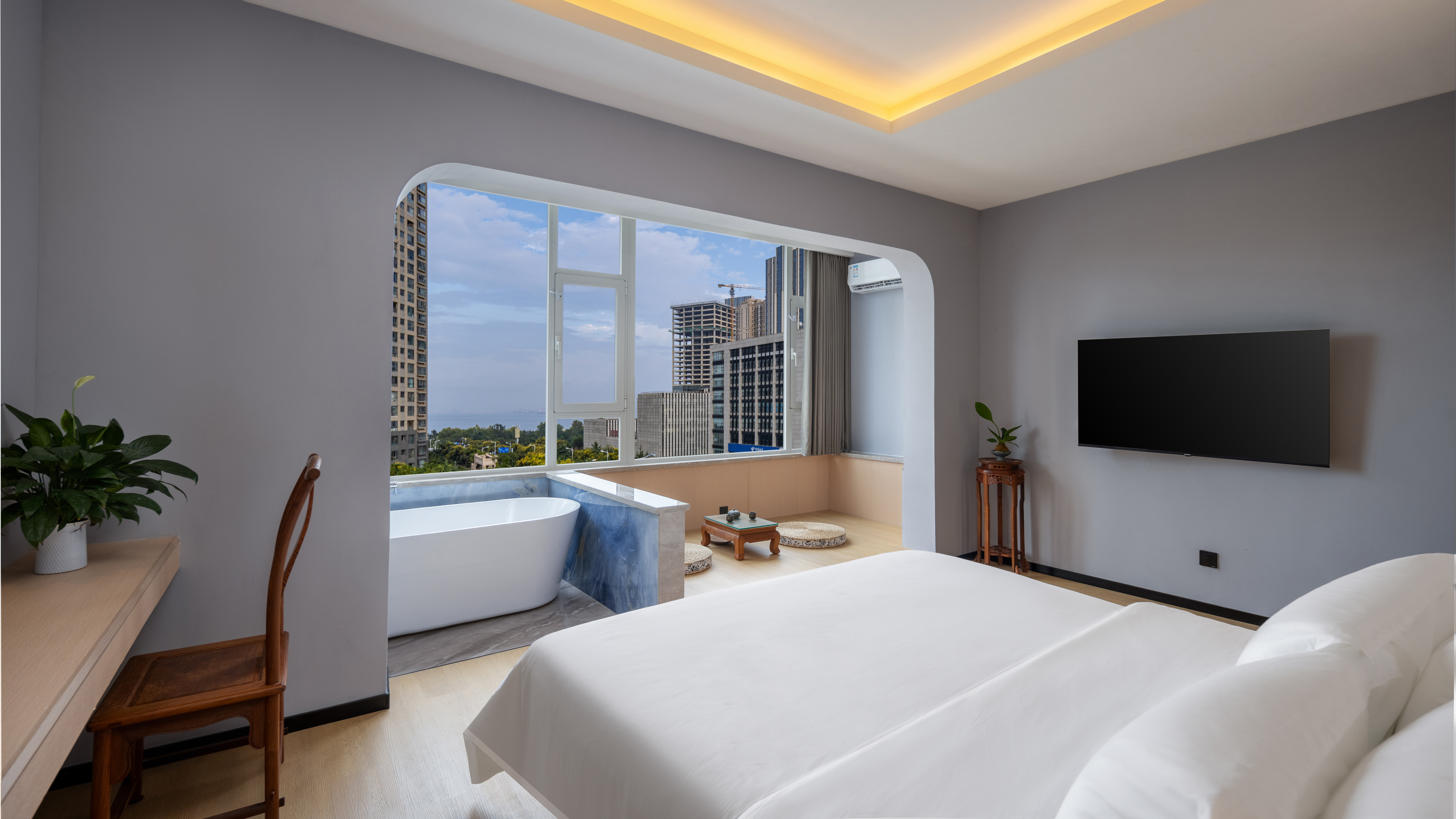 雲過山海大床房(語音客控+智能馬桶+陽台+全屋地暖)