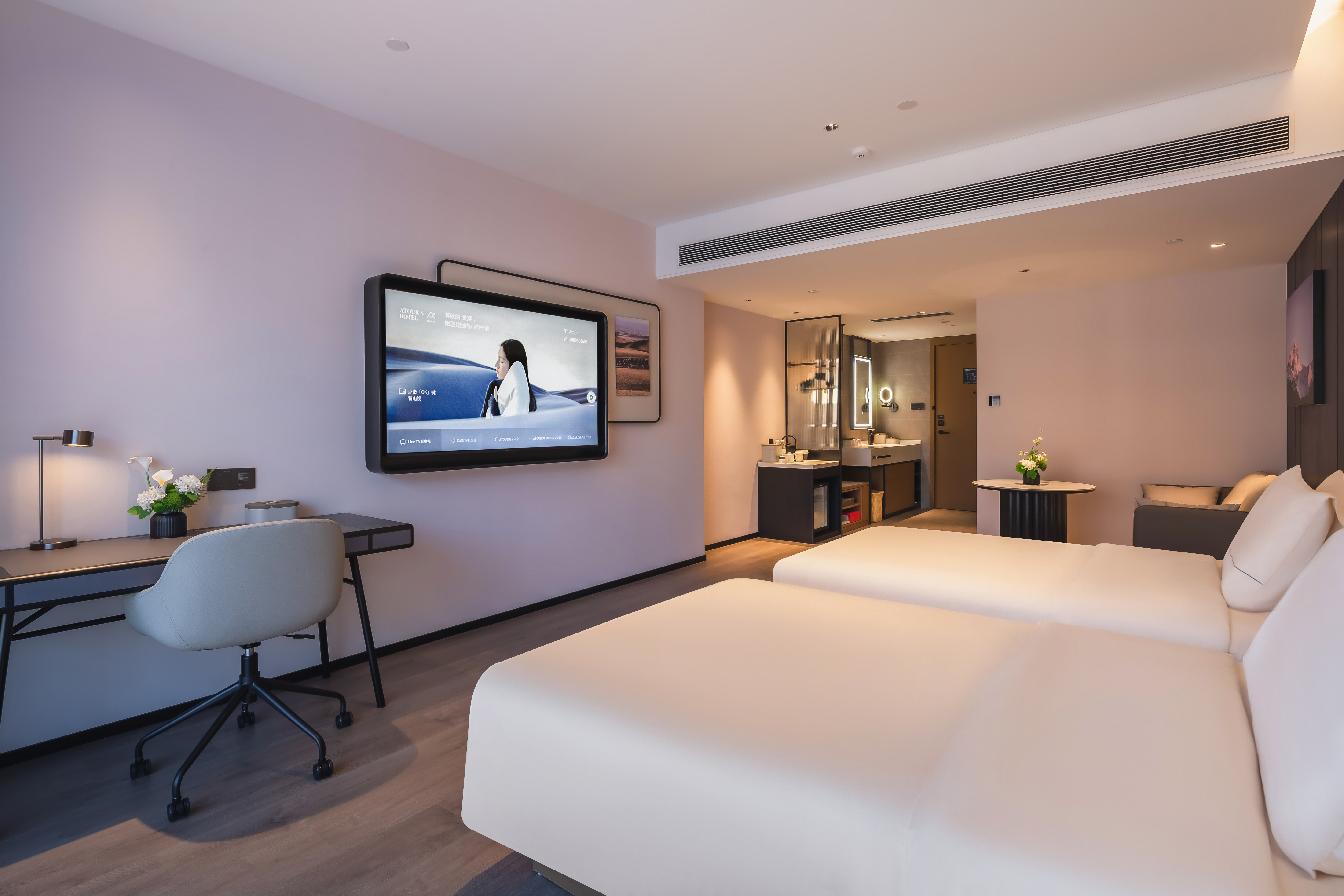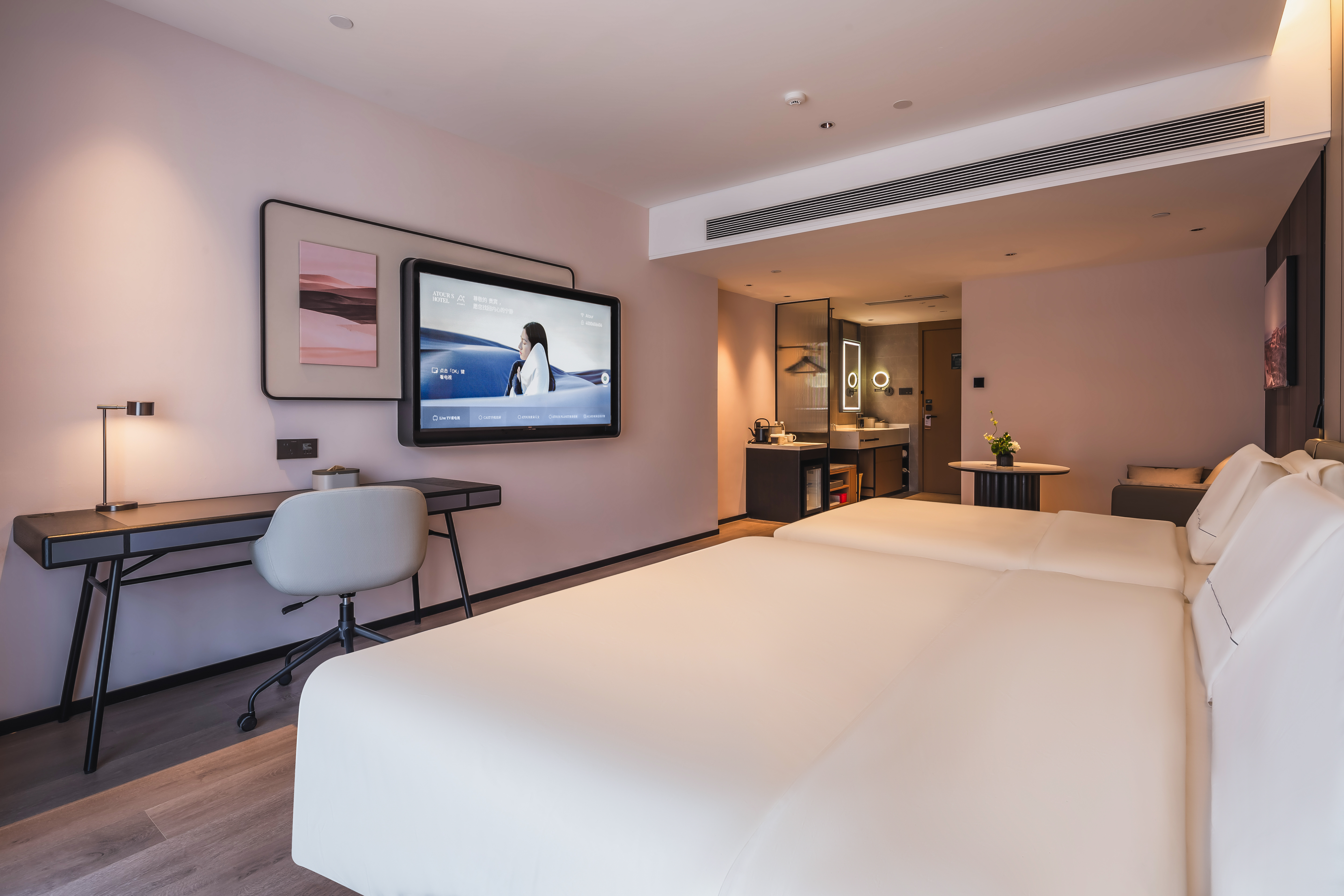 尊享雙床房(深睡枕1.0-深睡床墊-65寸電視投屏-小冰箱)