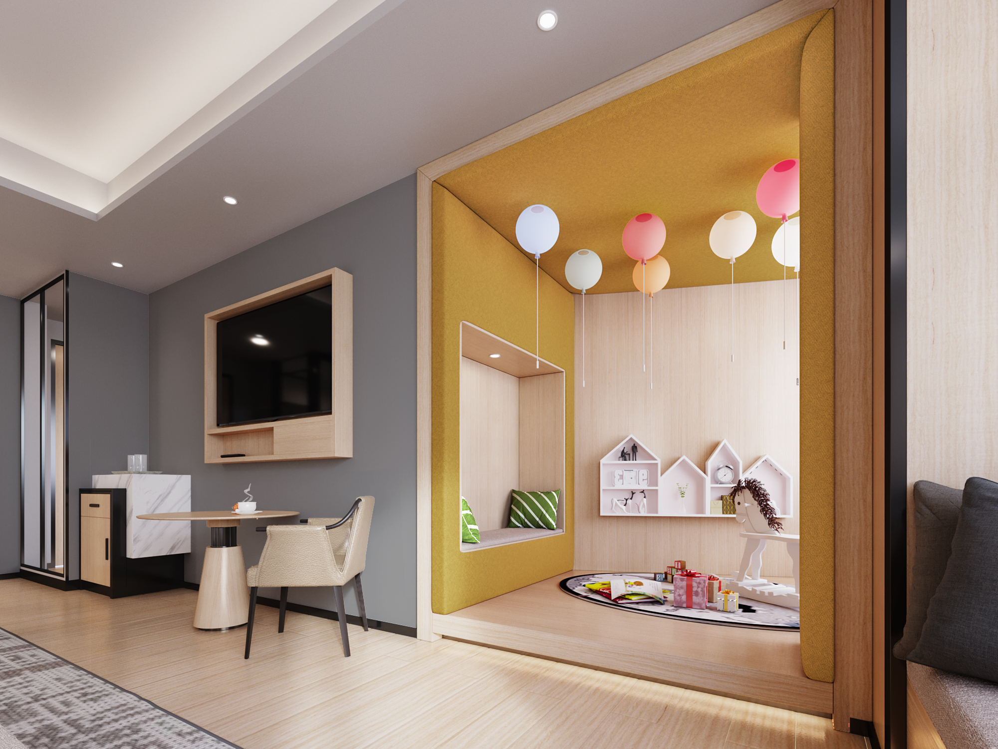欢聚·家庭多床房「双卧联通+童趣床品+100寸光学投影」