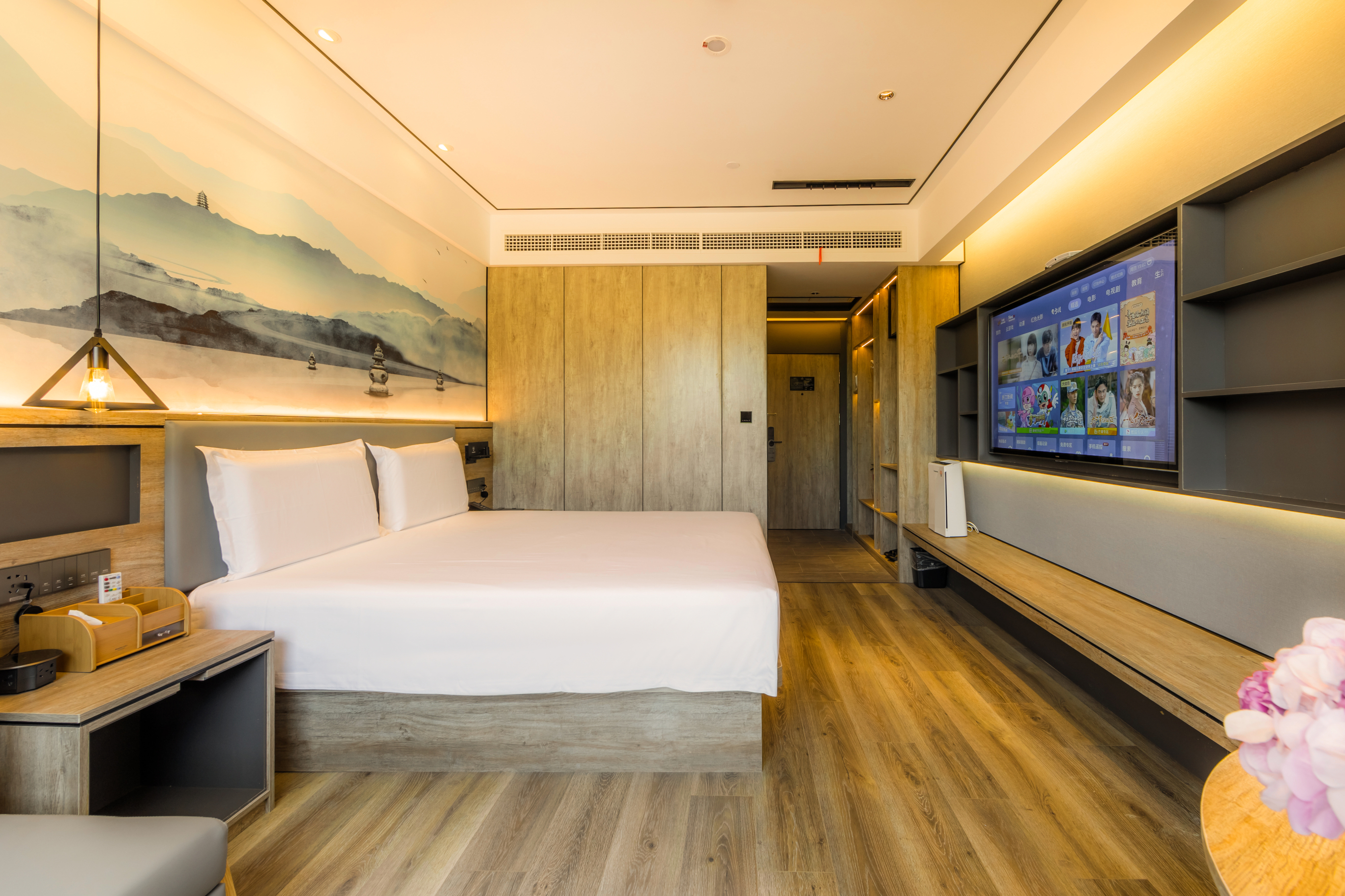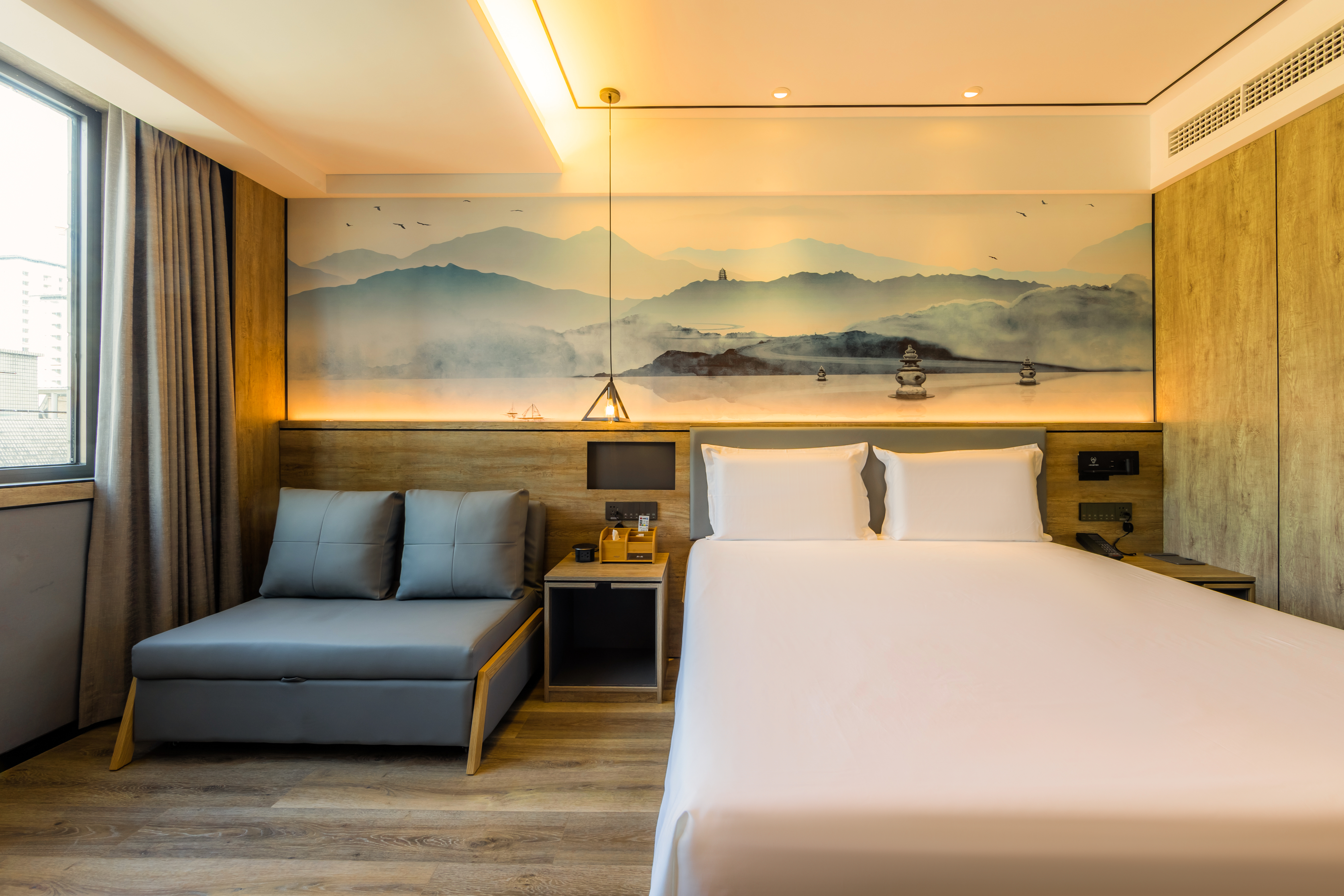 Elegant Double Bed Room With Mini Fridge, Latex Mattress, And Fresh Air System