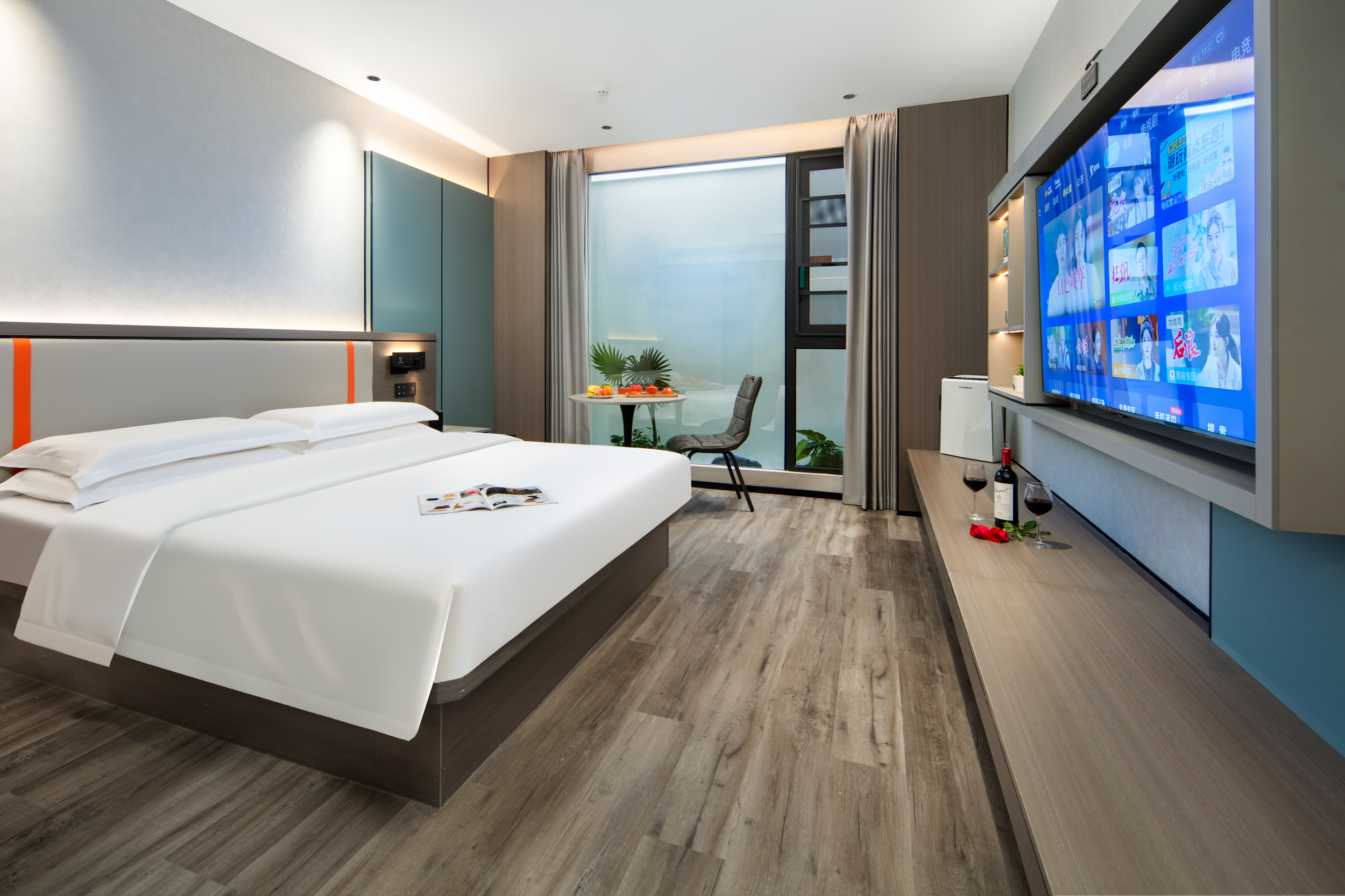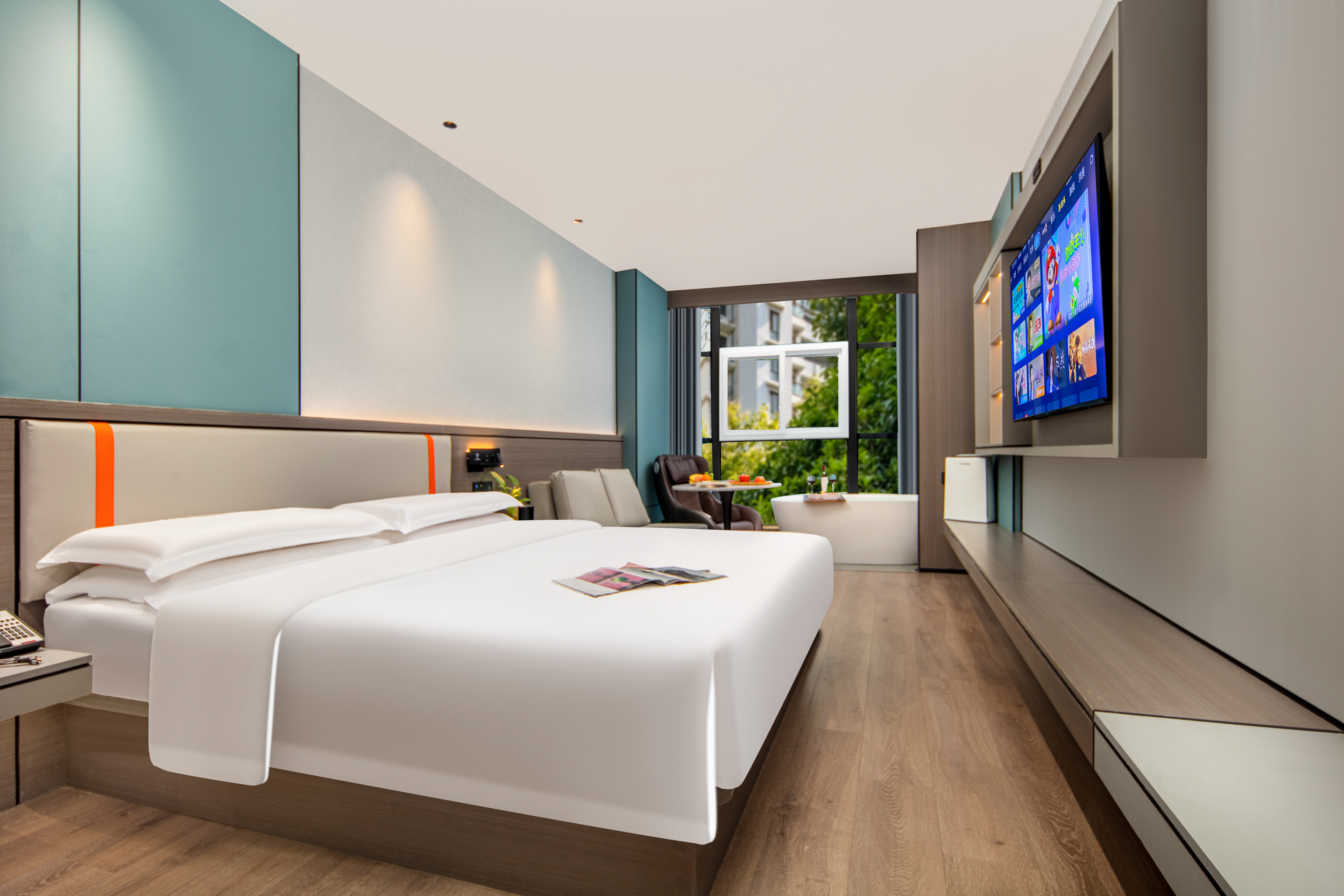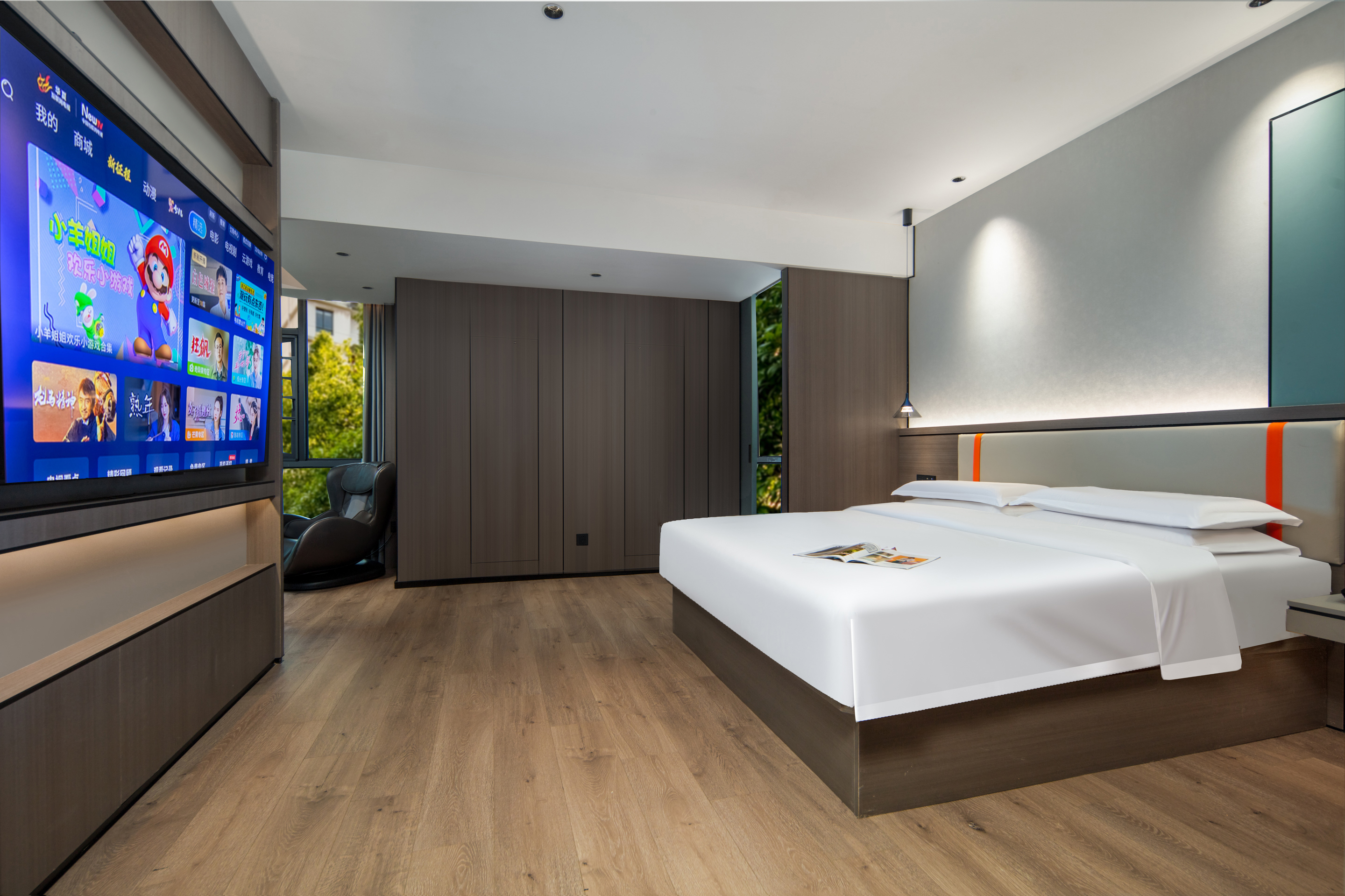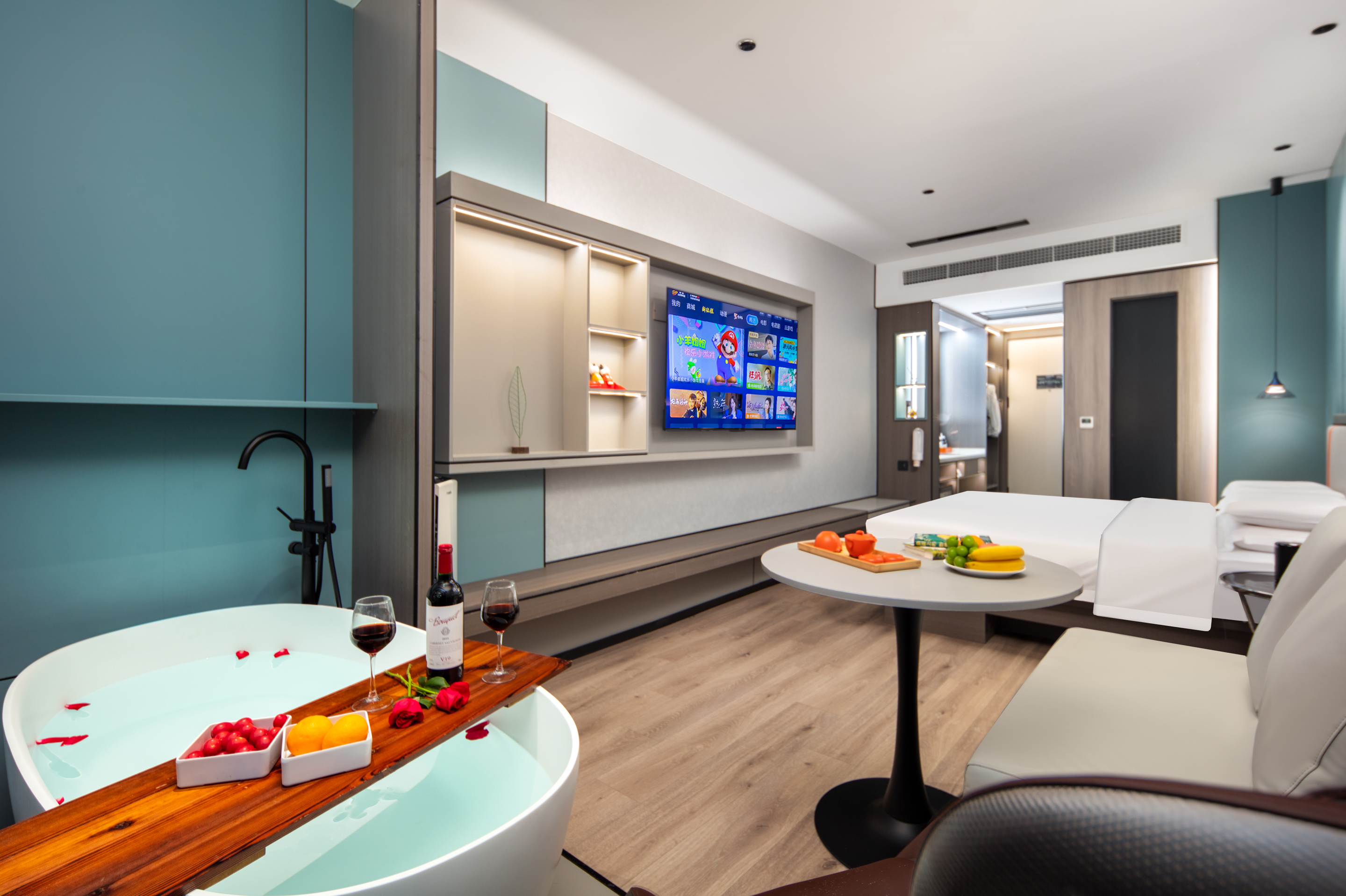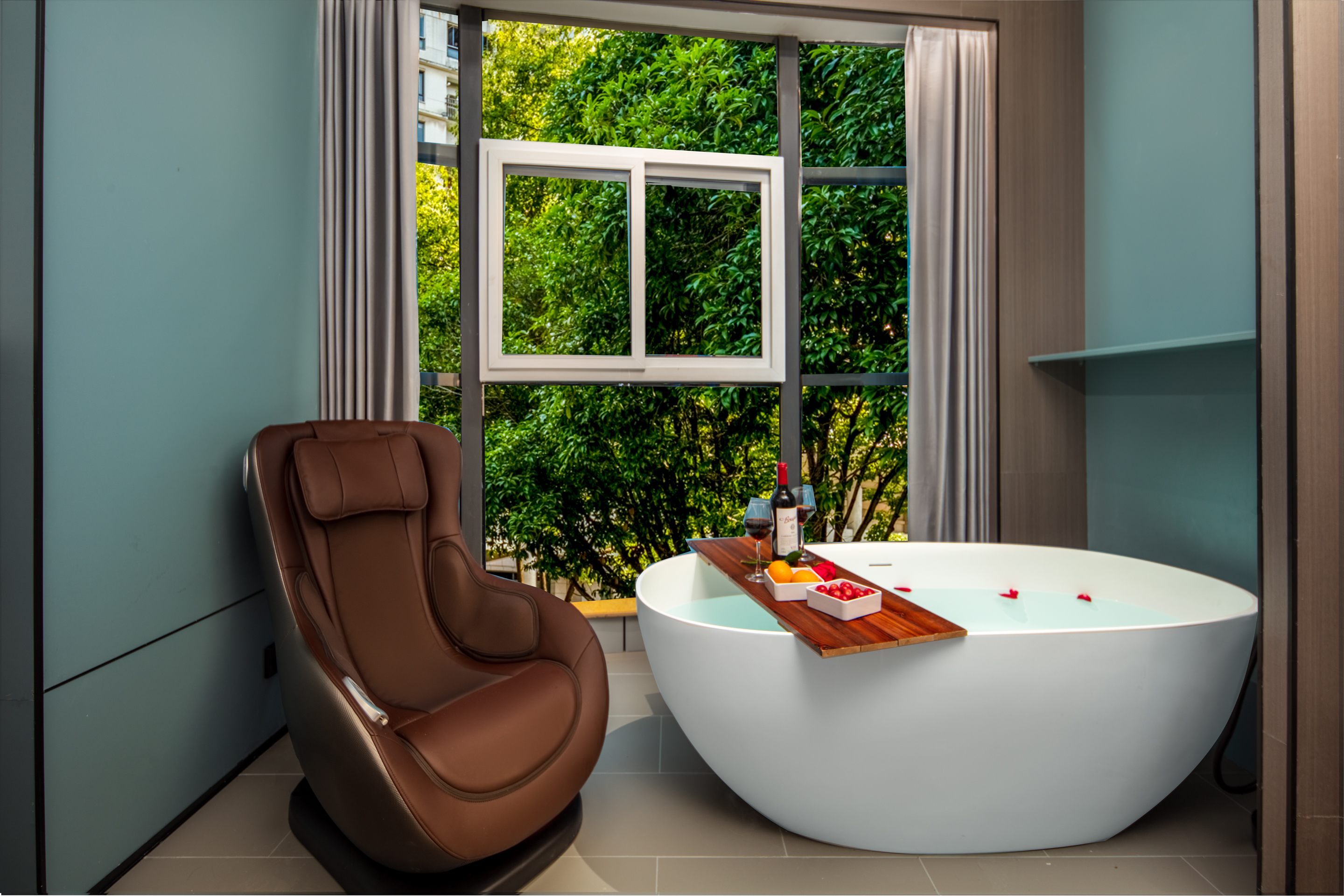 Private Hot Spring Double Bed Room With Mini Fridge, Tub, Massage Chair, And Voice Control