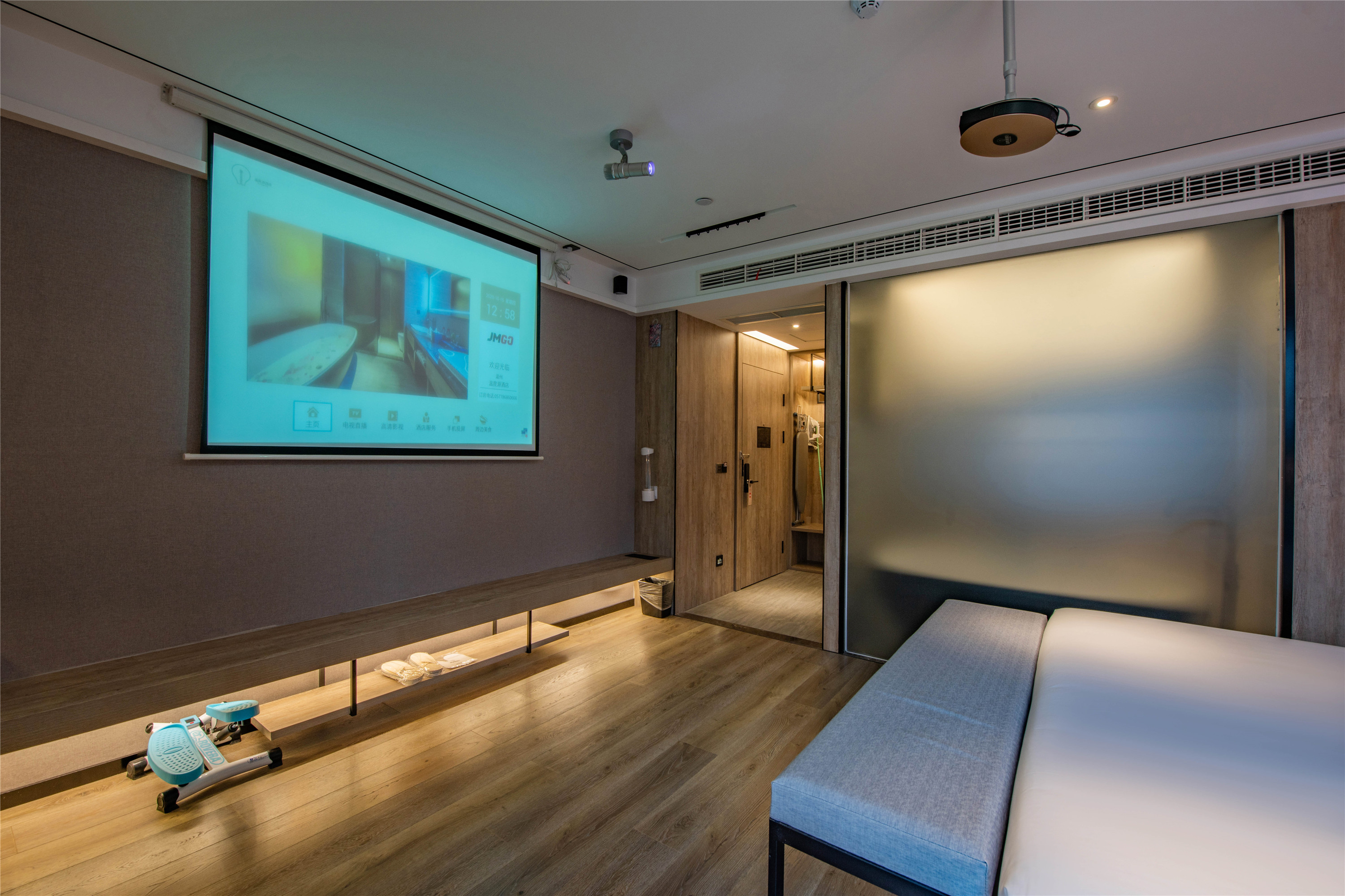 Cinema&Bath Enjoyment Double Bed Room With Mini Fridge, Tub, Latex Mattress, And Fresh Air System