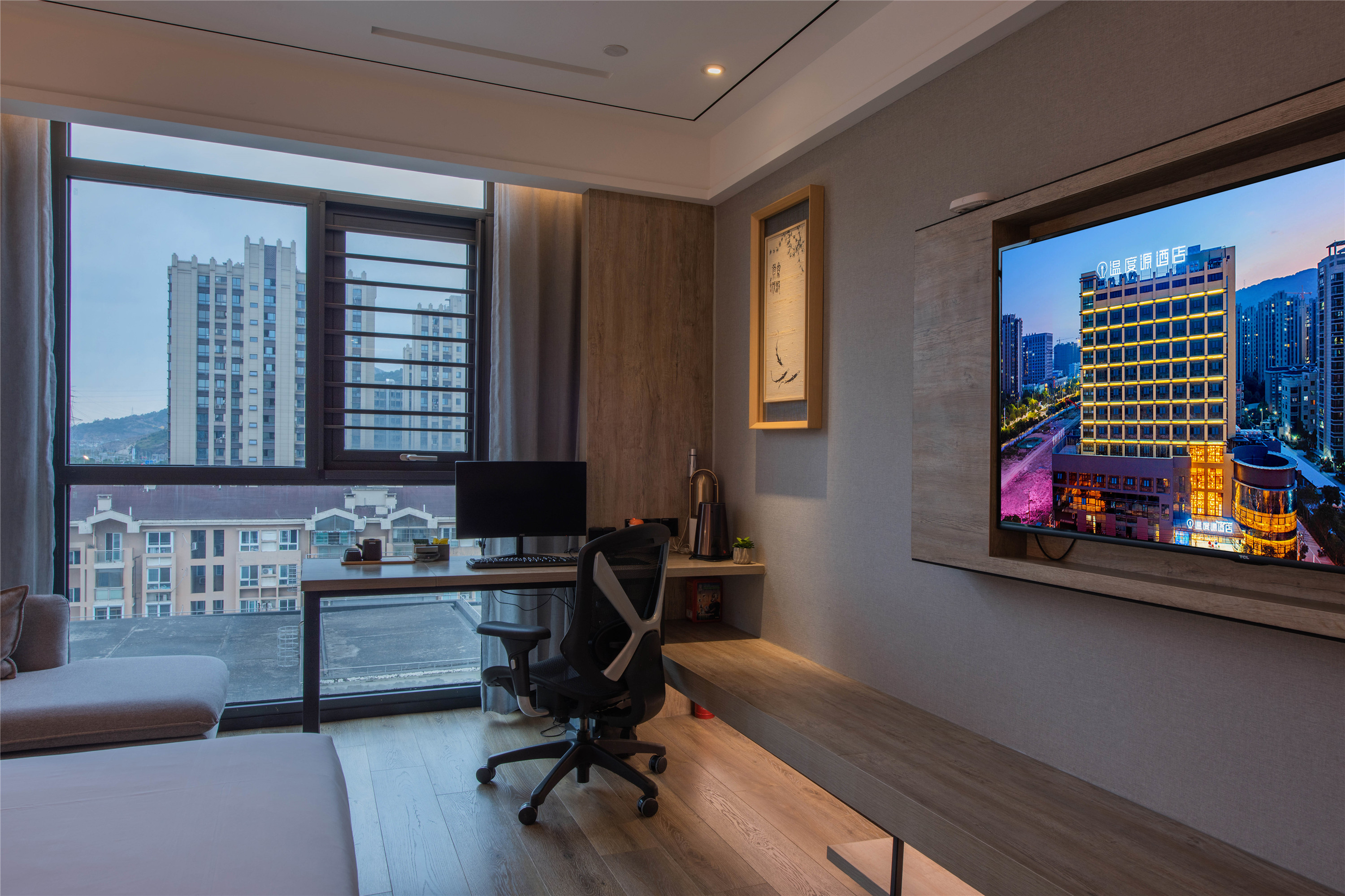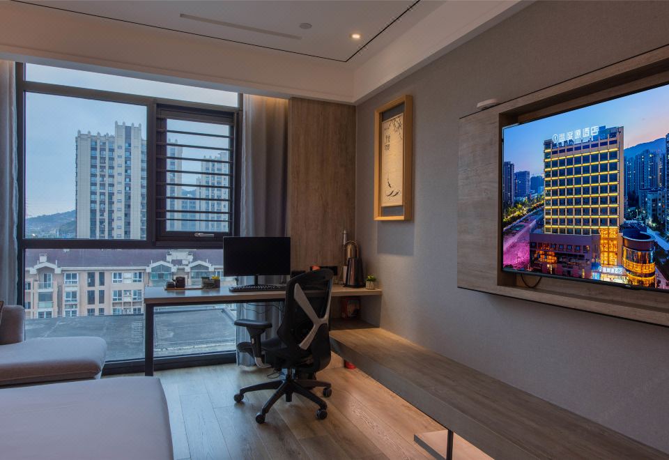 Computer Equipped Double Bed Room With Mini Fridge, Latex Mattress, And Fresh Air System