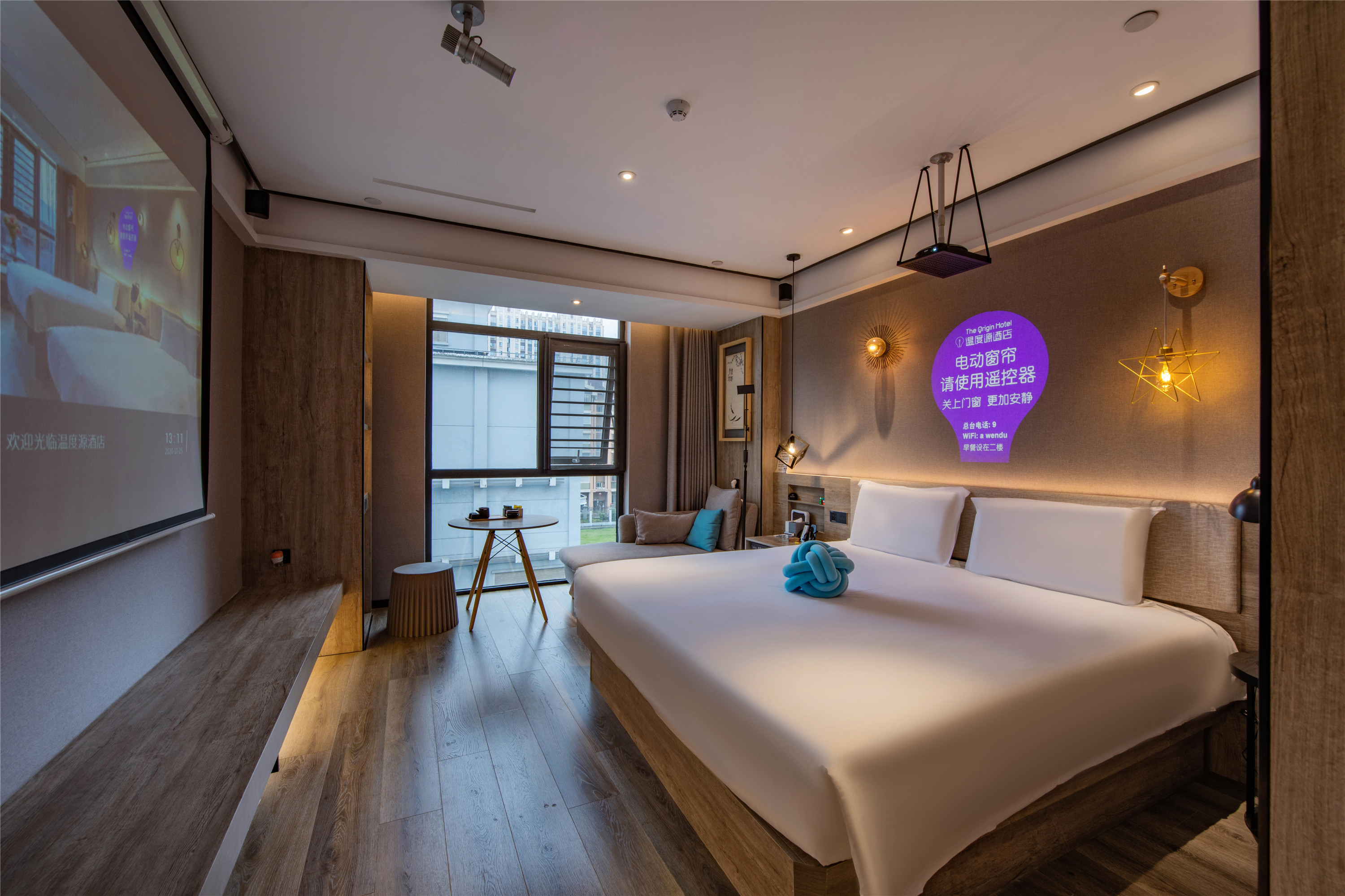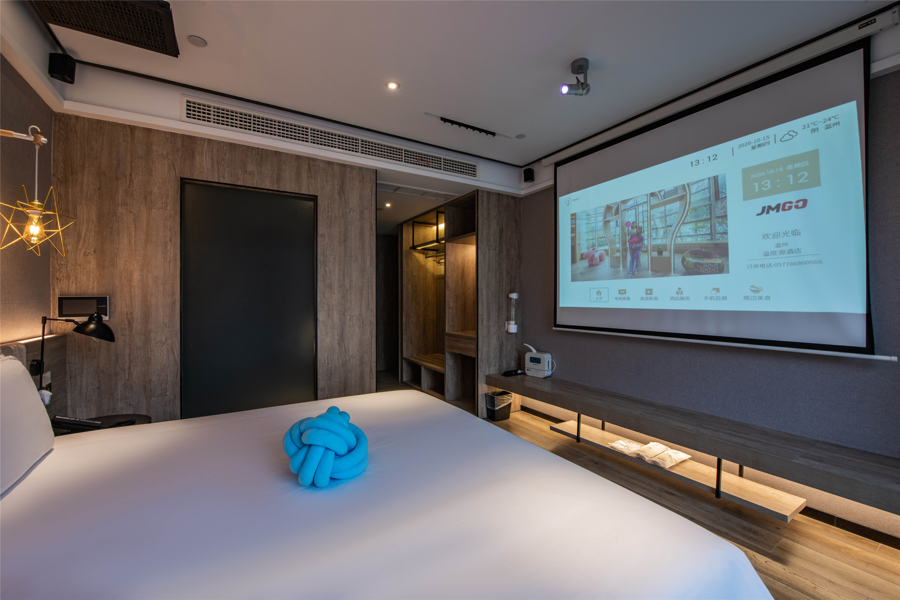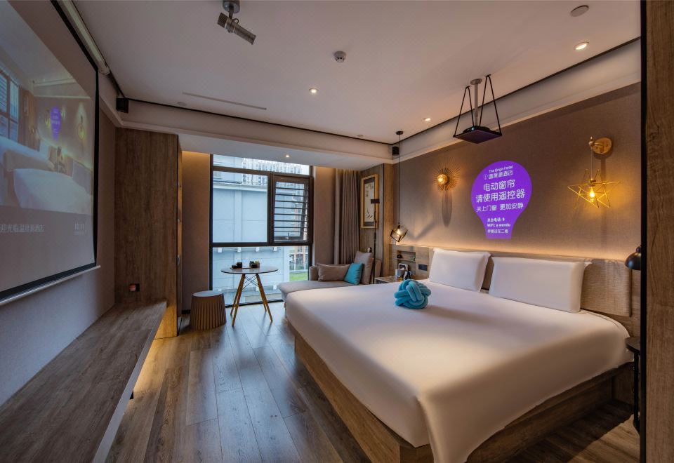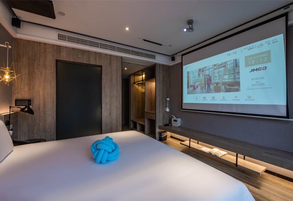 Private Cinema Double Bed Room With Mini Fridge, Latex Mattress, And Fresh Air System