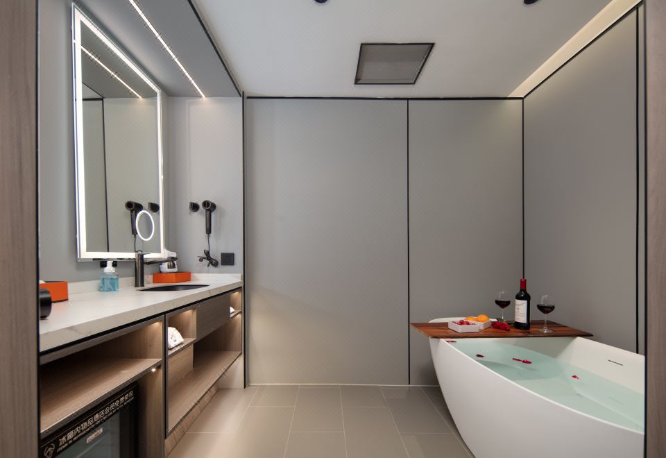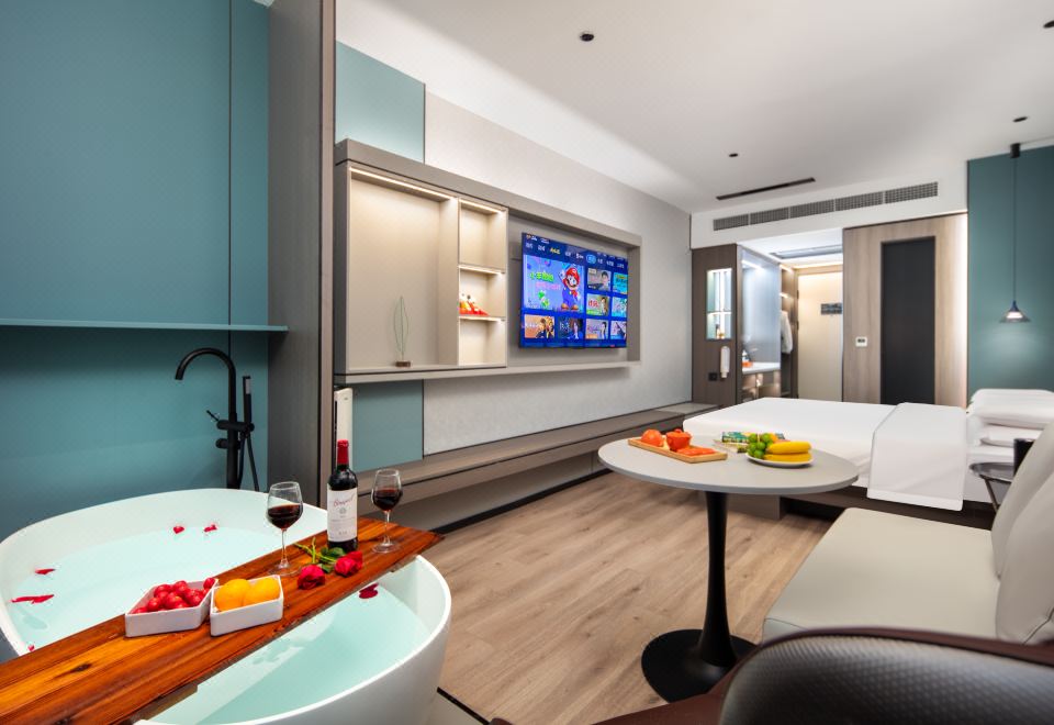 Private Hot Spring Double Bed Room With Mini Fridge, Tub, Massage Chair, And Voice Control