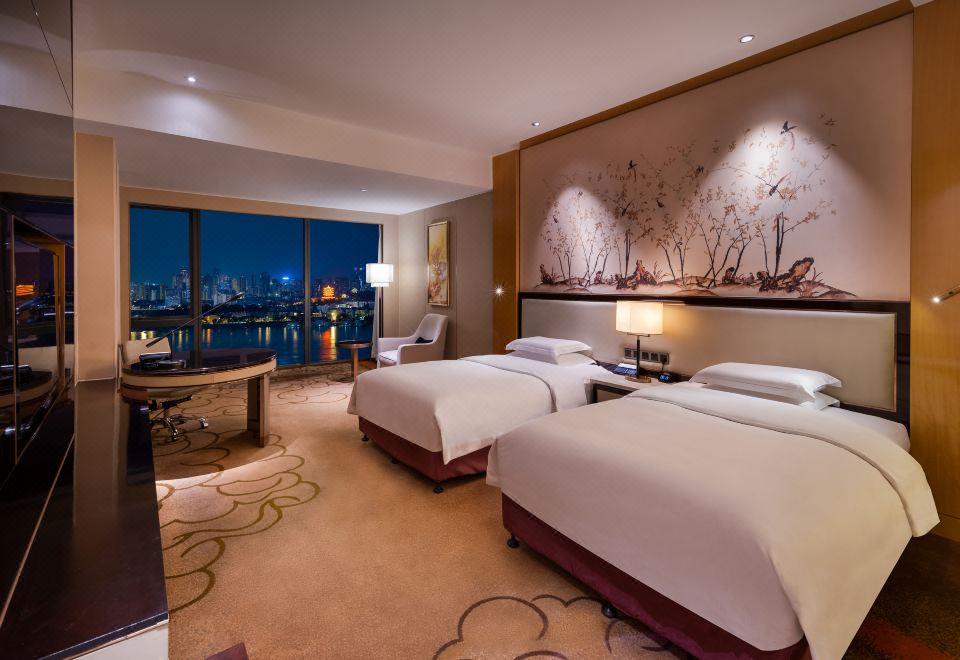 豪华双床房【高空落地窗-俯瞰都市霓虹流转】
