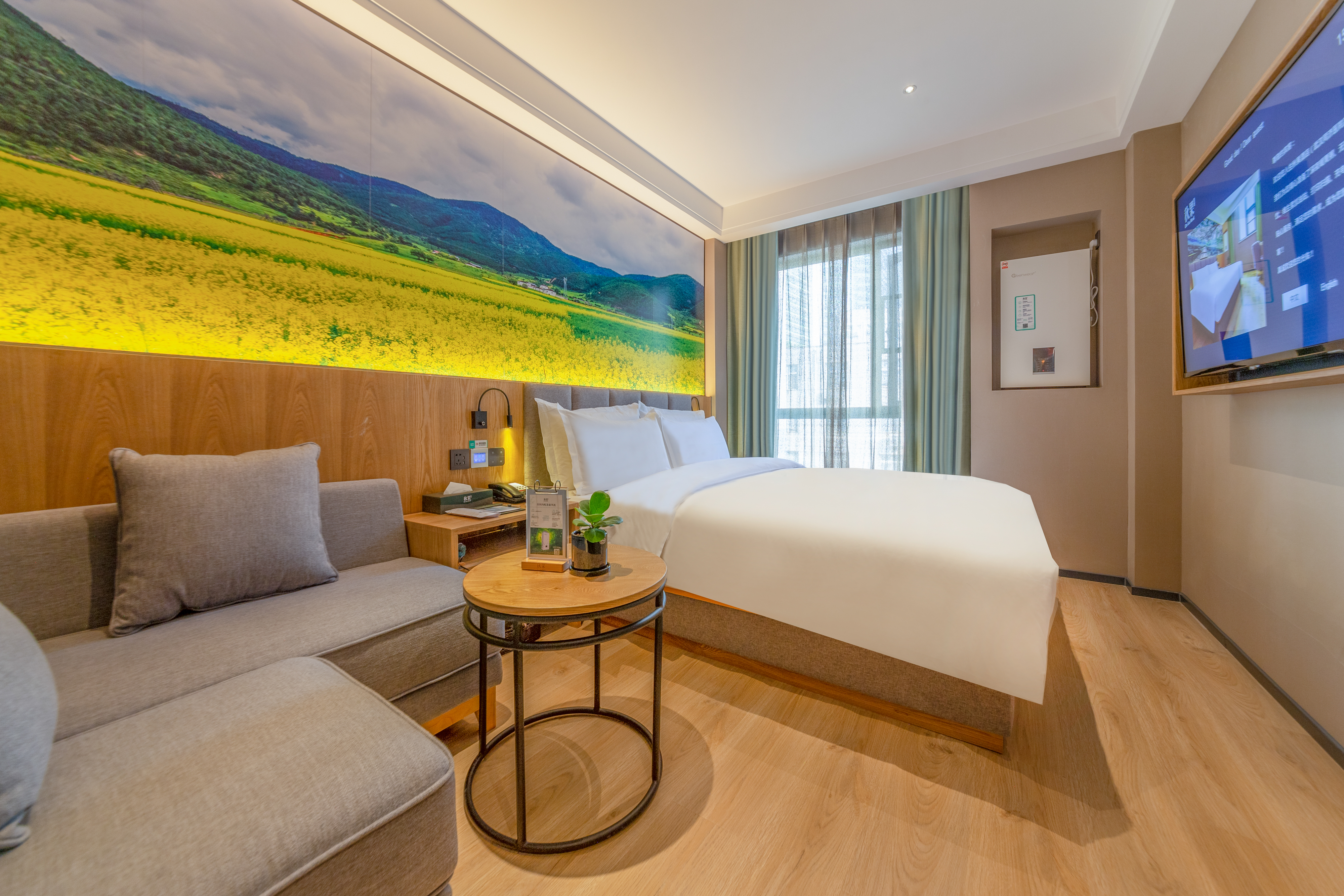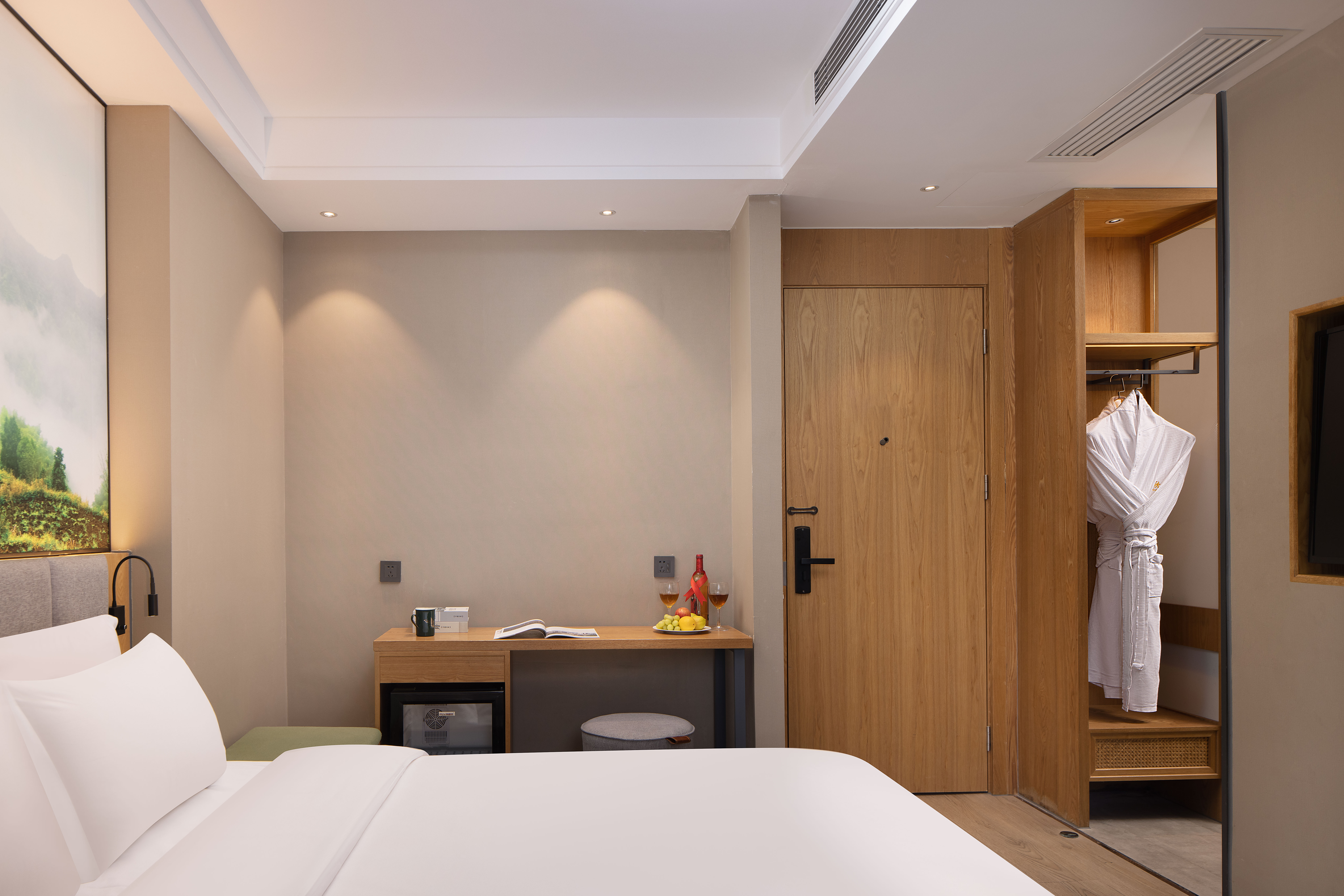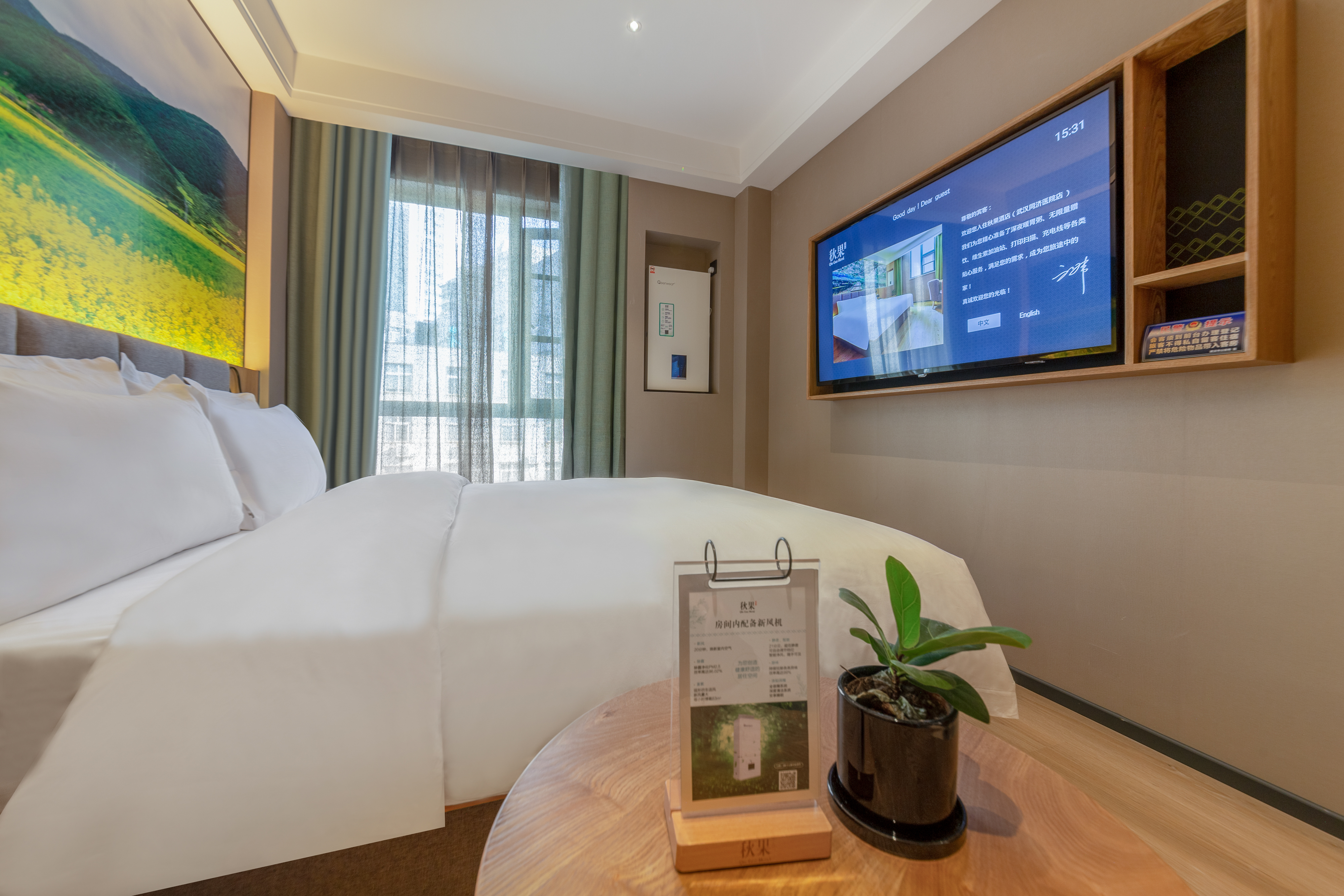 Bright Fresh Double Bed Room (Latex Mattress, Mini Refrigerator, Independent Fresh Air System)