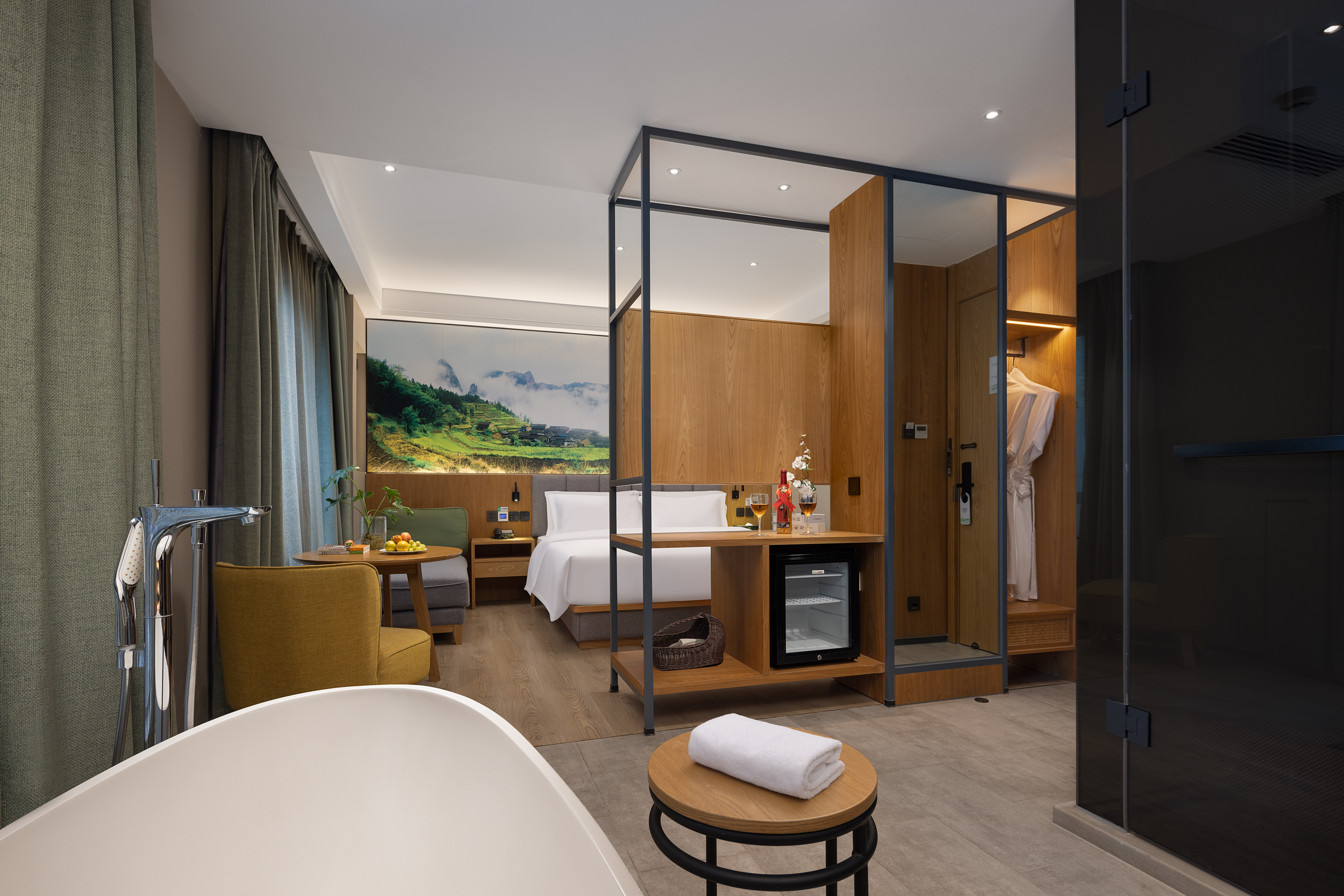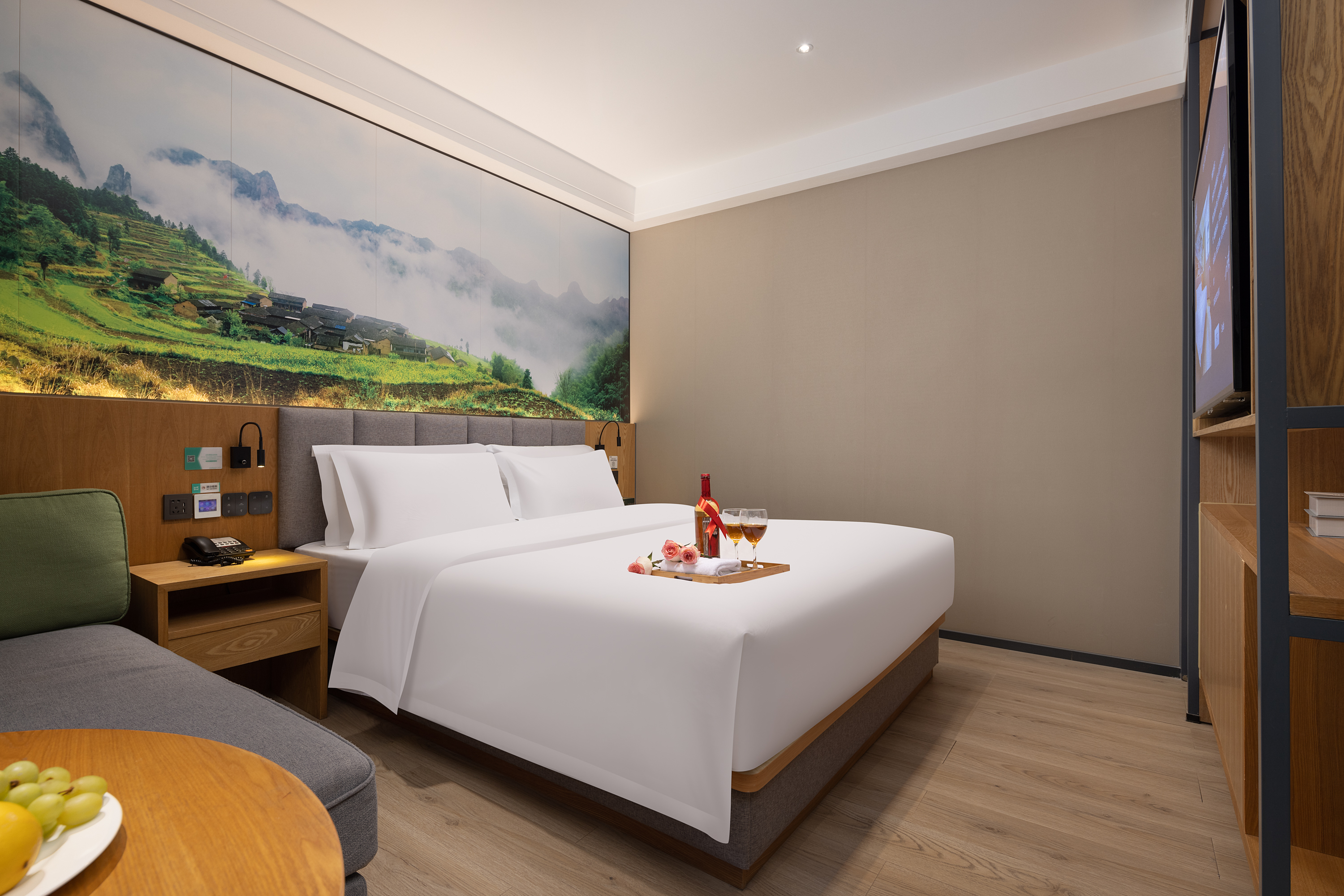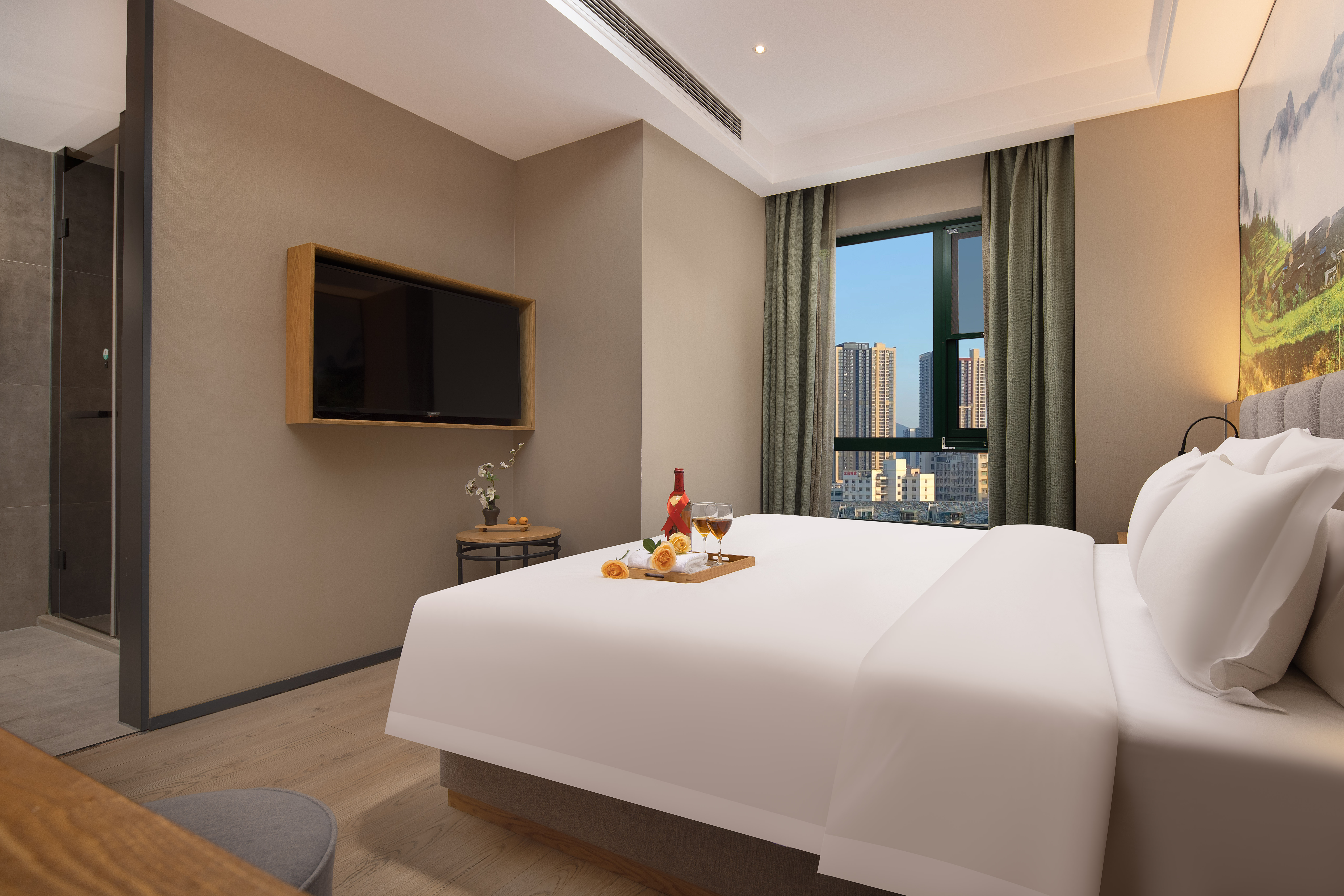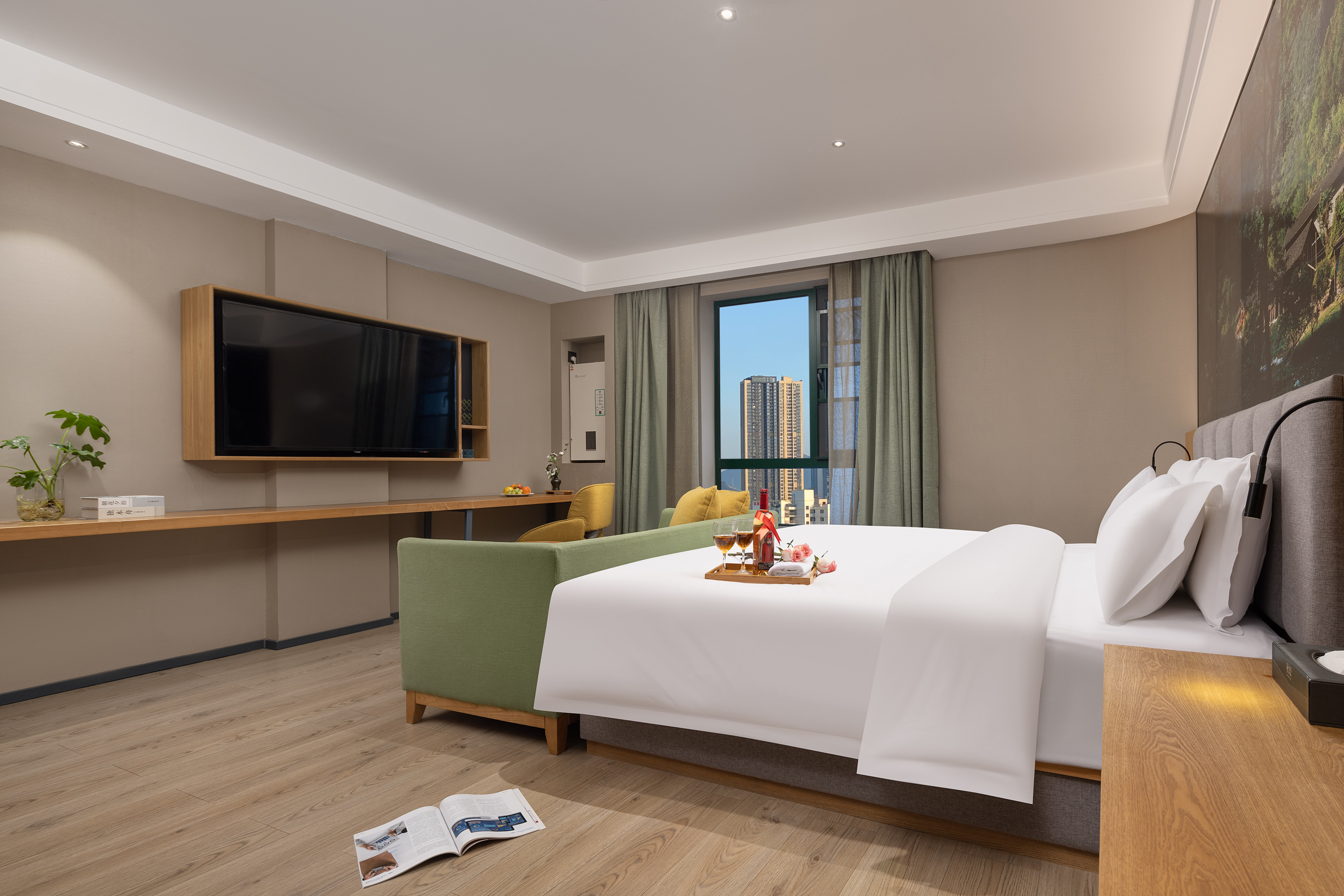 Bright Fresh Double Bed Room (Latex Mattress, Mini Refrigerator, Independent Fresh Air System)