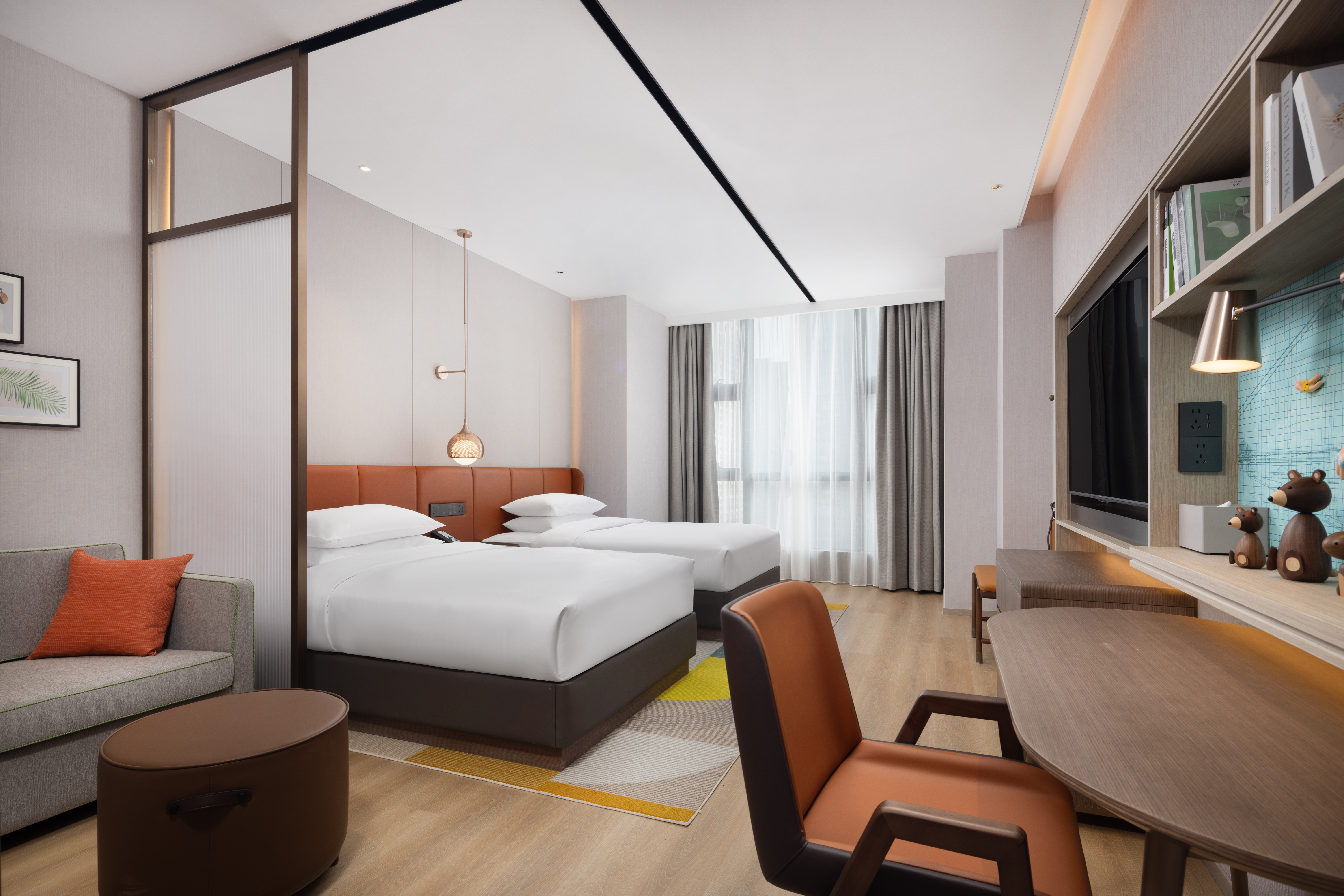 Lingdong Deluxe Double Bed Room (Scenic Balcony + Family Sofa Bed + Capsule Coffee Machine + Dual-Function Refrigerator)