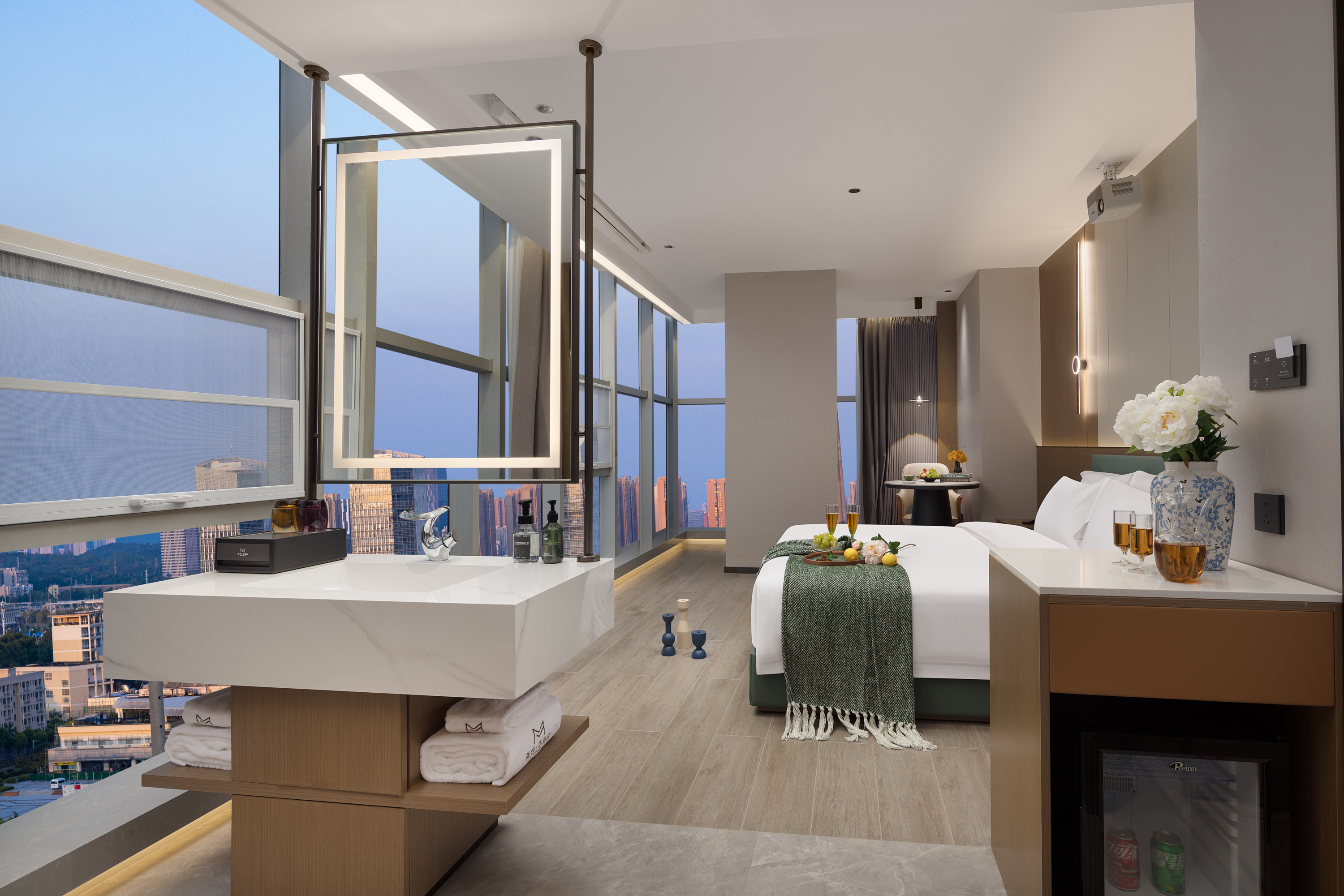 Tranquil 270 ° Panoramic Projector Double Bed Room With 270 ° Sunset Glow And 100-Inch Screen