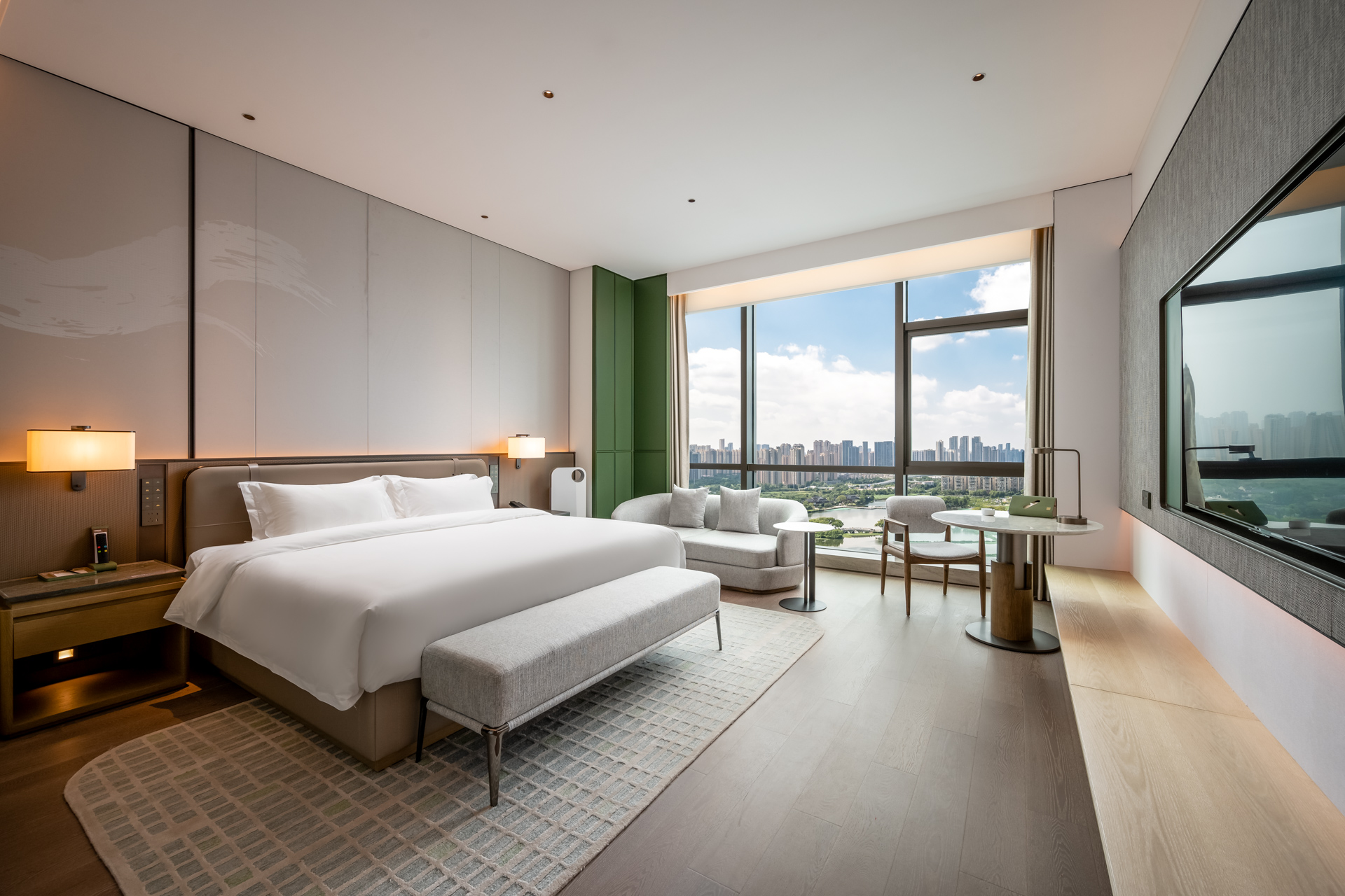 Scenery City-View Double Bed Room (Zero Pressure Mattress + Air Purifier + Mini Fridge)