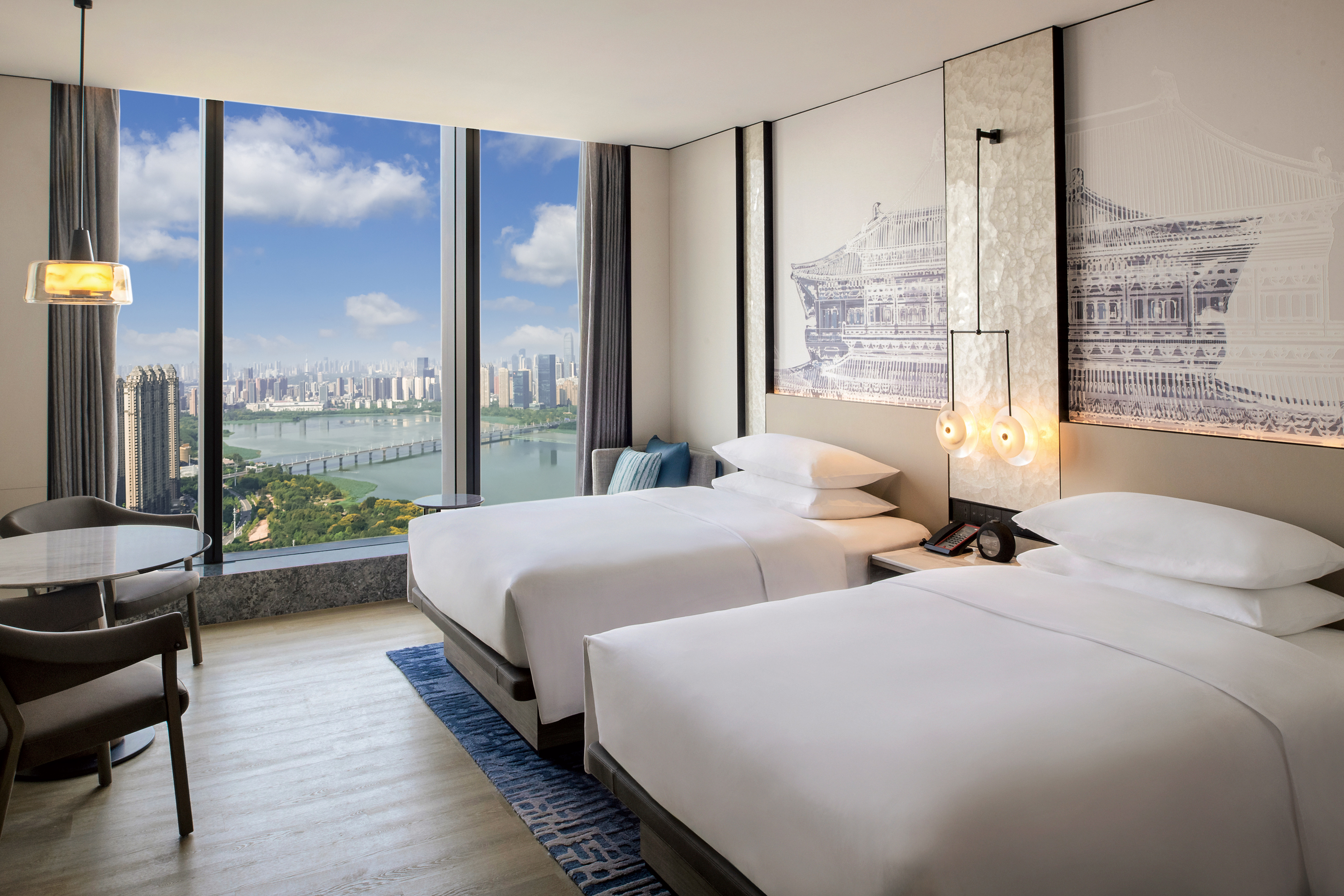 行政沙湖景双床房「落日低霞一幕天」
