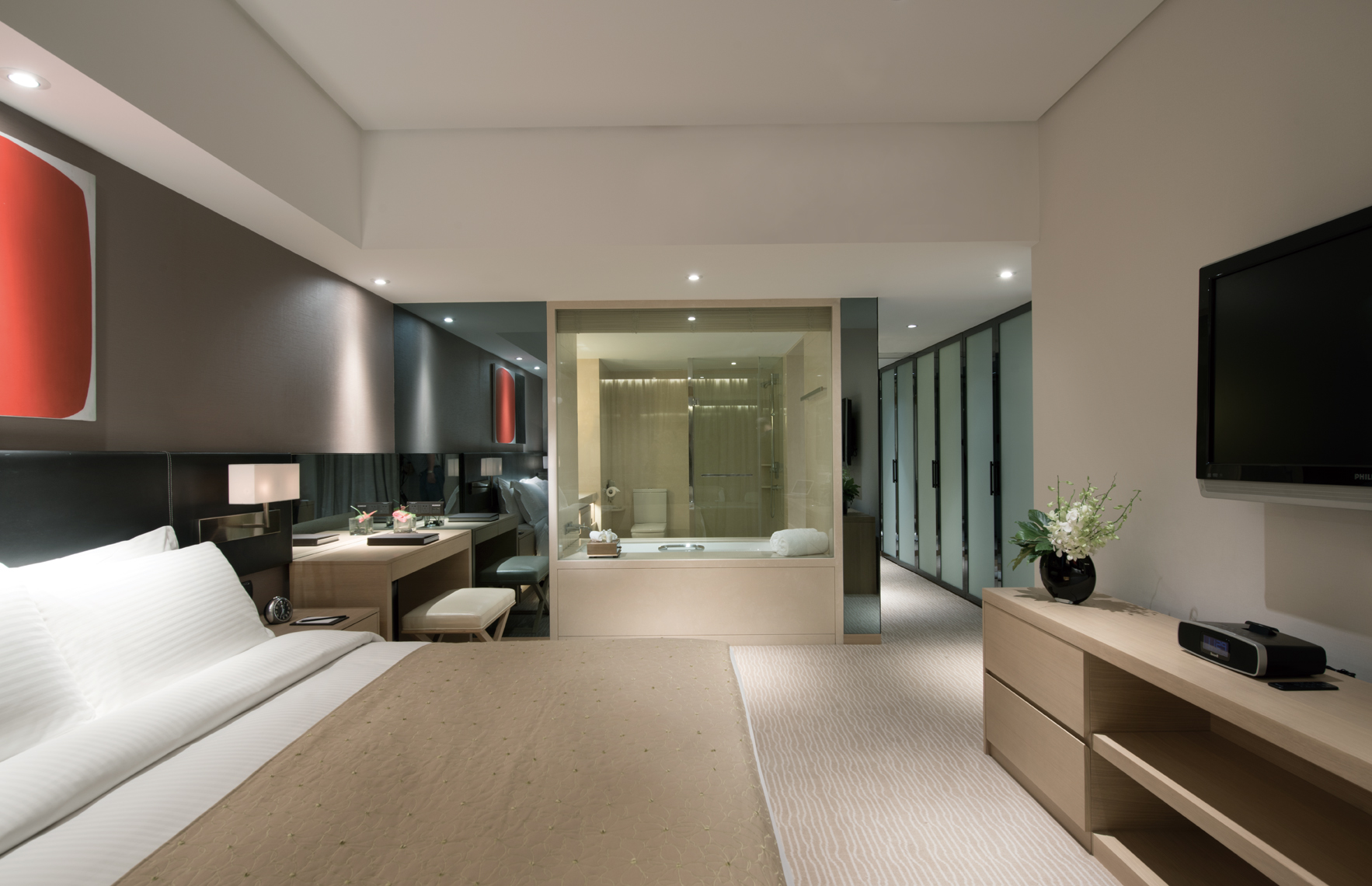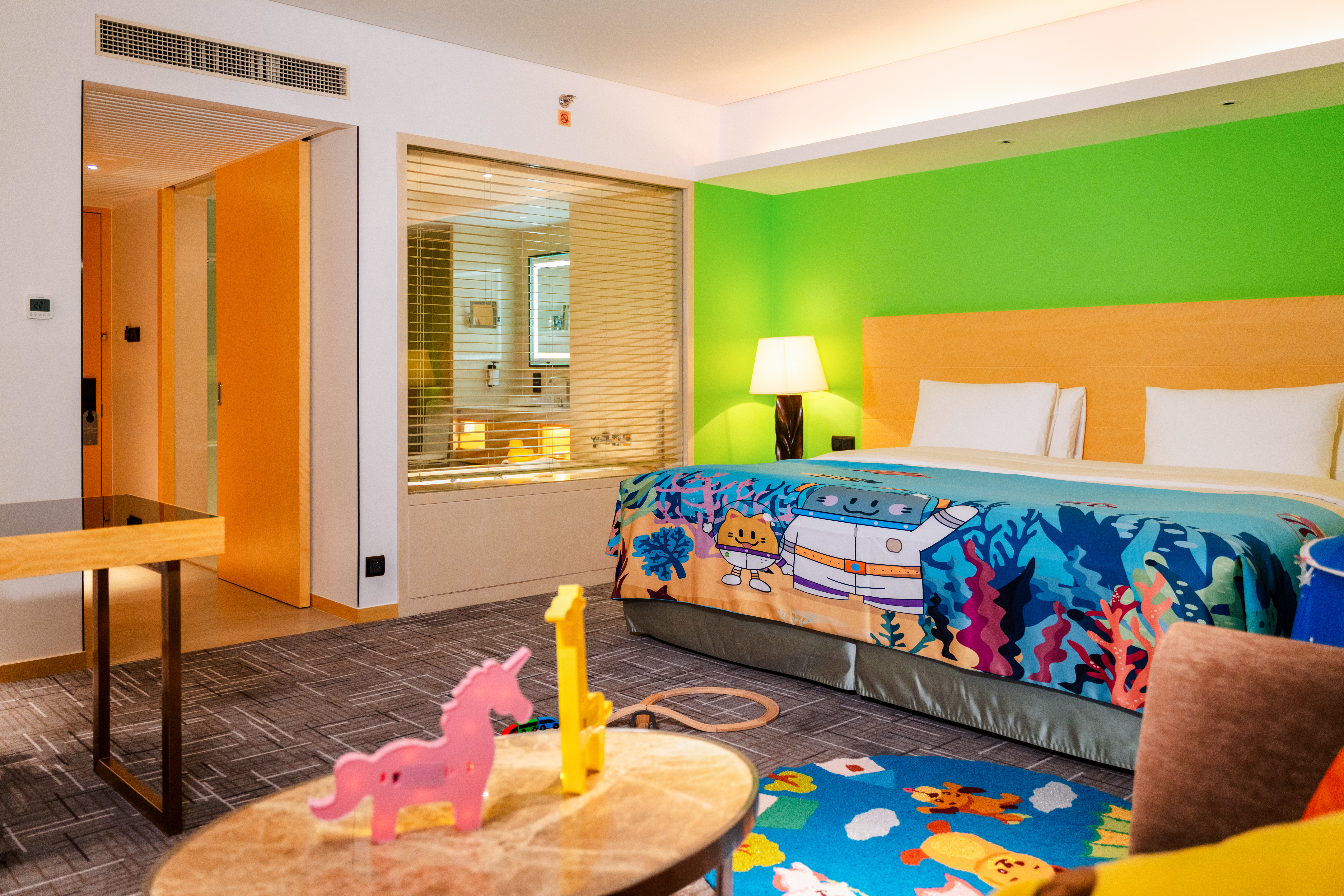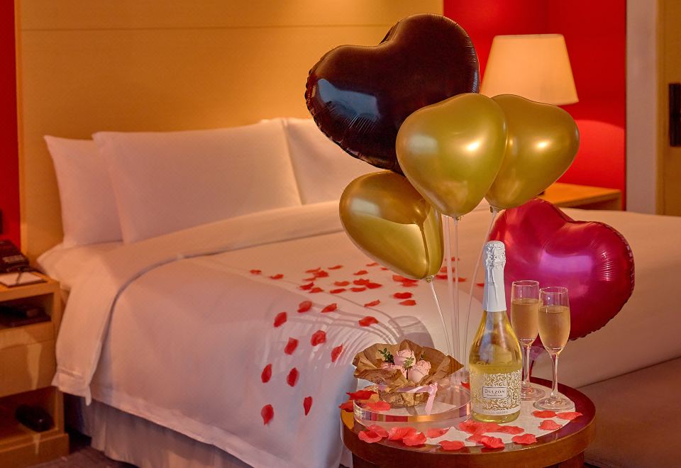 浪漫布置270度尊贵江景客房丨卧室及浴室享一线江景