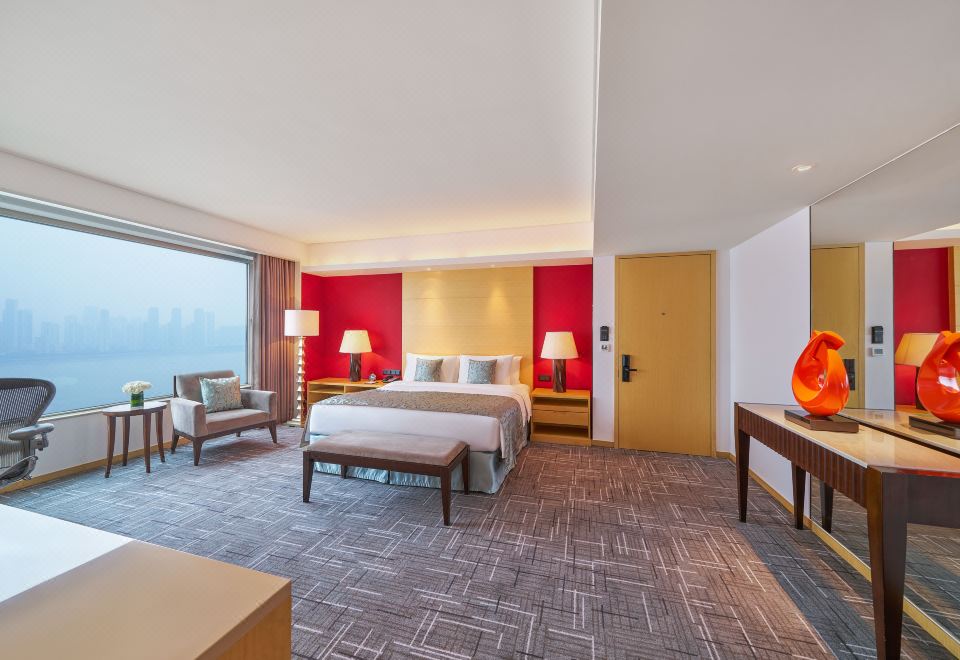 浪漫布置270度尊贵江景客房丨卧室及浴室享一线江景