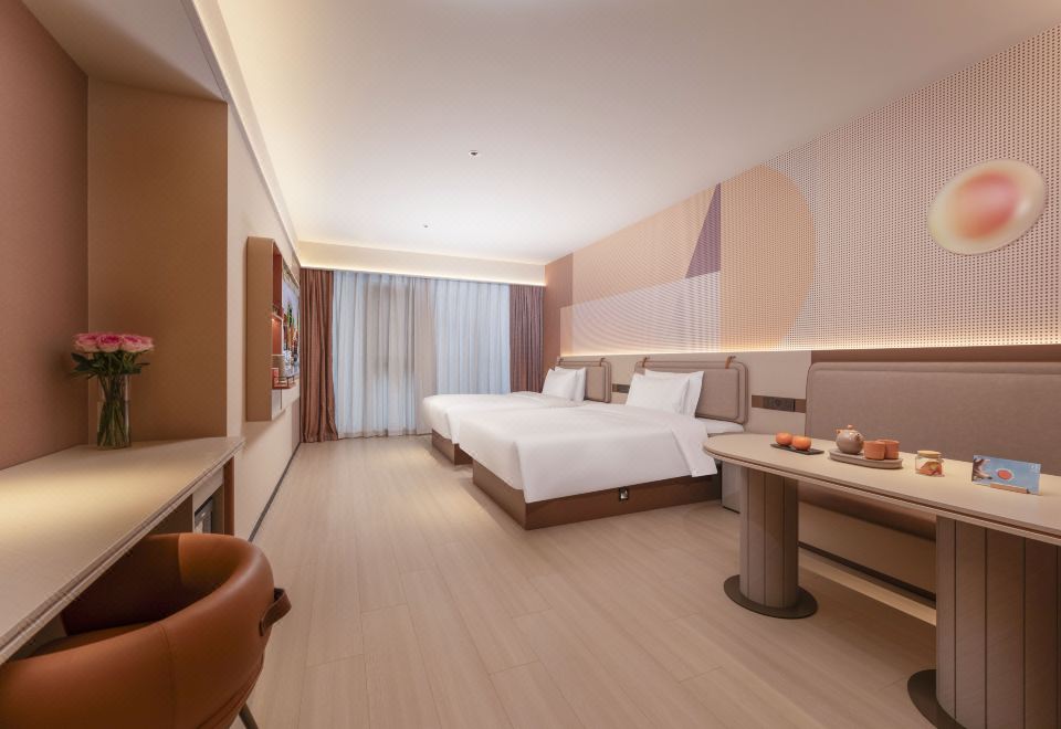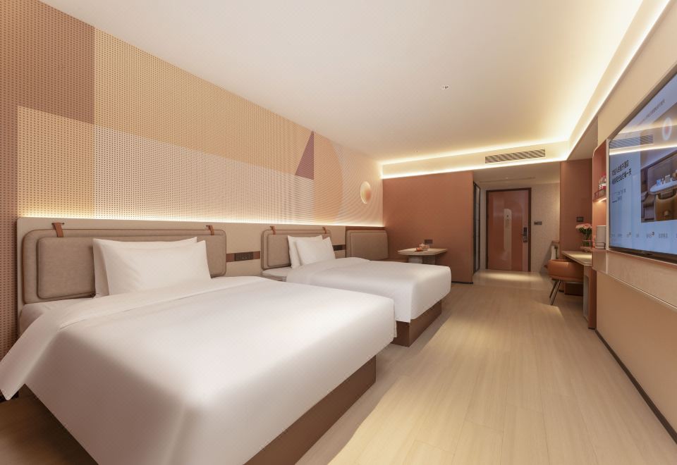 高級雙床房[朝陽落地窗+65寸投屏電視+金可兒床墊]