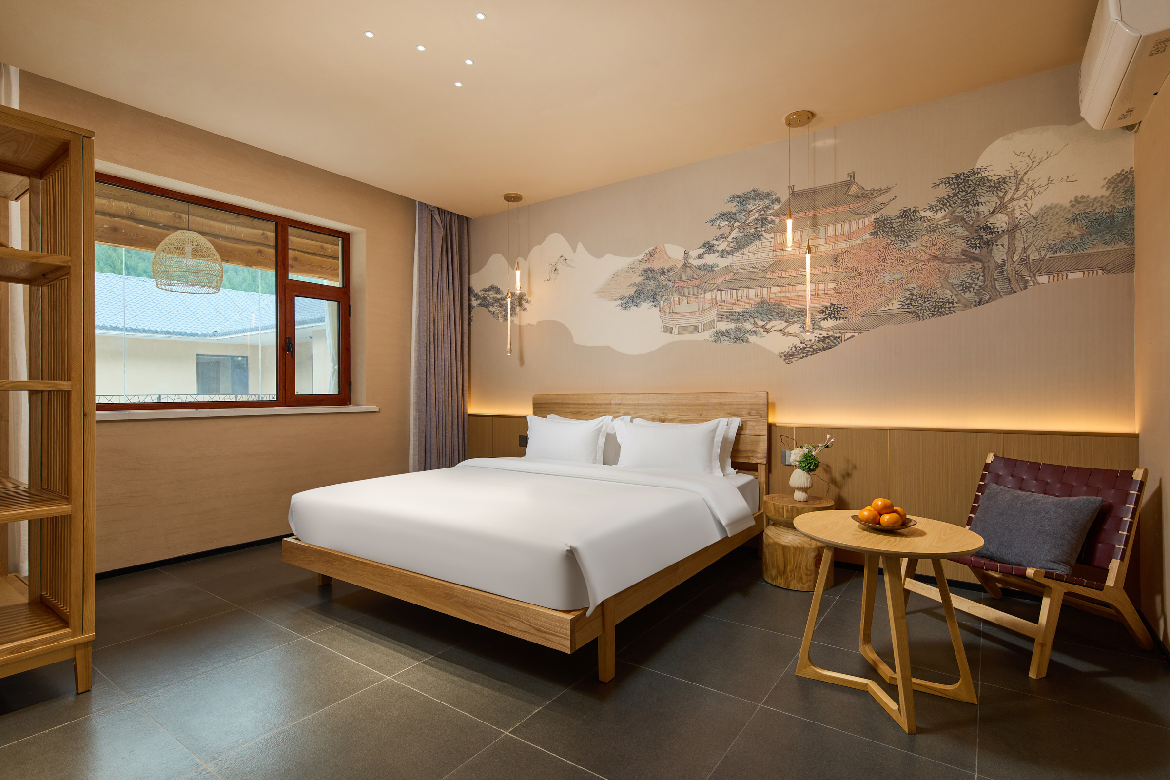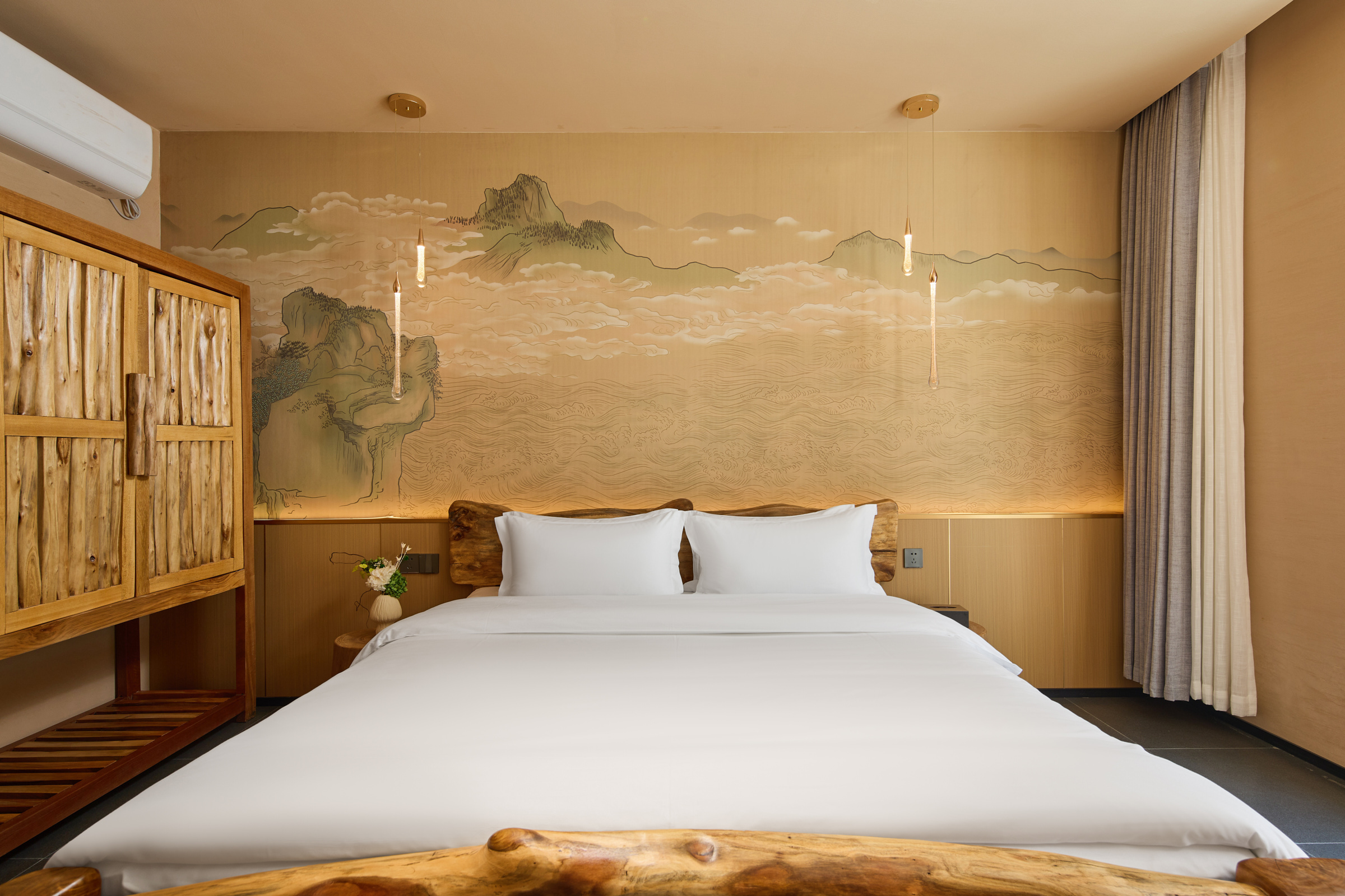 智舍·空中楼阁大床(大视野观景阳台+地暖+空调+实木定制家俱)