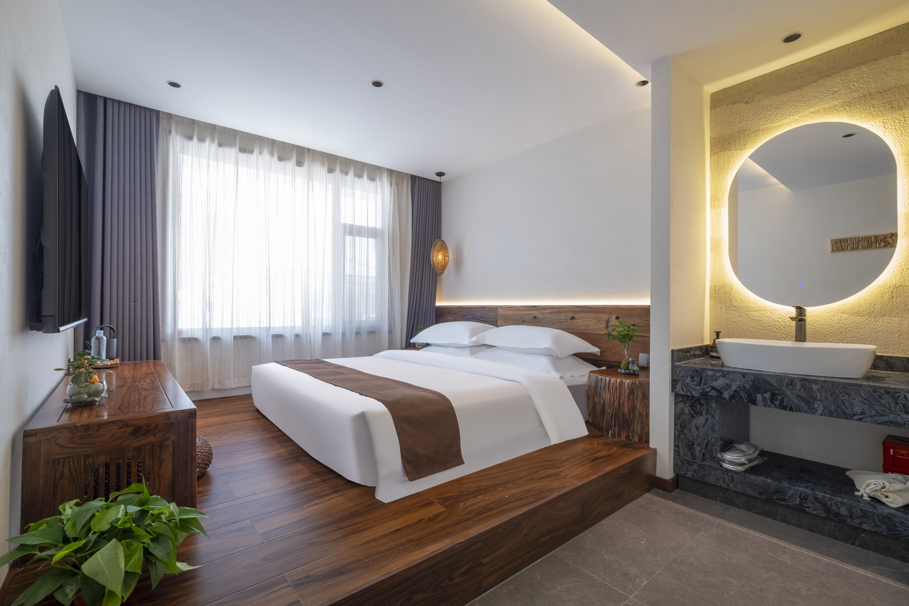 舒适?禅意阳光大床房【地暖+防潮羽绒被芯+零压深睡床垫+亲肤长绒高支床品+智能马桶】