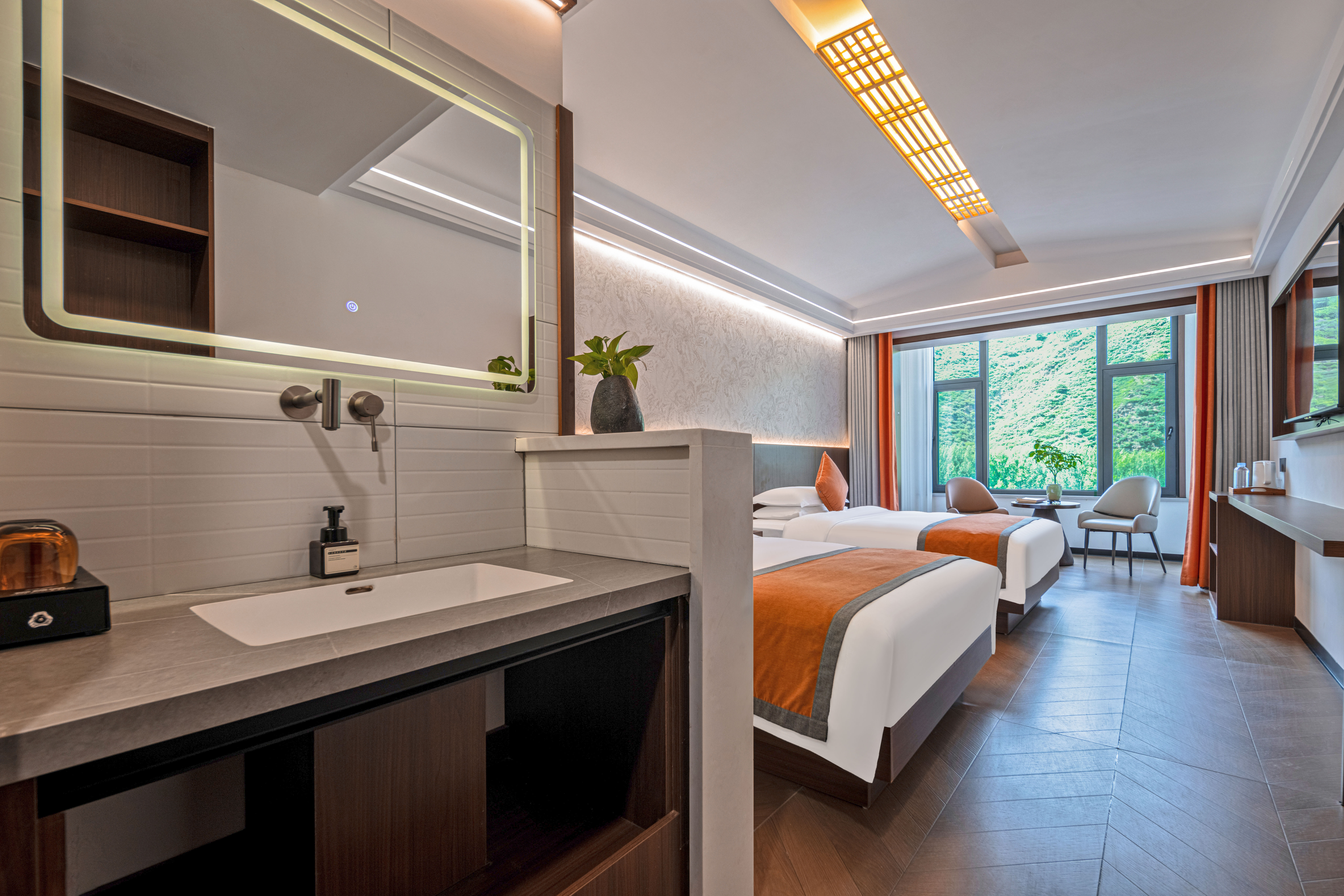 静谧山景双床房+安心好眠床品+零压床垫+禅意山景