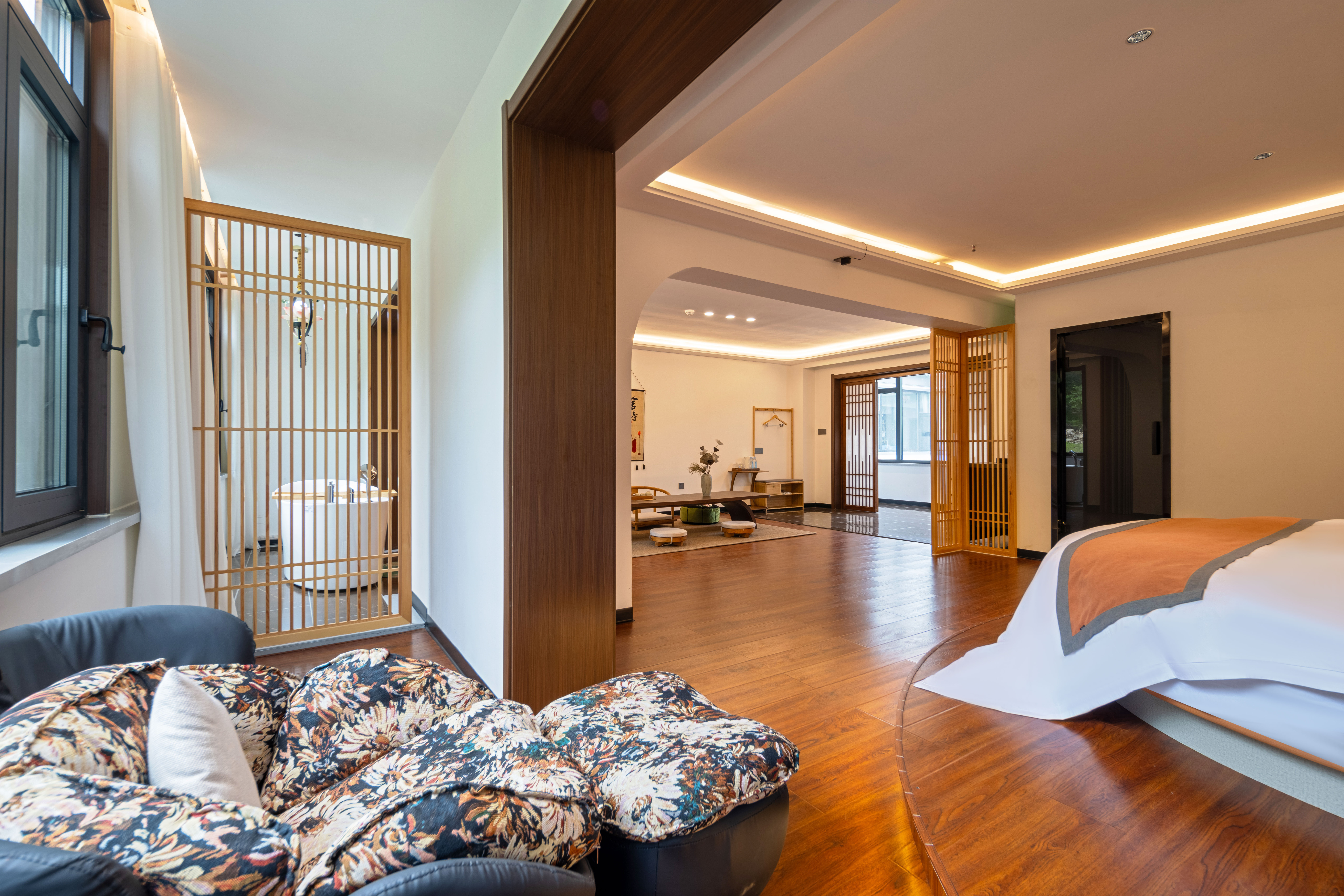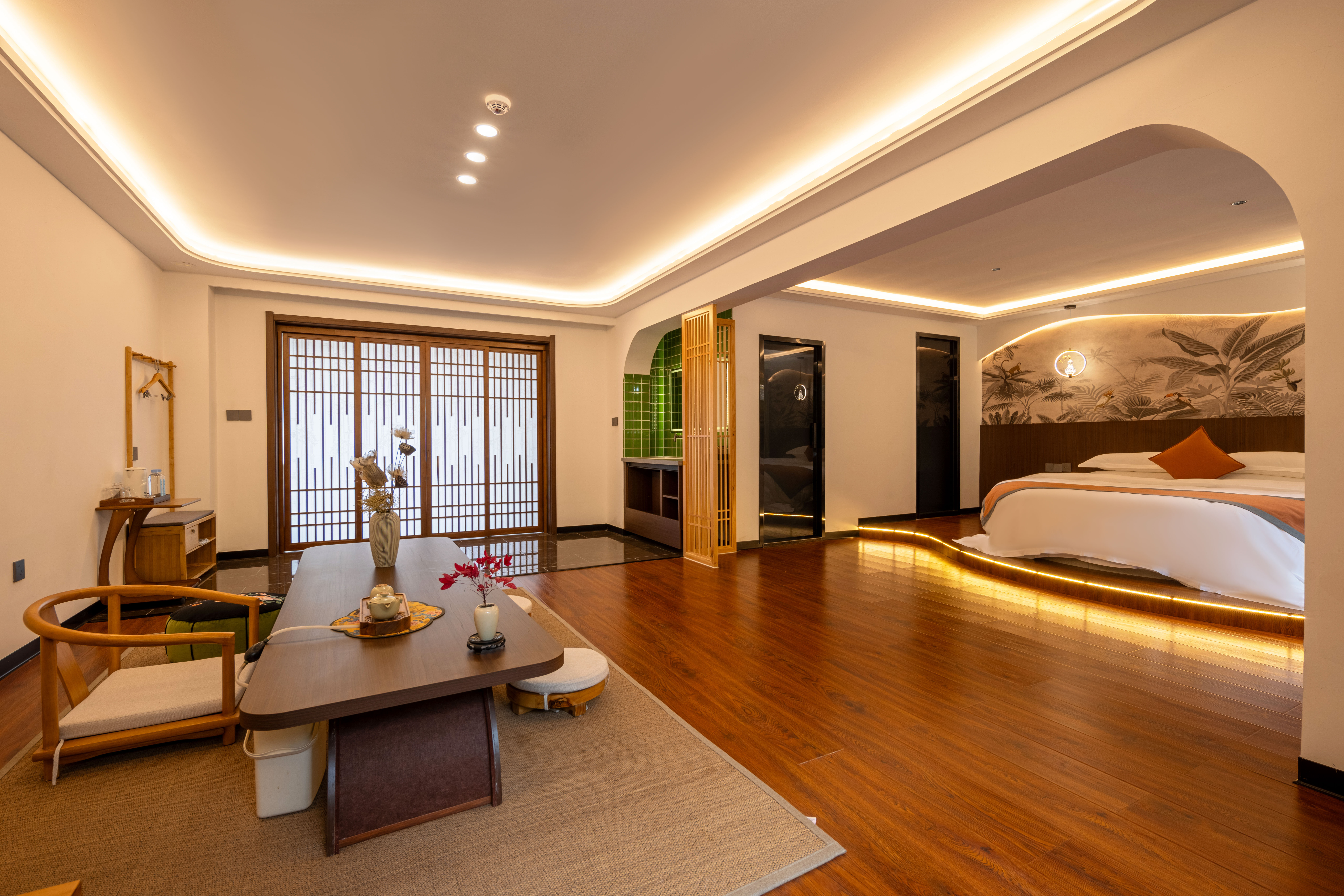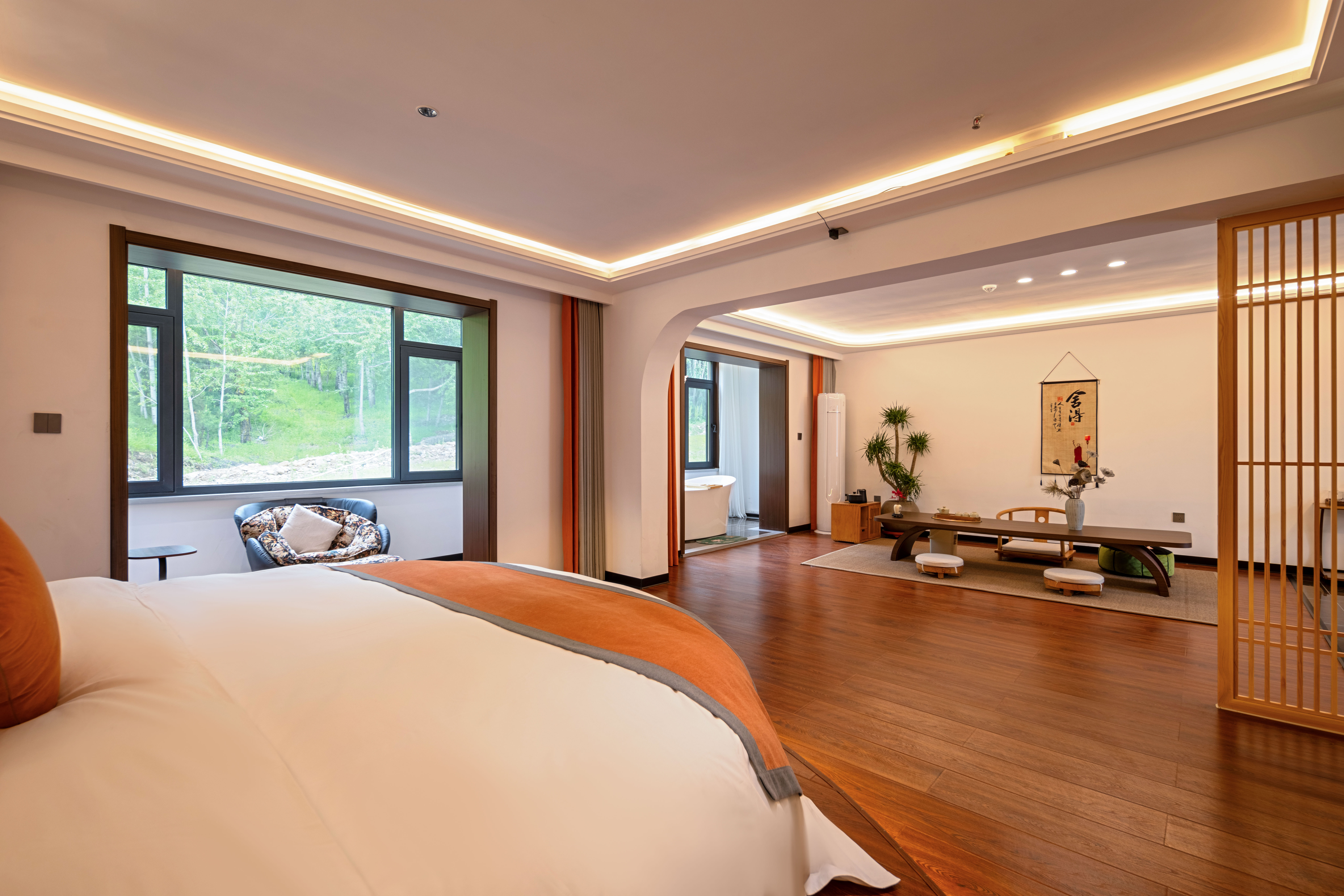 般若圆床套房+禅意茶桌+氛围浴缸+安心好眠+零压床垫