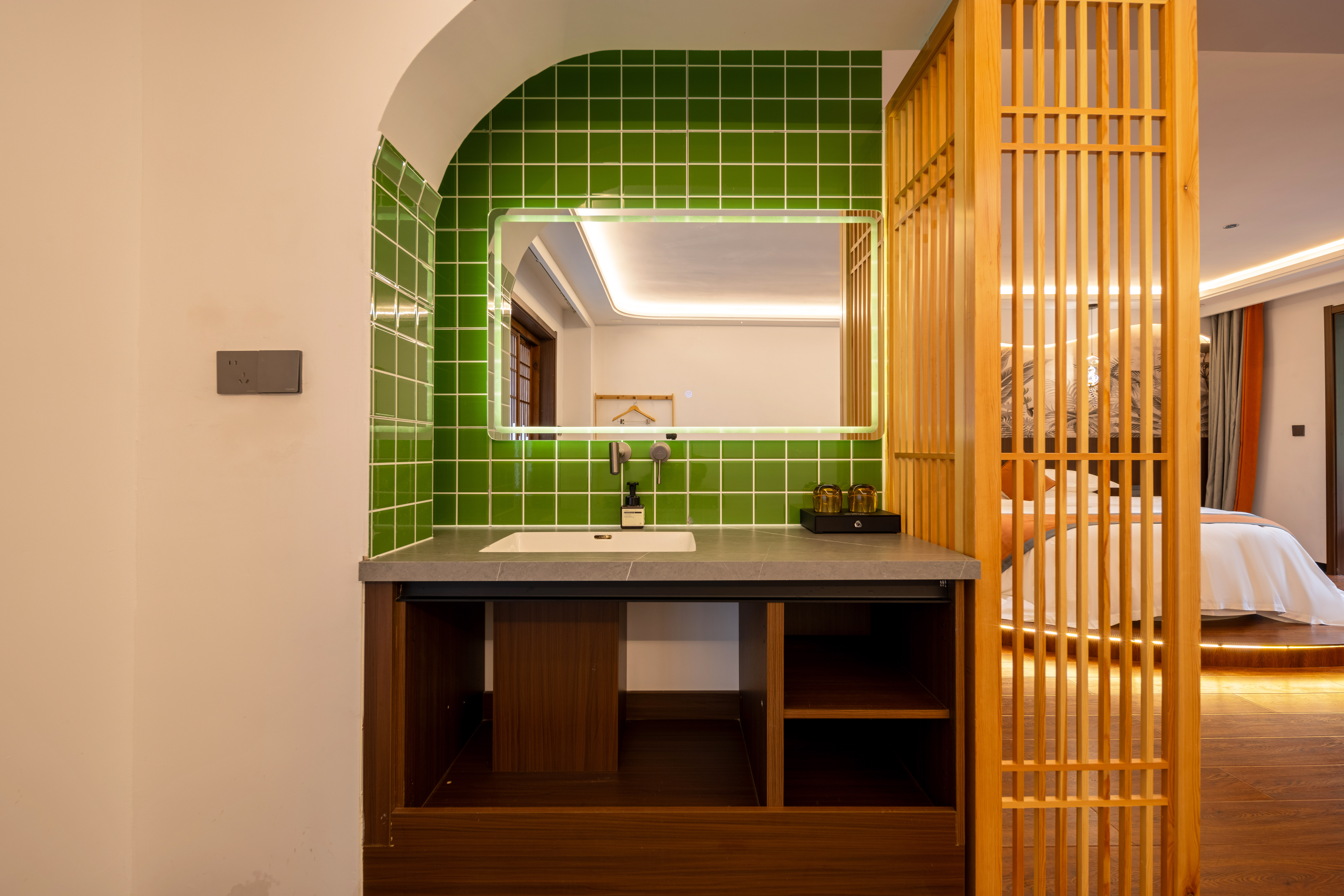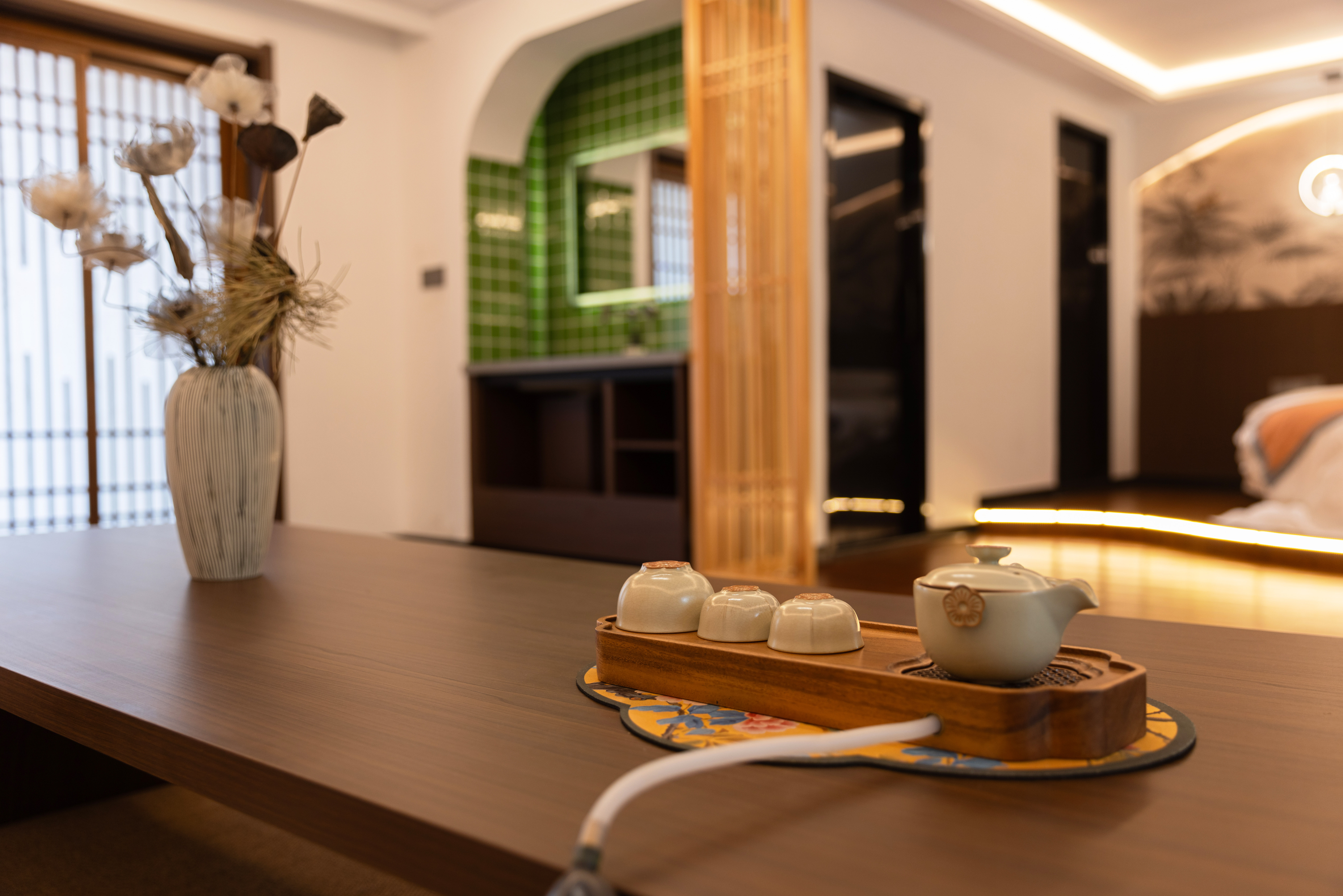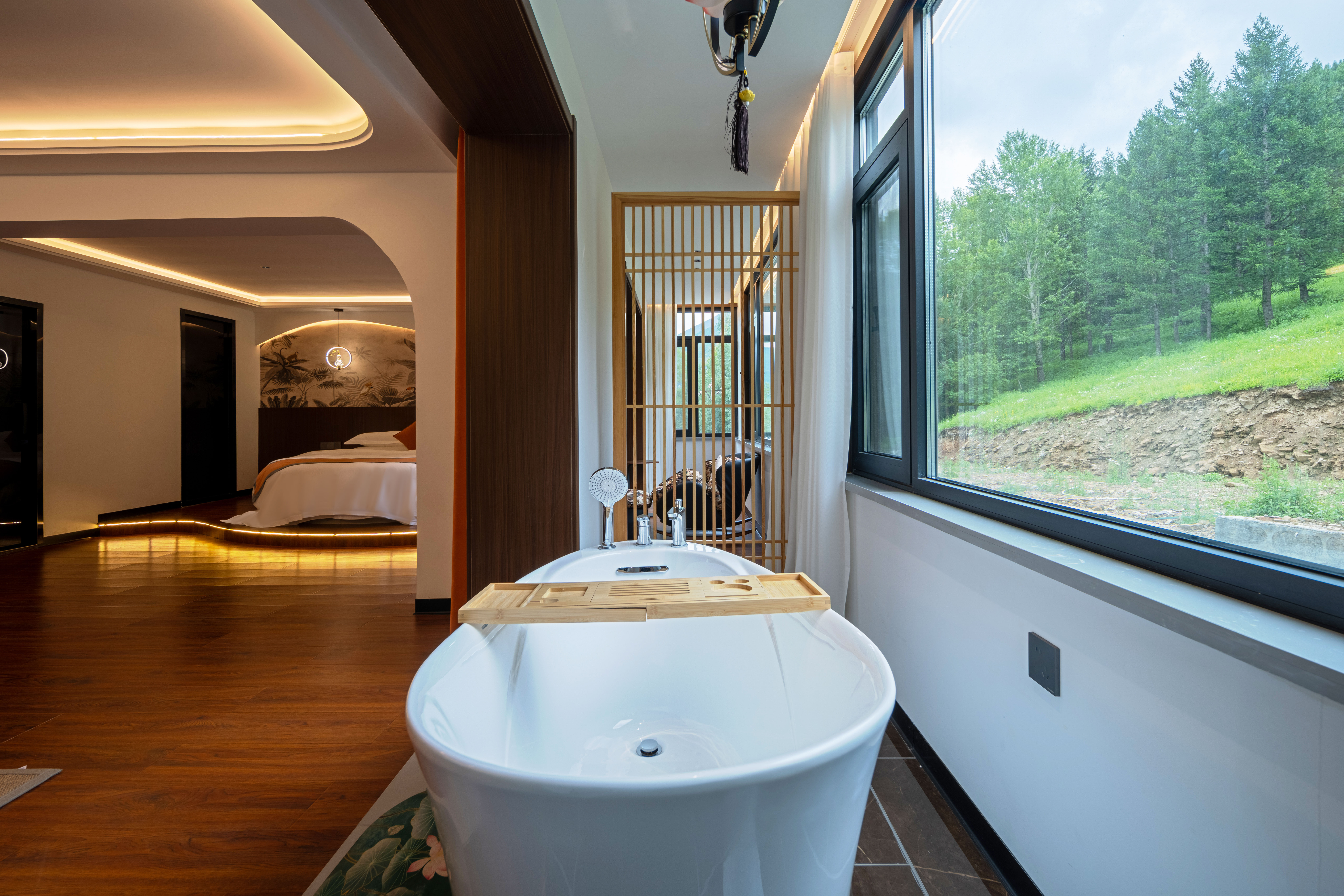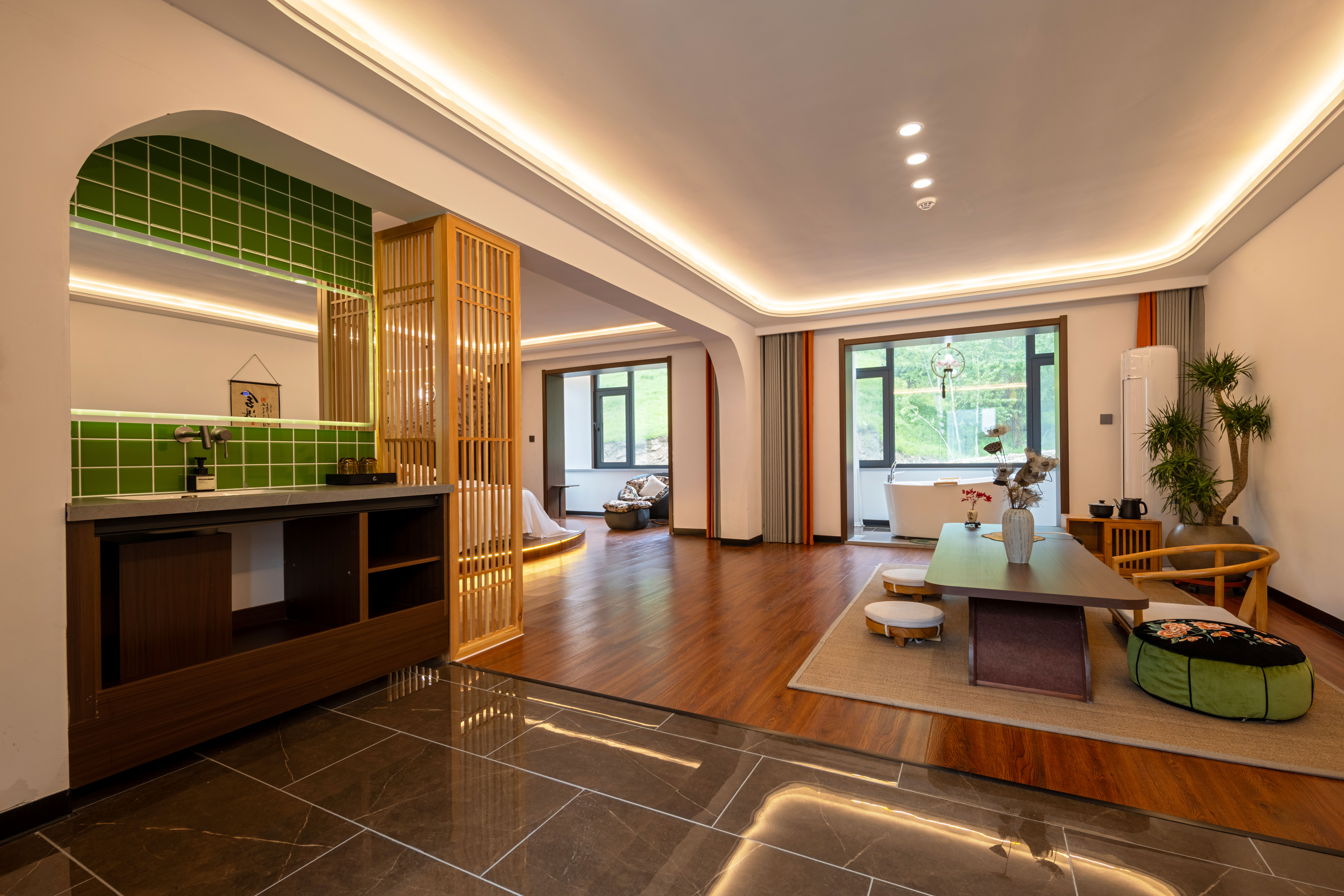 般若圆床套房+禅意茶桌+氛围浴缸+安心好眠+零压床垫
