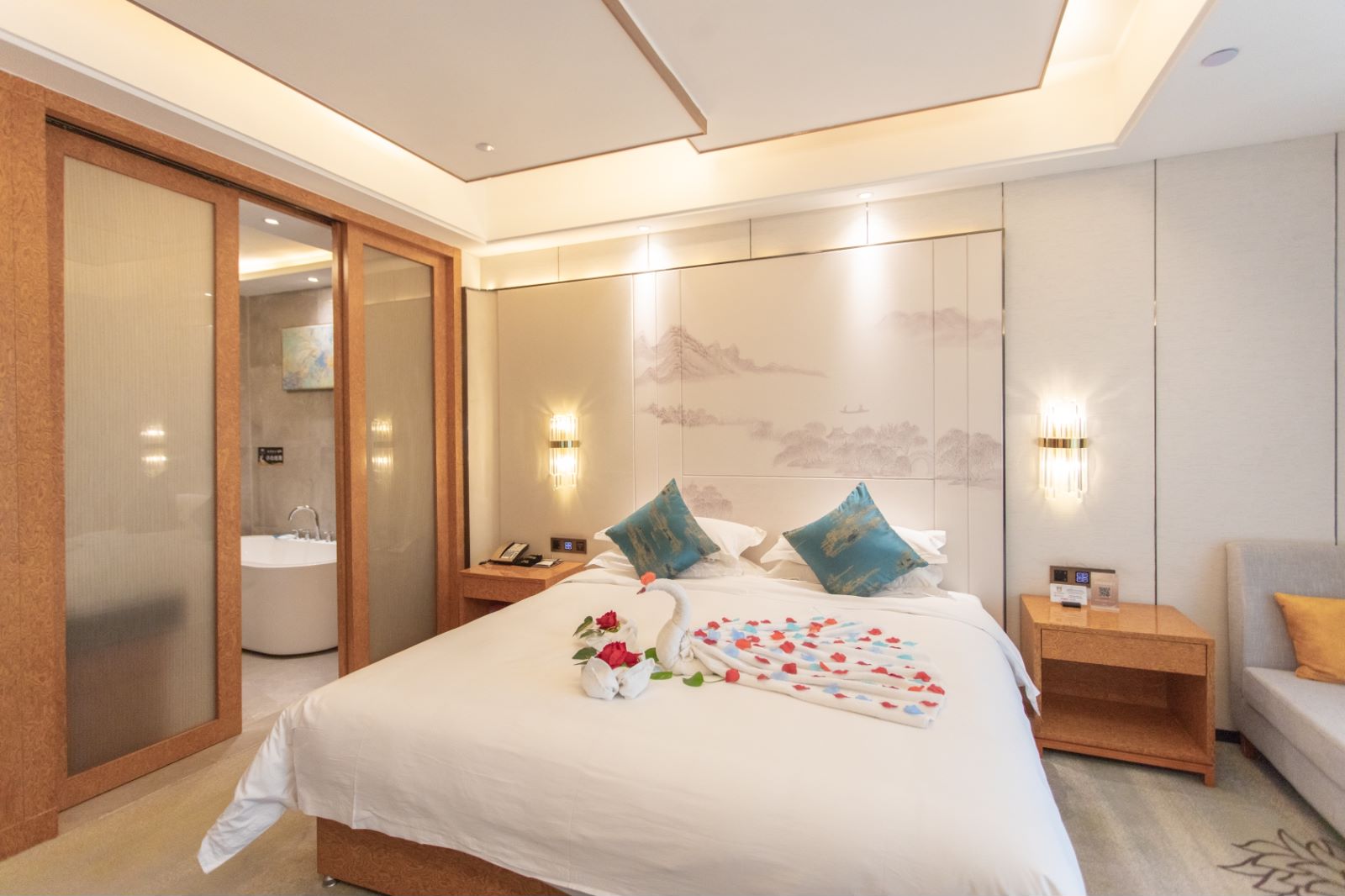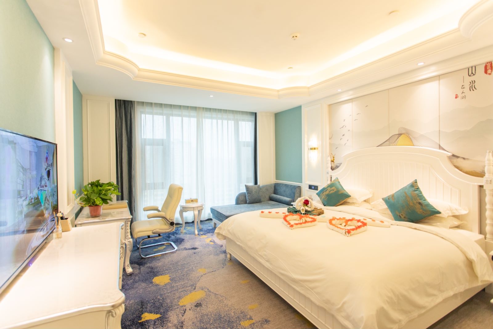 欧式大床房(杨琪床垫+加湿器+落地大窗户+小冰箱)