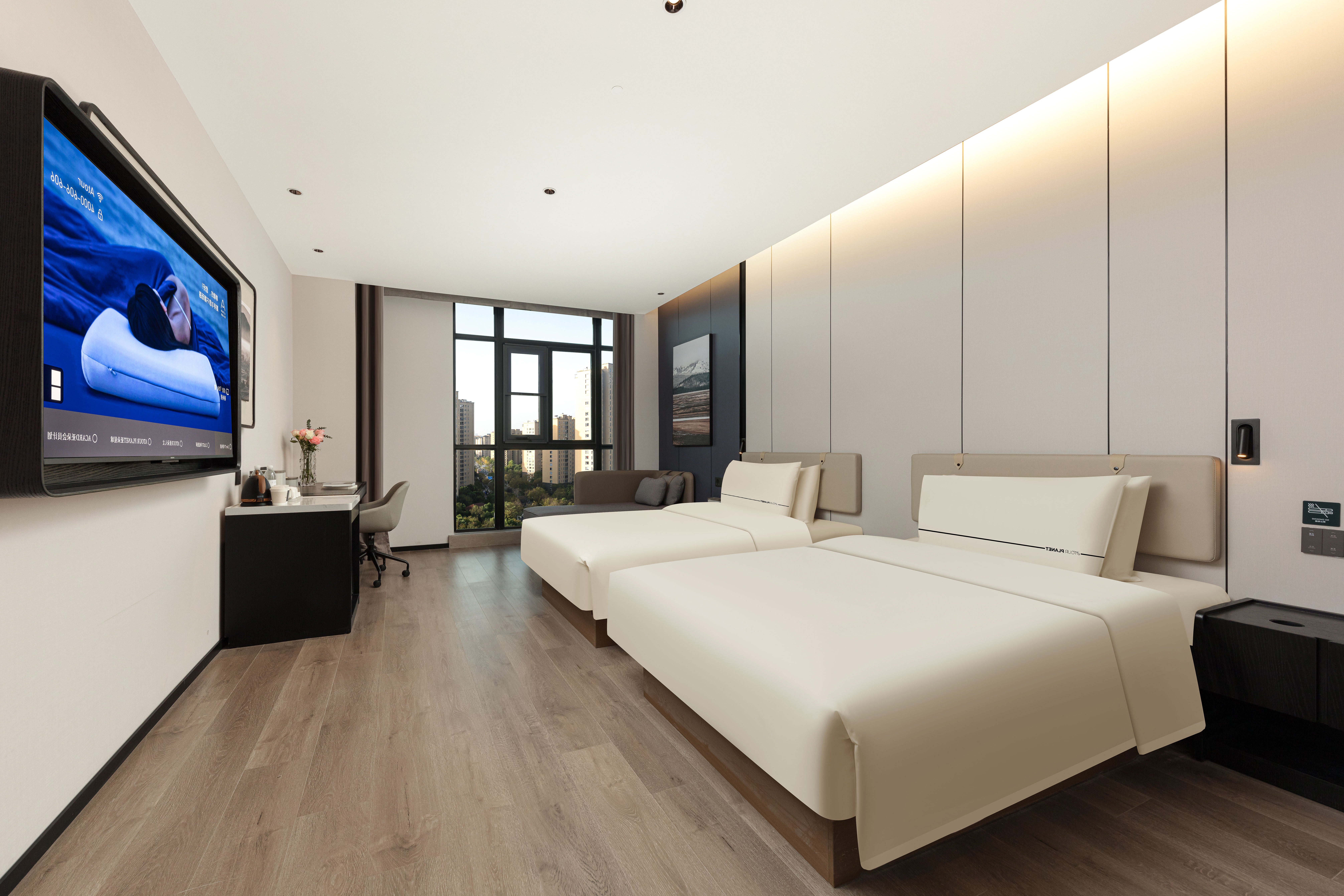 高级双床房(全景落地窗+小冰箱+智能客控)