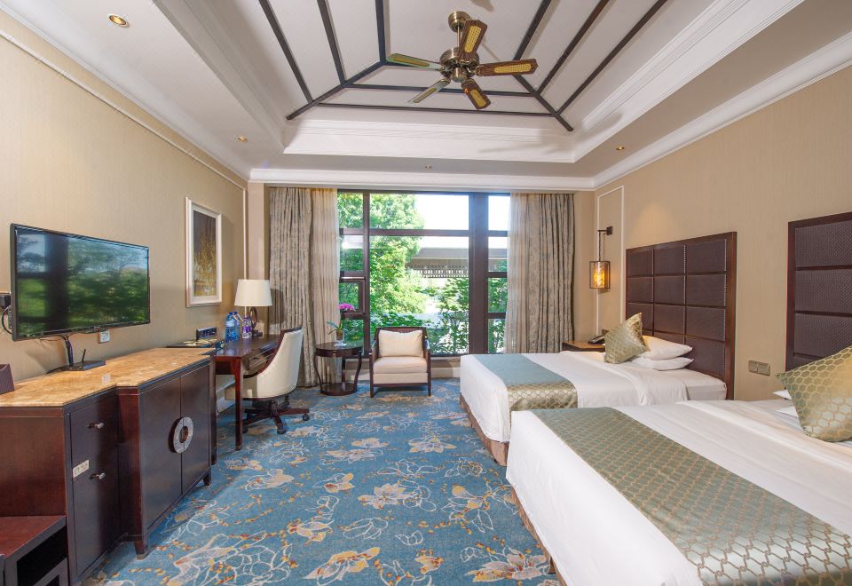 高级园景双床房-全景落地窗
