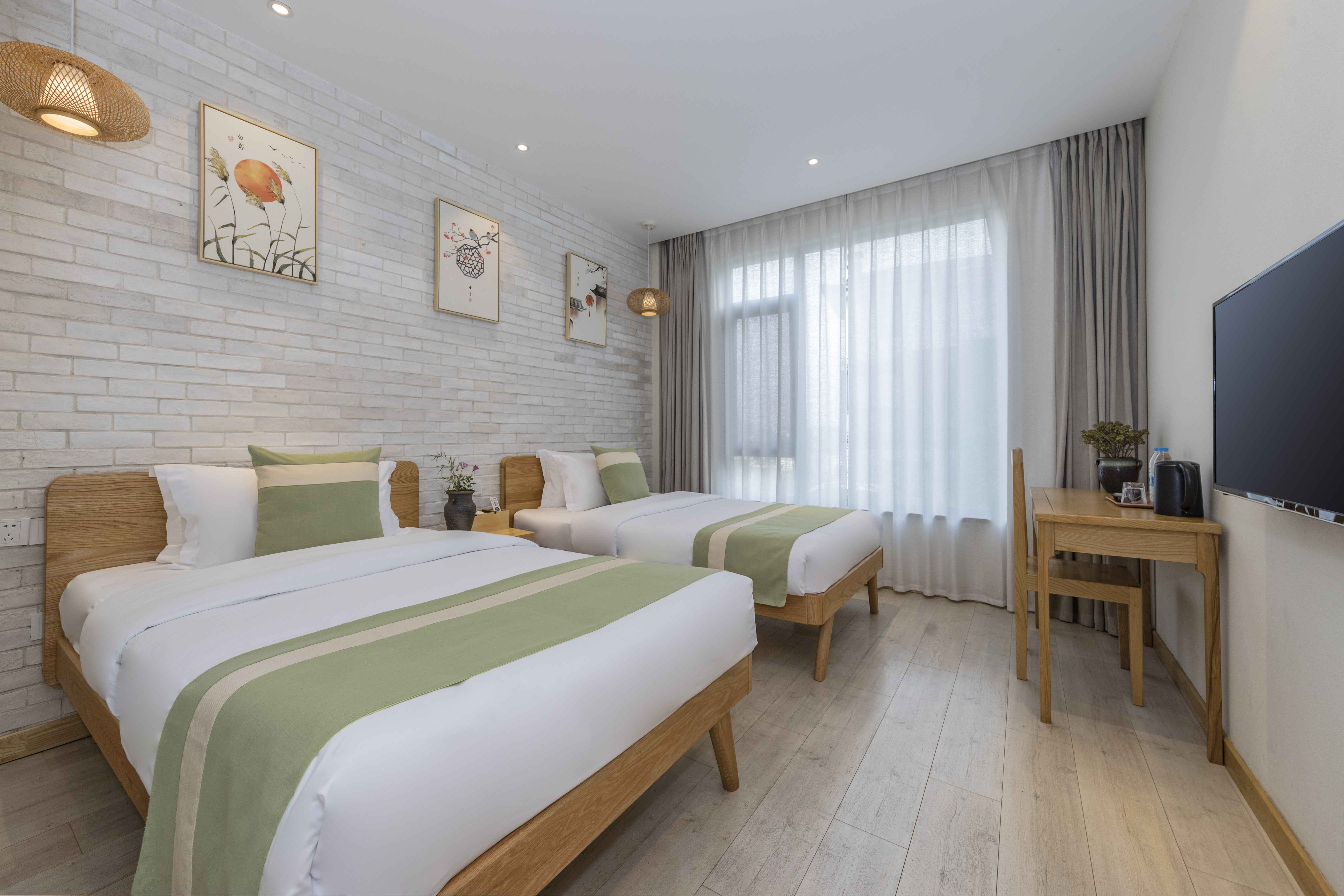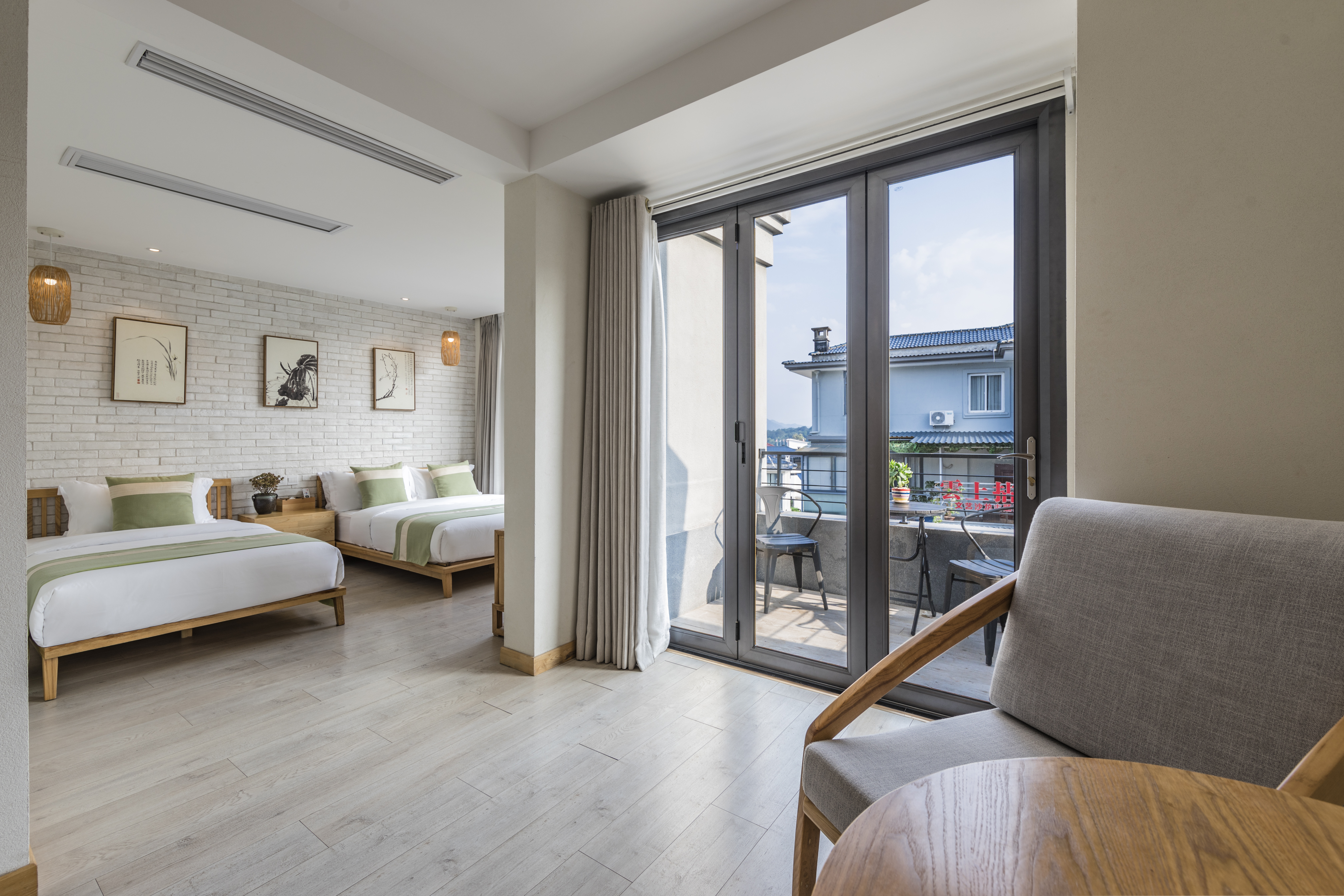 宁静·闲适双床房(庭院观景,大窗)