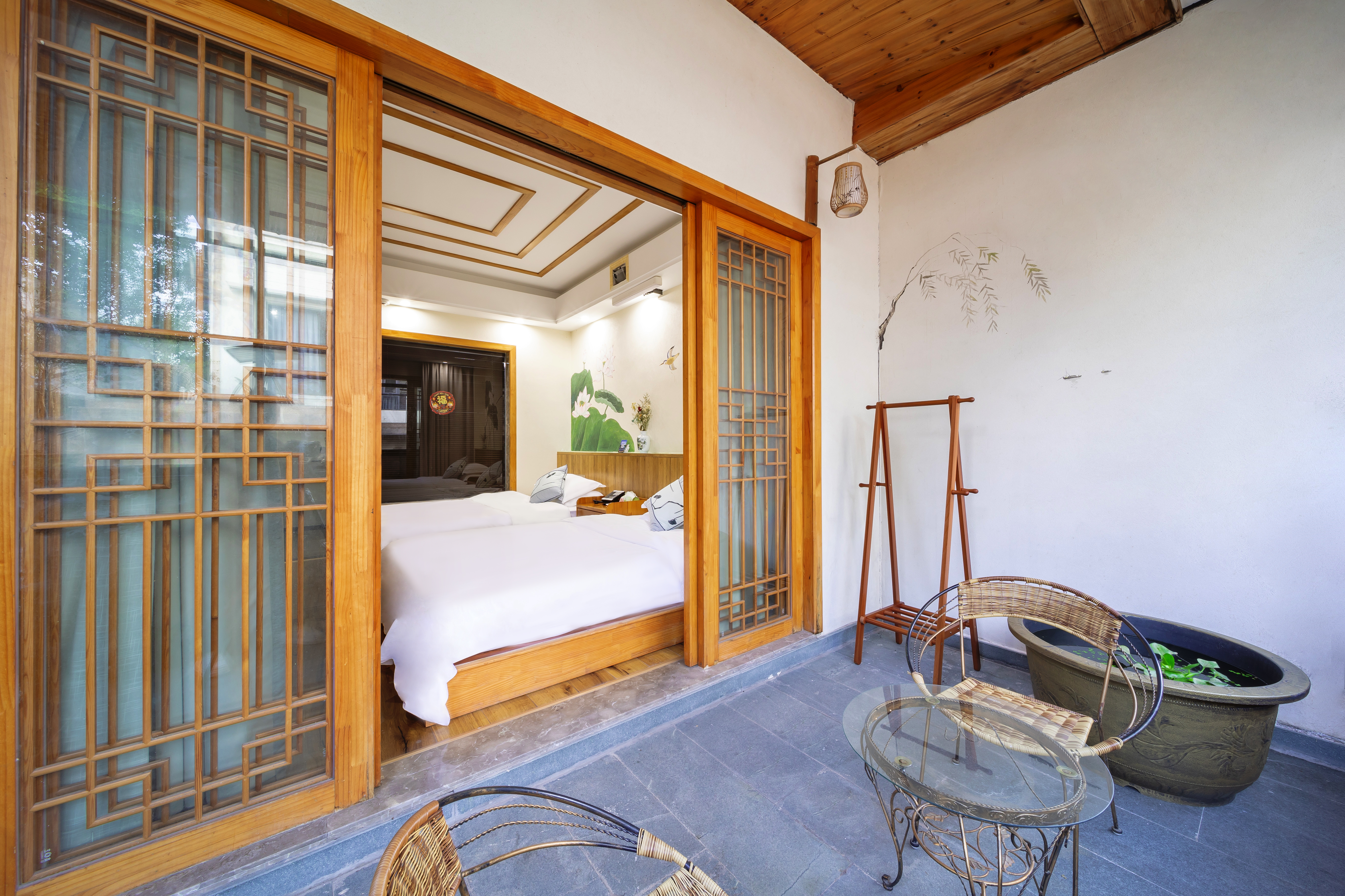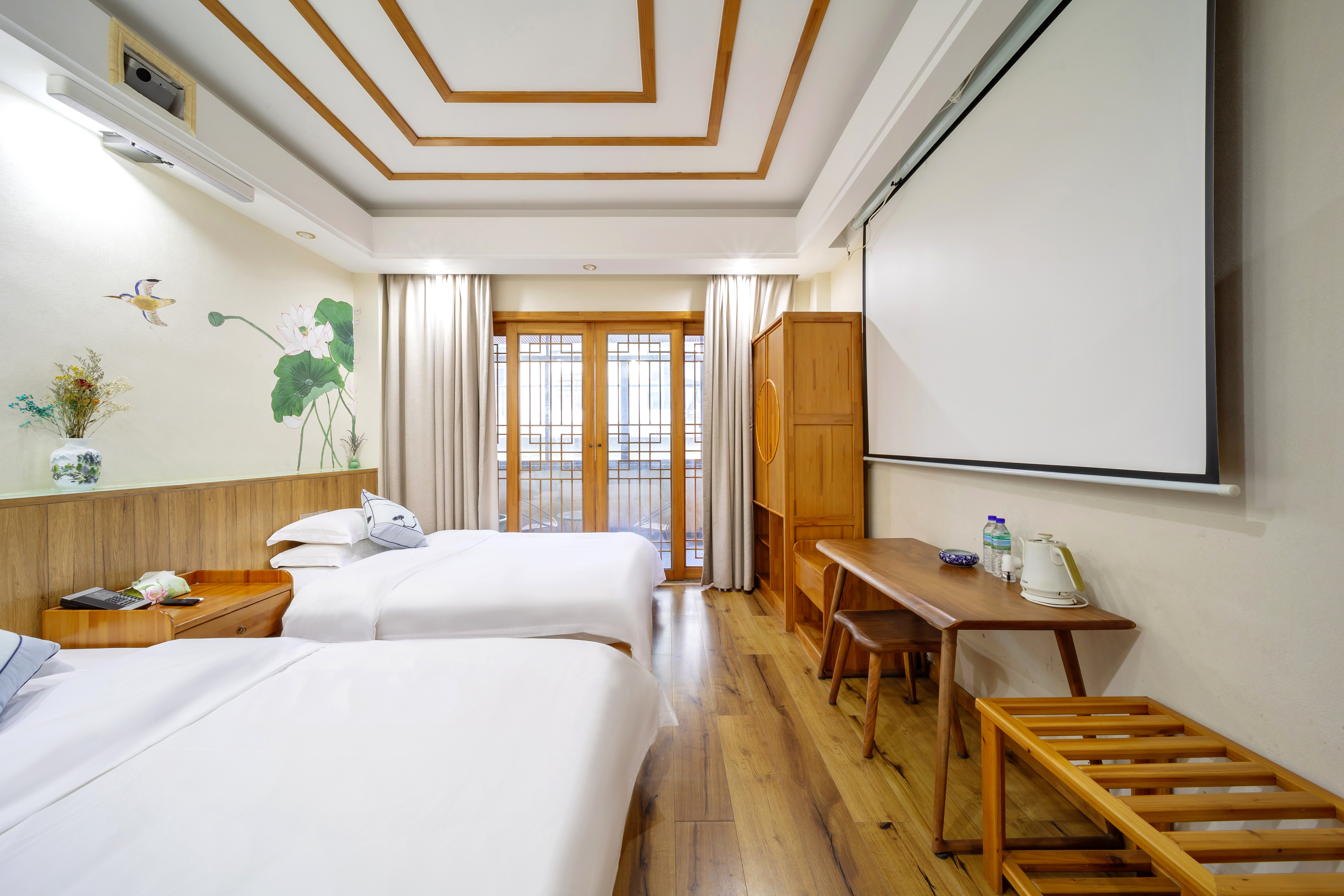 惠享|云腾·享庭院双床房『庭院茶桌+办公学习两用桌』